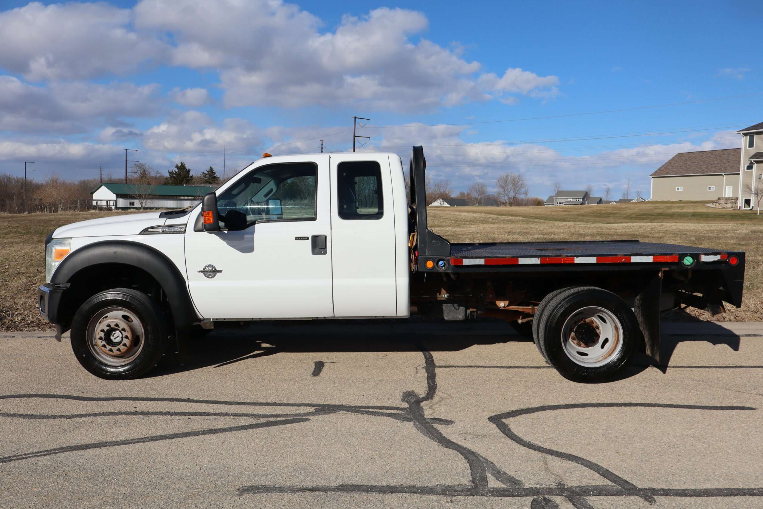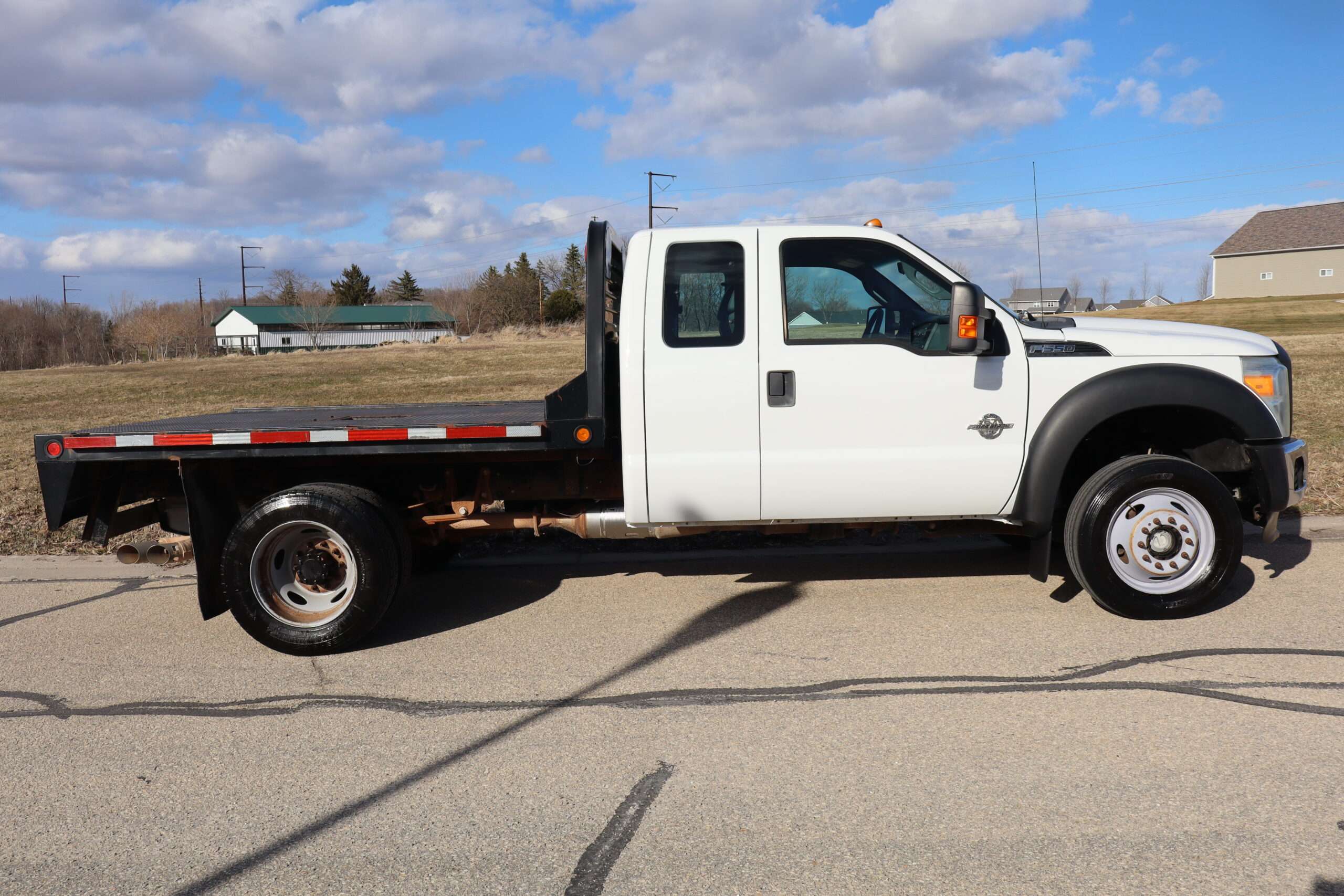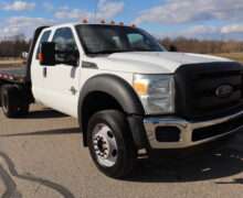 1FD0X5HTXCEB420122012 FORD F550 SUPER DUTY, CREW CAB, DRW, XL, 18,000# GVW, 6.7L TURBO DIESEL, 6-SPEED AUTOMATIC TRANSMISSION, 4WD, 162″ WHEEL BASE, TRANS POWER TAKE OFF PREP, EXTRA HEAVY DUTY FRONT SUSPENSION, CM 9′-4″ FLAT BED, FIRESTONE TIRES, CLEAN METICULOUSLY MAINTAINED RUST FREE SOUTHERN 2 OWNER TRUCK WITH 76,410 MILES AND A GOOD CAR FAX.