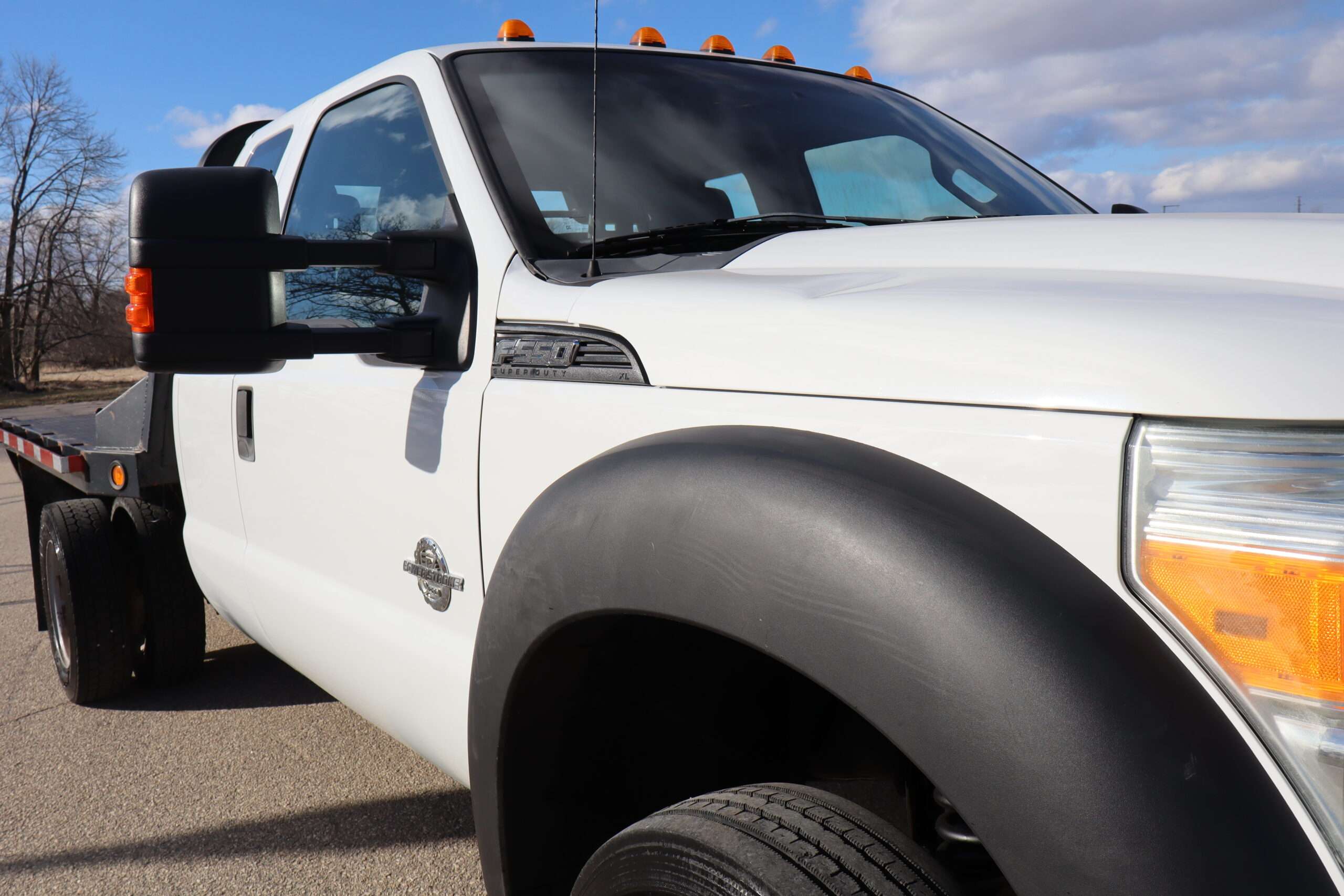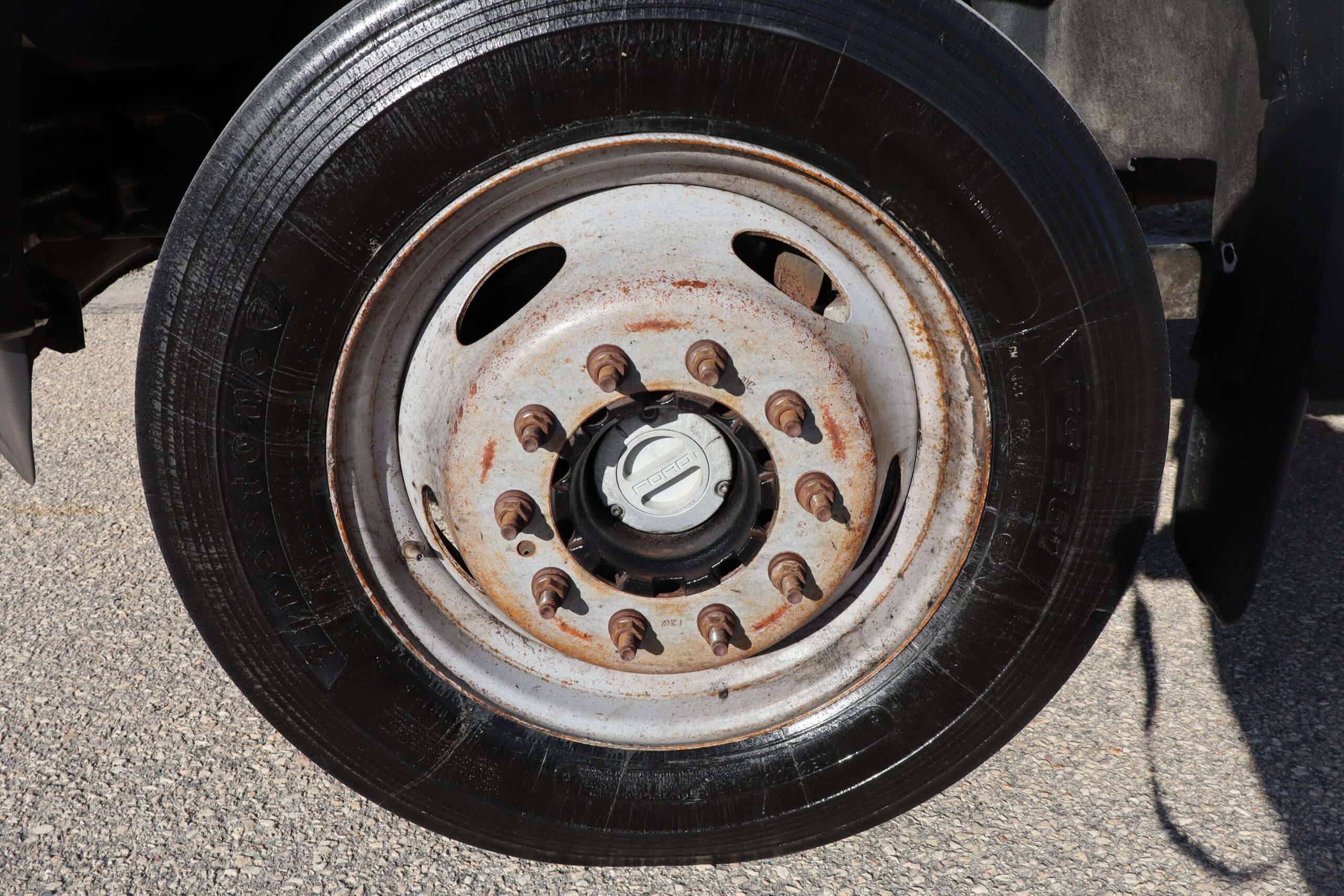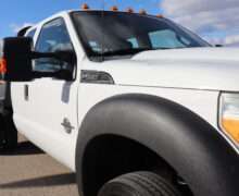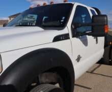 Motor is a 6.7L Power Stroke Turbo Diesel, 6-speed automatic transmission with optional tap shift, turn dial 4WD, 4.30 axle ratio, 19.5″ Factory Steel wheels with 225/70R19.5 Firestone Load Range G tires.