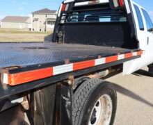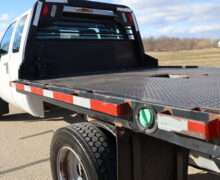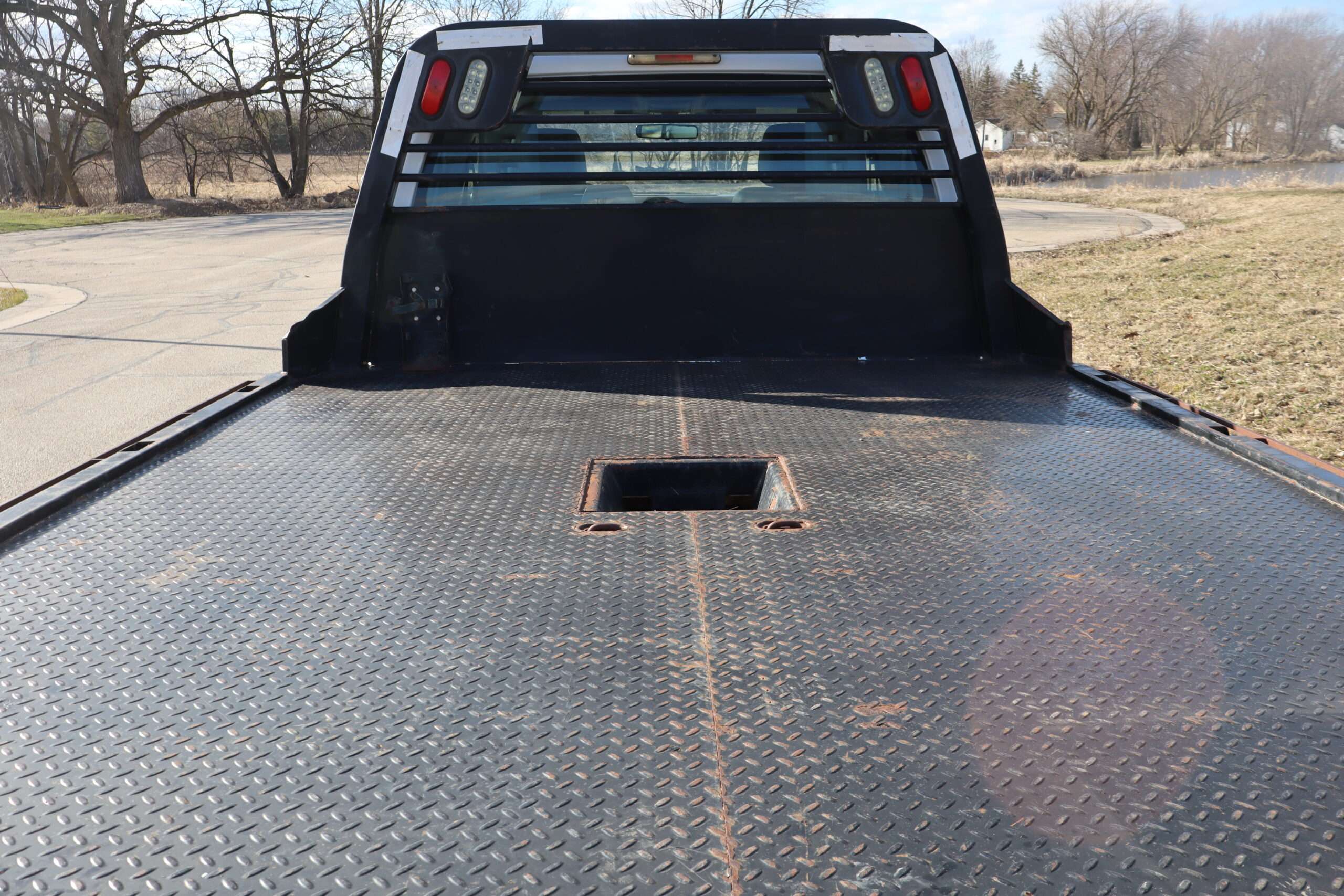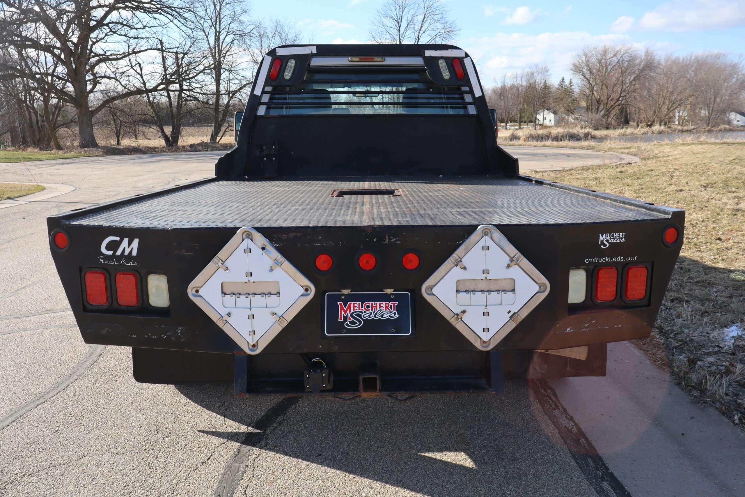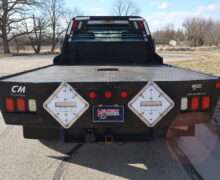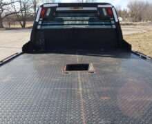 EXTRAS: 9′-4″x8′ CM Black Diamond Plate Steel flat bed and goose neck ball.