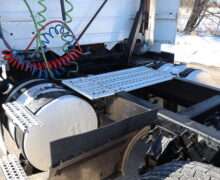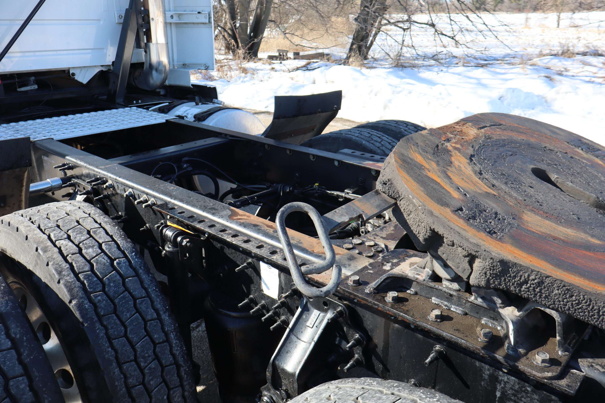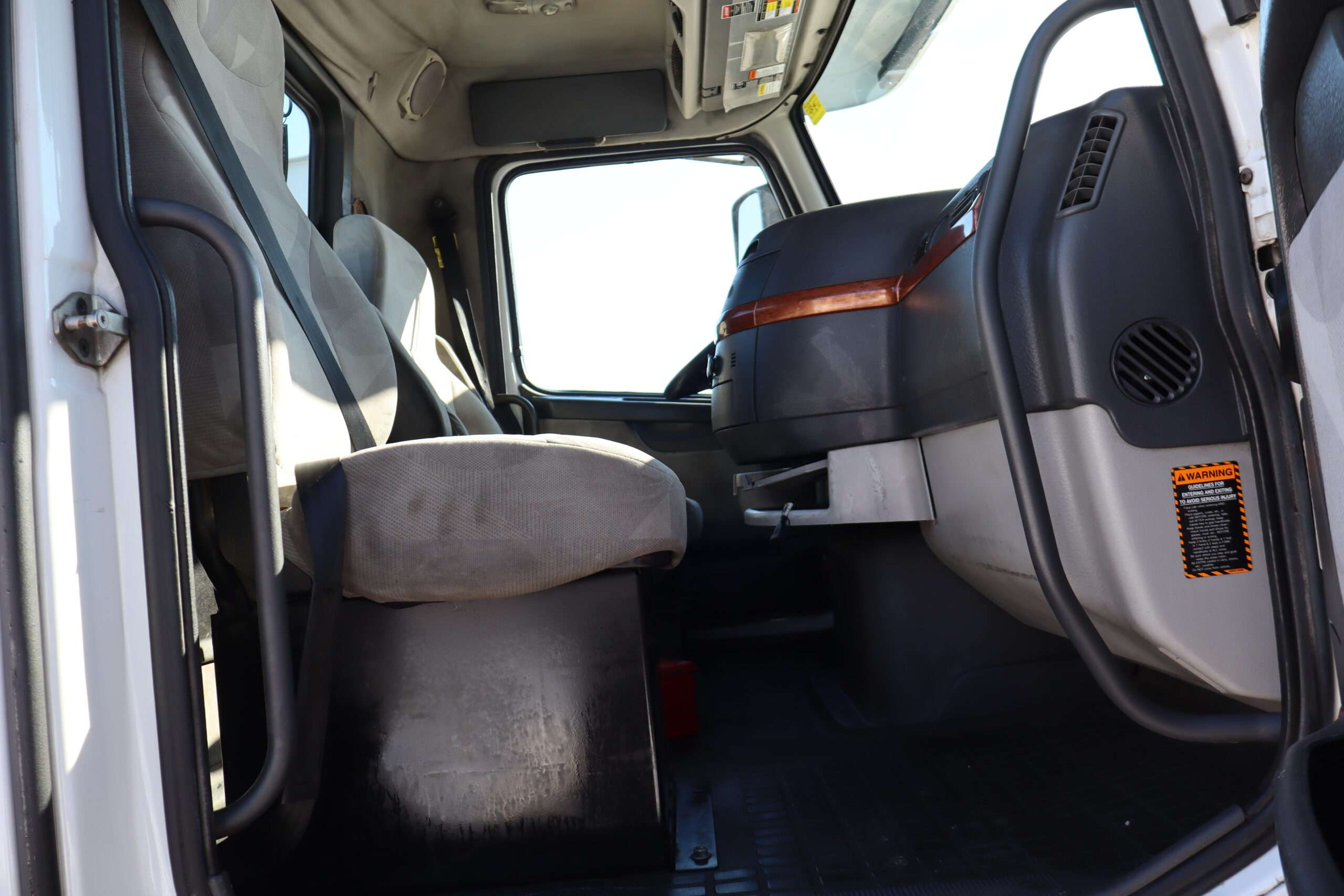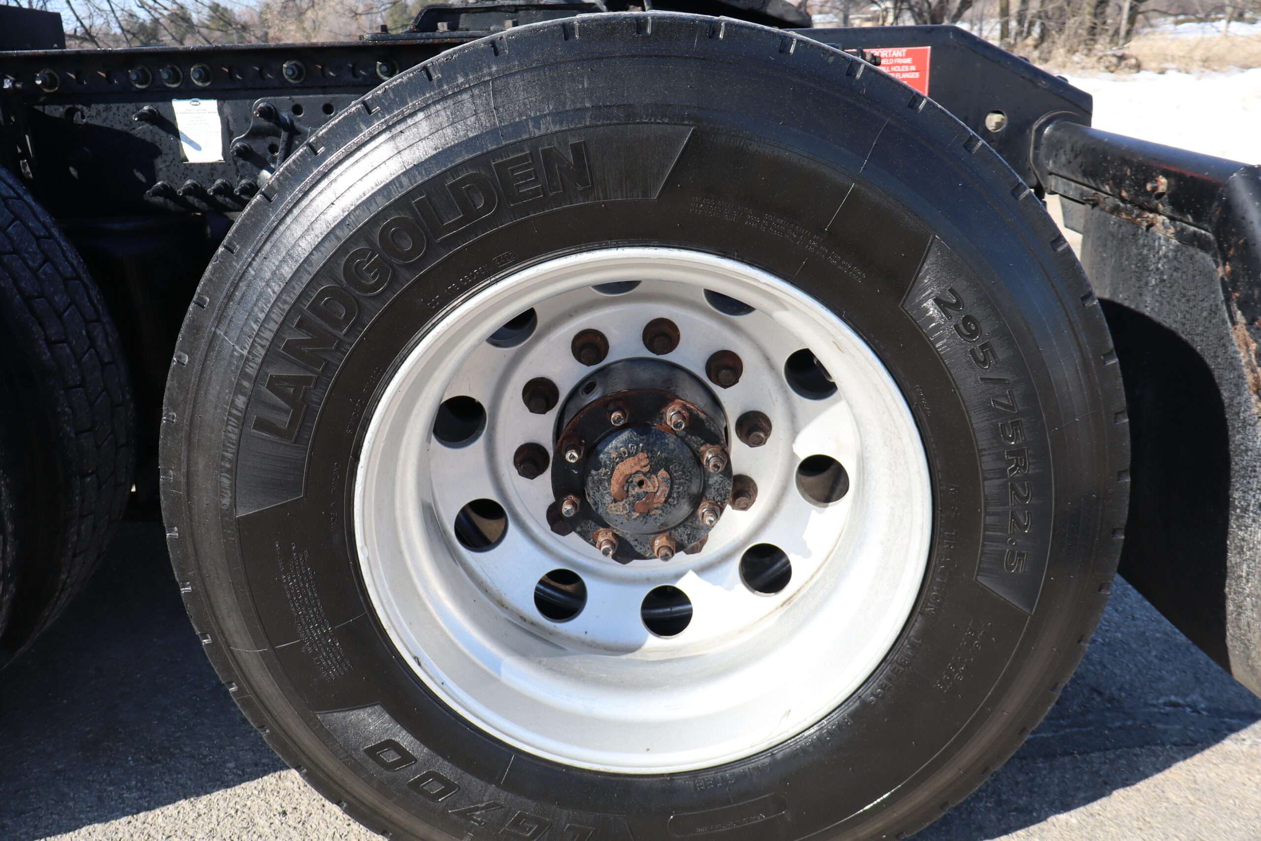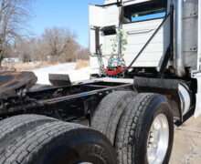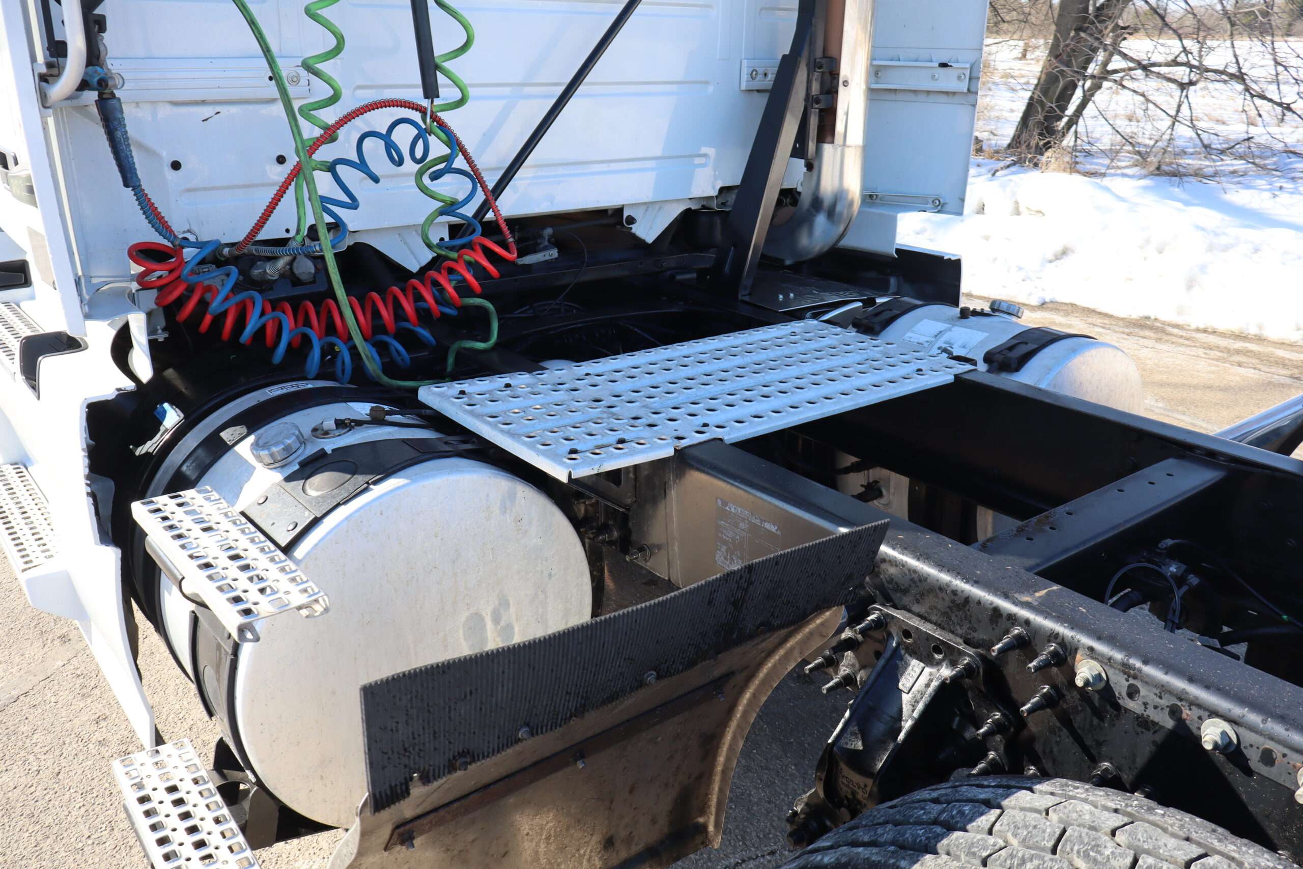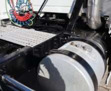 Exterior is Glacier White, power windows and power door locks, tilt and telescoping wheel, air conditioning, heated power mirrors, cruise control, info center, keyless entry, hill assist, traction control, dual aluminum tanks, 100 gallon total capacity, air ride driver’s seat with lumbar and visor with cab lights.