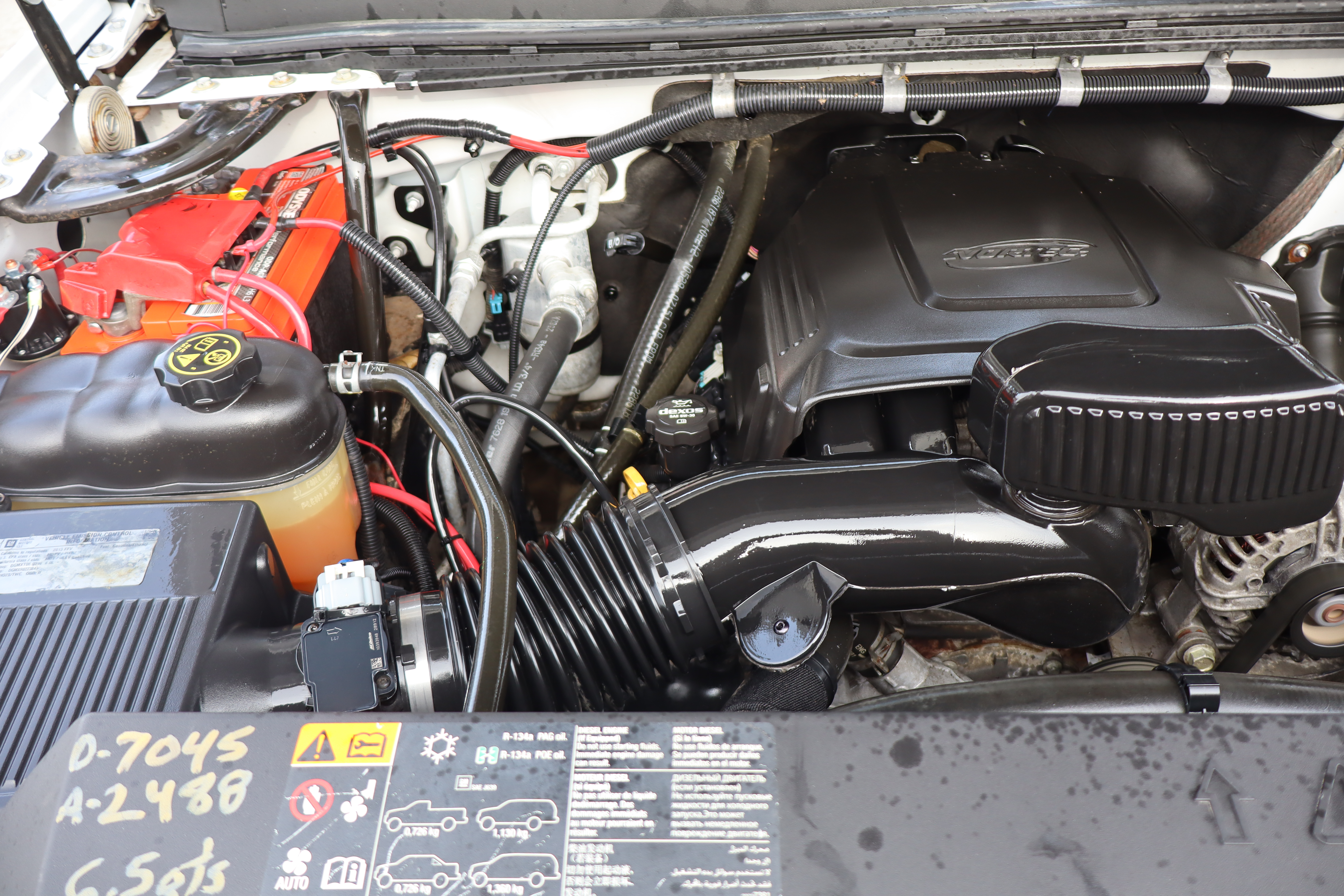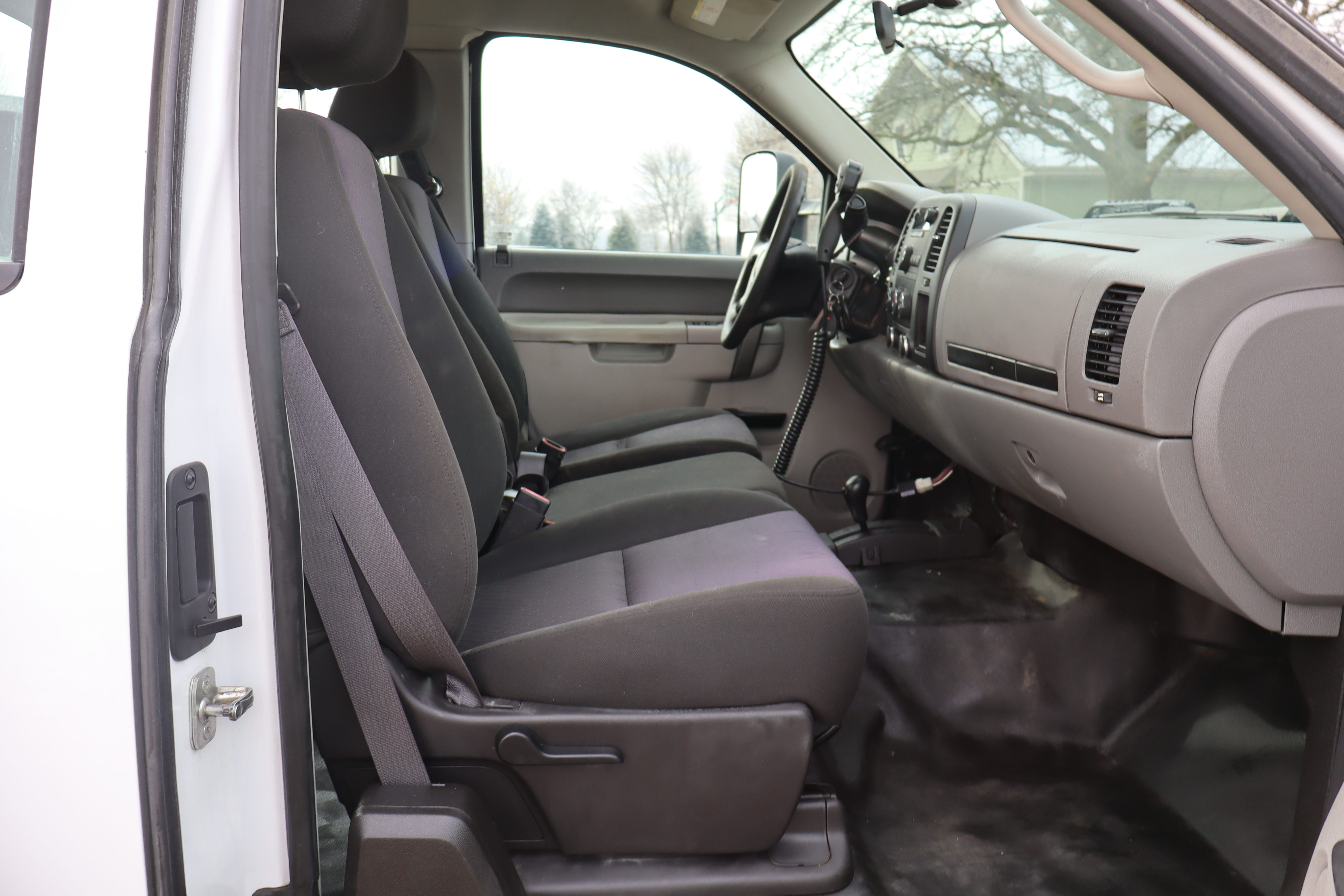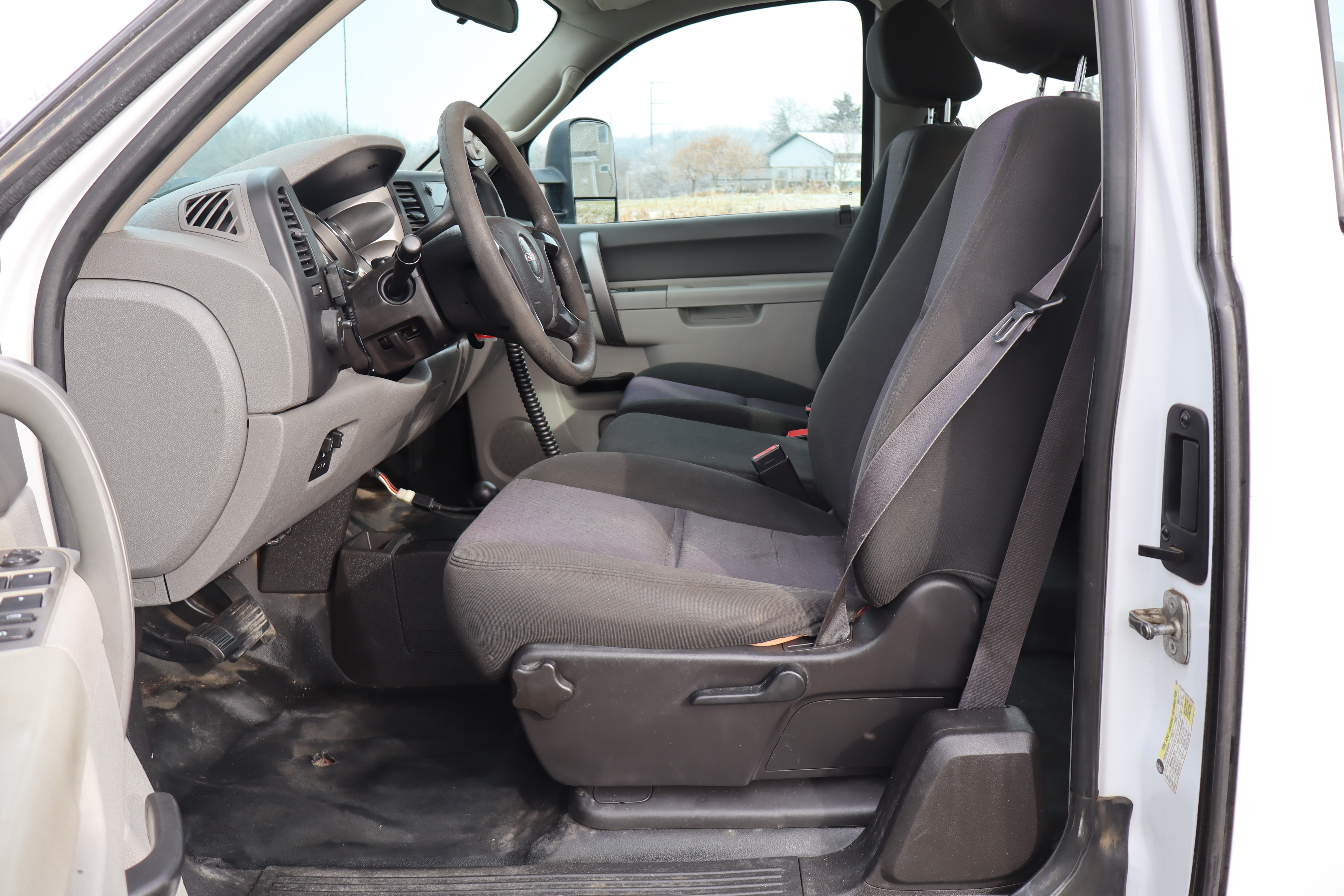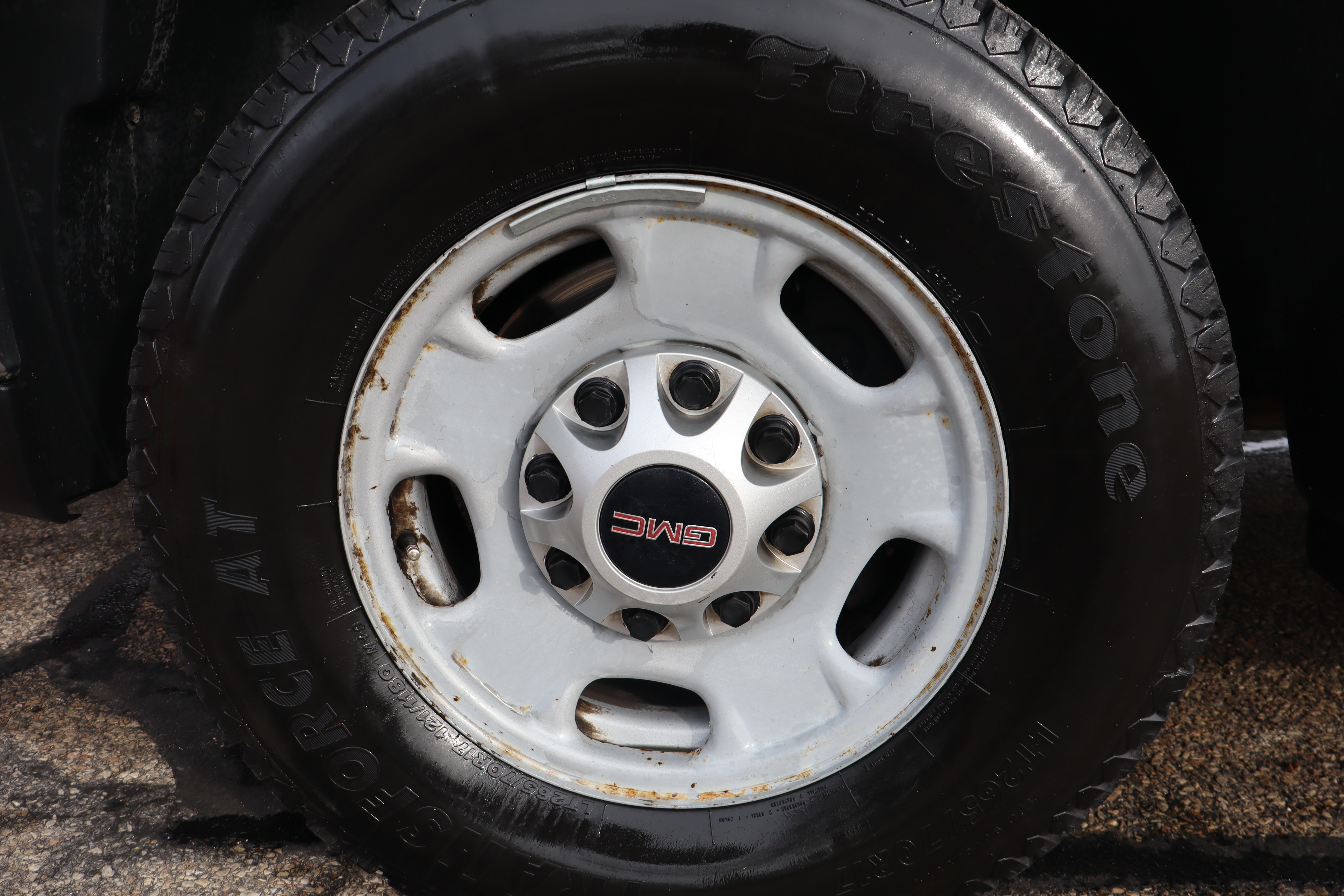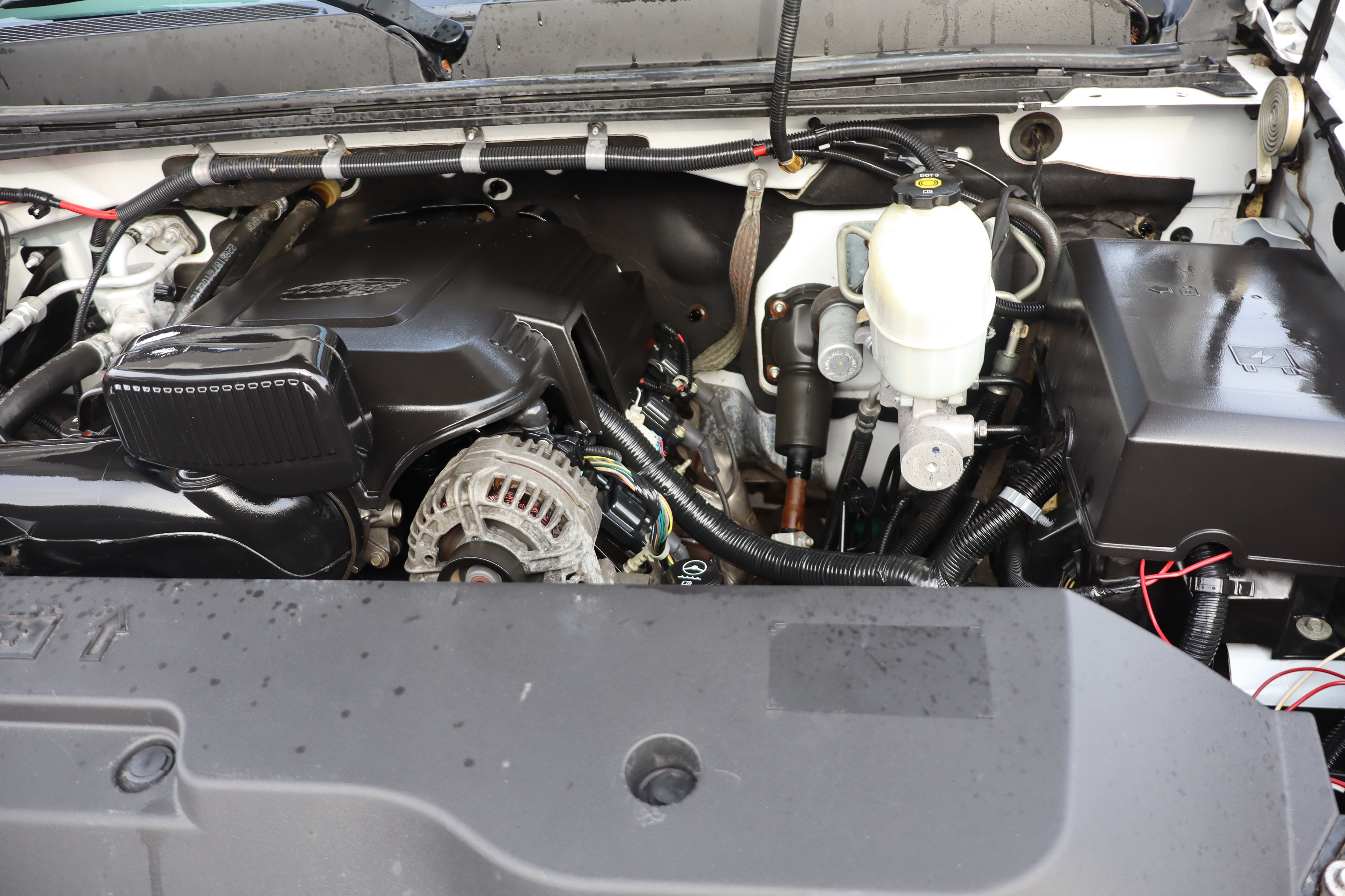 Motor is a 6.0L gas Vortec V8, with a 4-speed transmission with optional tap shift, shift on the fly, 4WD, 4.10 axle ratio with auto locking rear diff., 17″ Factory Gray Steel wheels with LT265/70R17 Firestone Transforce AT Load Range E tires.