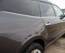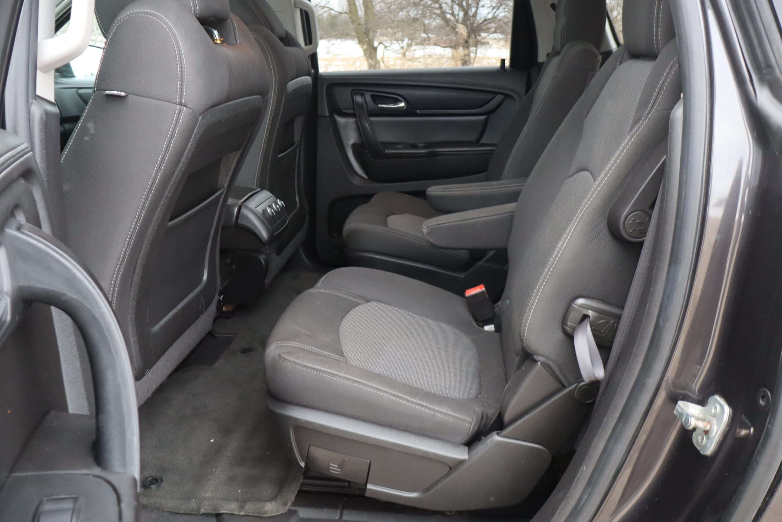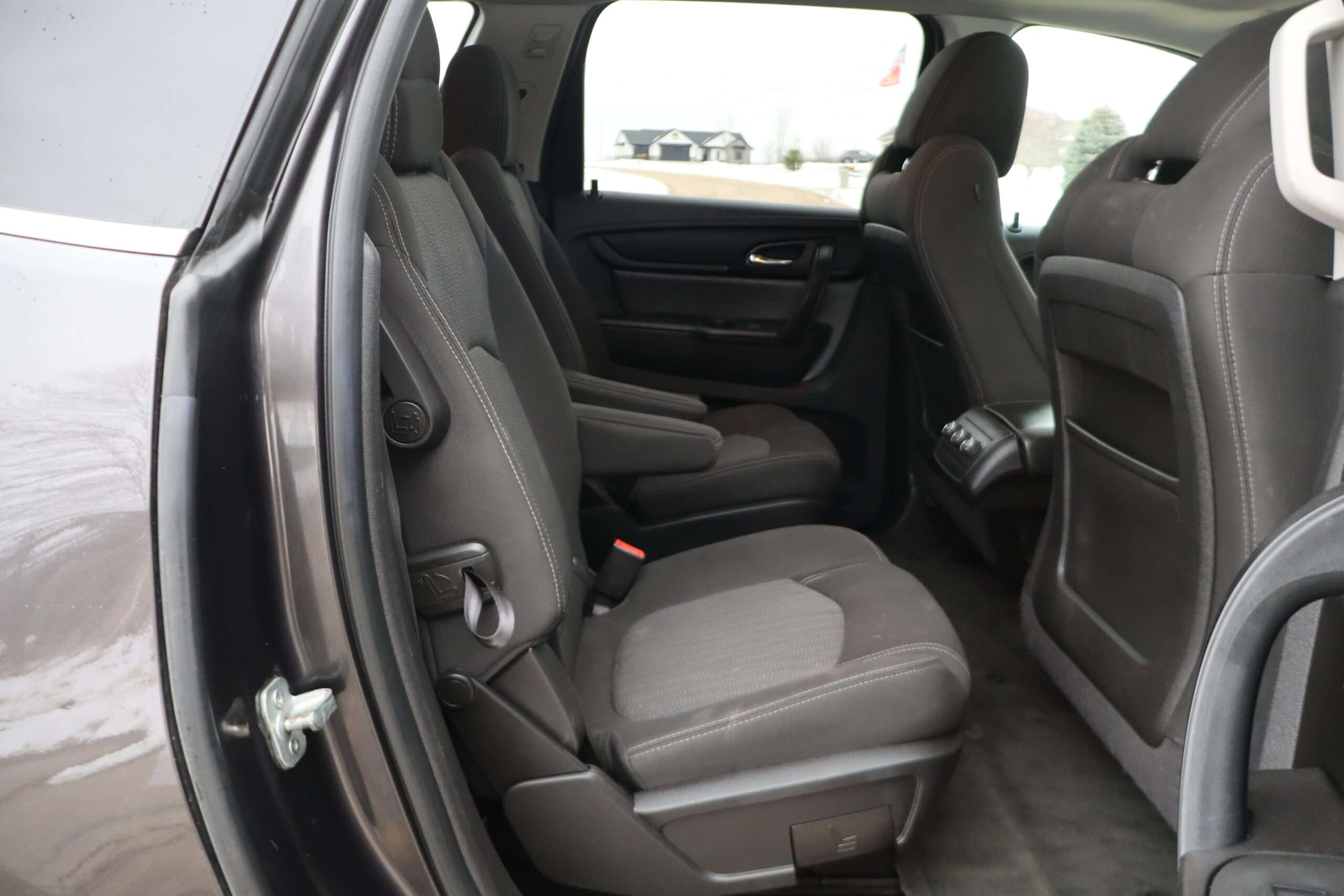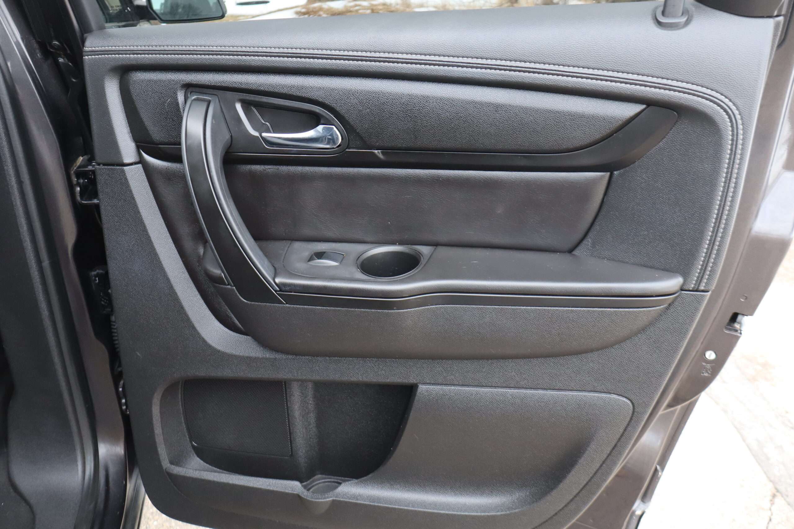 Exterior is Iridium Metallic, Interior is Black cloth, heated bucket seats in front with center console, 8-way power driver’s seat with power lumbar, traction control, 2nd row is quad seating, folding split 3rd row, power windows and power door locks, tilt and telescoping wheel, cruise control, air conditioning, electric rear window defrost, 7″ color My Link touch screen, AM/FM stereo, CD player, MP3 player, XM satellite radio ready, back up camera, parking assist, OnStar, multi-function steering wheel controls, power point, compass/temperature/mileage display, day/night rear view mirror, driver’s information center, universal garage door, power/heated outside mirrors with blinkers, fog lights, dark tinted glass, remote entry, remote start, side air bags, tow package with receiver.