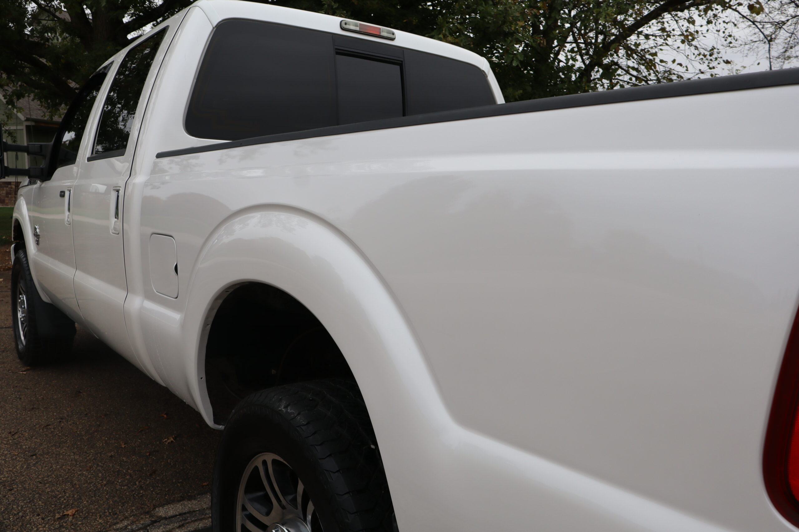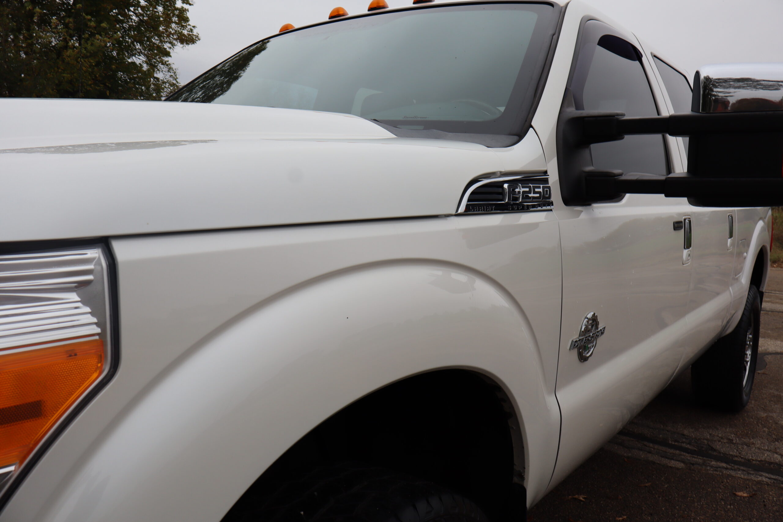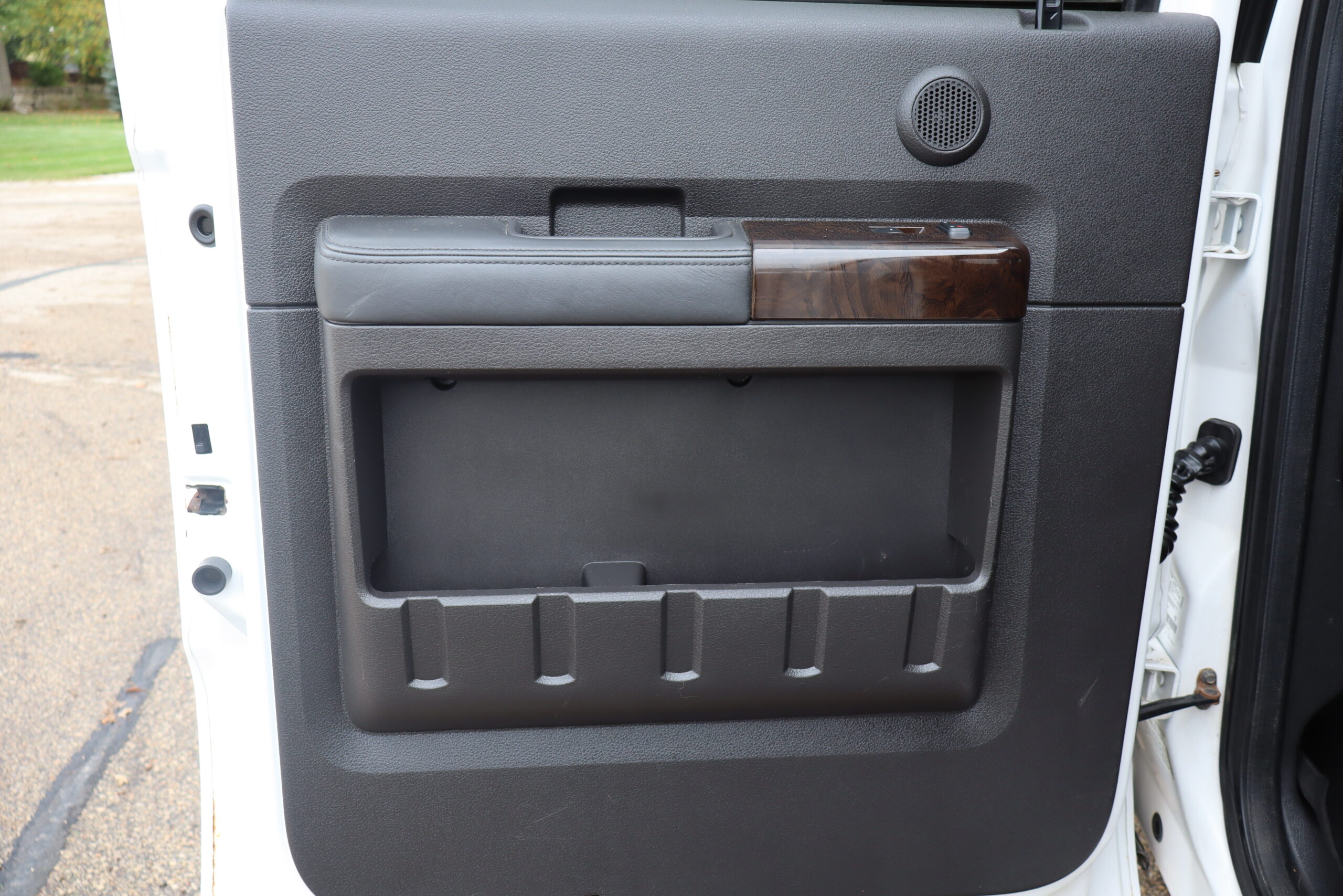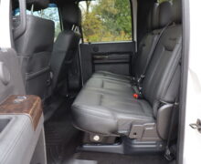 Exterior is White Platinum, Interior is Black Leather, dual heated and cooled 10-way power bucket seats in front with center console, 60/40 heated rear folding bench with under seat locking storage, memory driver’s seat, power adjustable pedals, power windows and power door locks, tilt and telescoping wheel, power moon roof, cruise control, air conditioning, electric rear window defrost, digital dual climate control, navigation, AM/FM stereo, MP3 player, CD player, Sirius satellite radio ready capabilities, SYNC II, multi-function steering wheel controls, compass/temperature/mileage display in dash, back up camera, back up assist, remote entry, door code entry, remote start, traction control, up-fitter switches, fog lights, cab clearance lights, side air bags, power/heated folding mirrors and telescoping with turn signals, power sliding window, dark tinted glass, tailgate step, tow package with a receiver and trailer wiring.