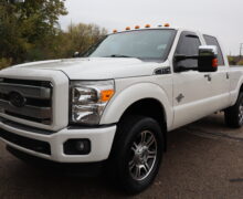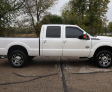 Motor is a 6.7L Power Stroke Turbo Diesel, 6-speed automatic transmission with optional tap shift, turn dial 4WD, 3.55 electric locking differential, 20″ Factory wheels with LT295/60R20 Hankook Dyna Pro AT2 Load Range E tires.