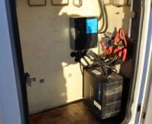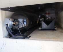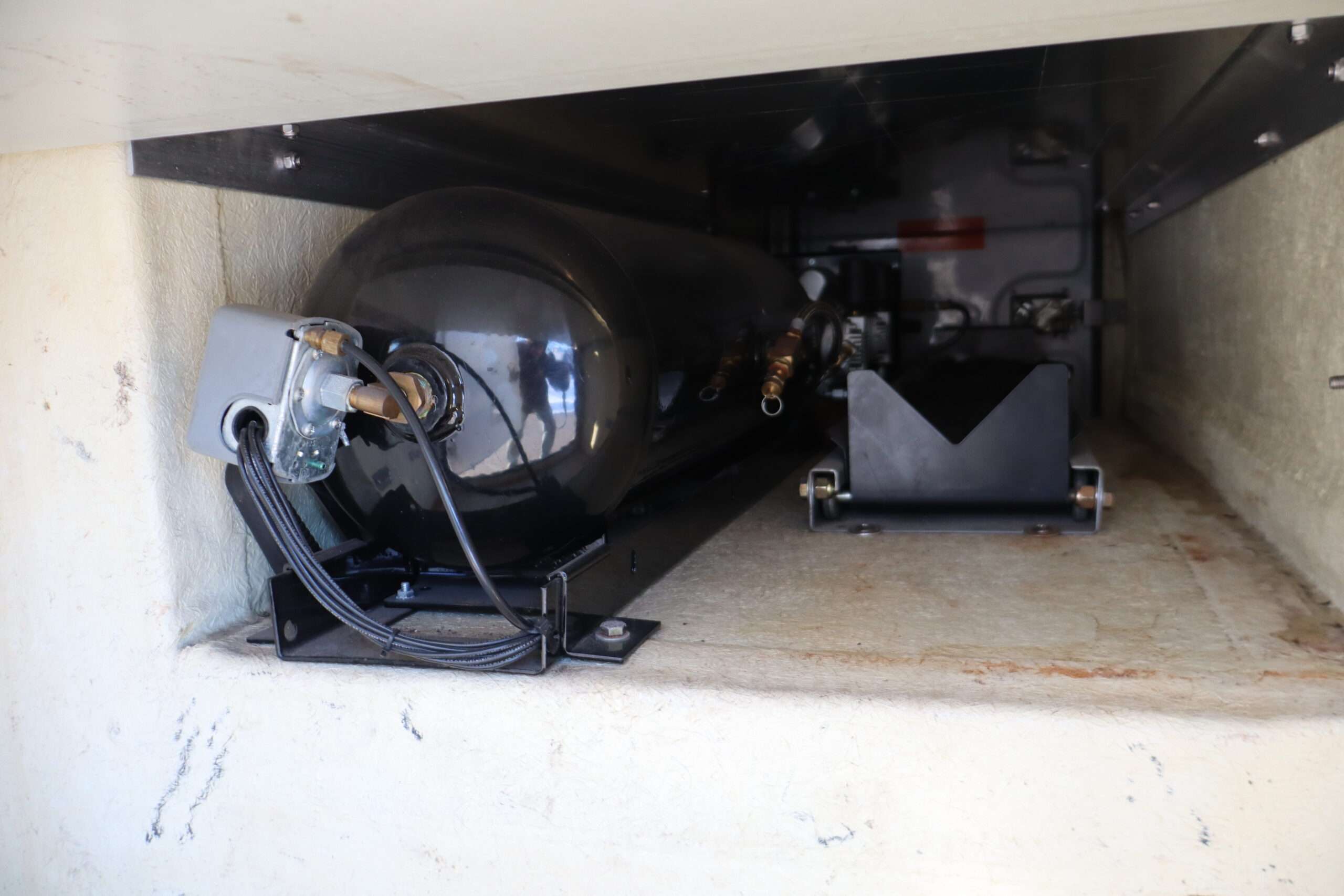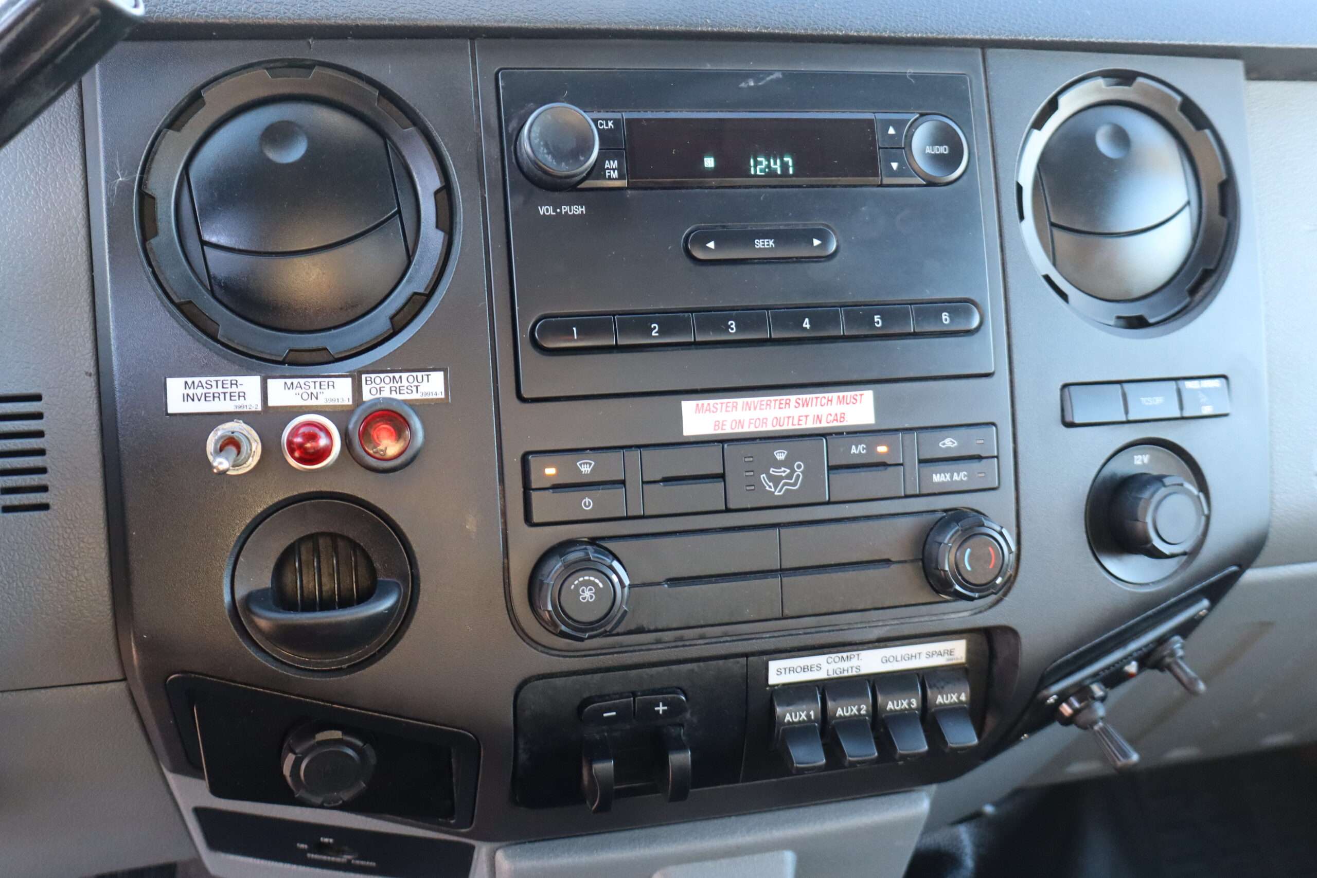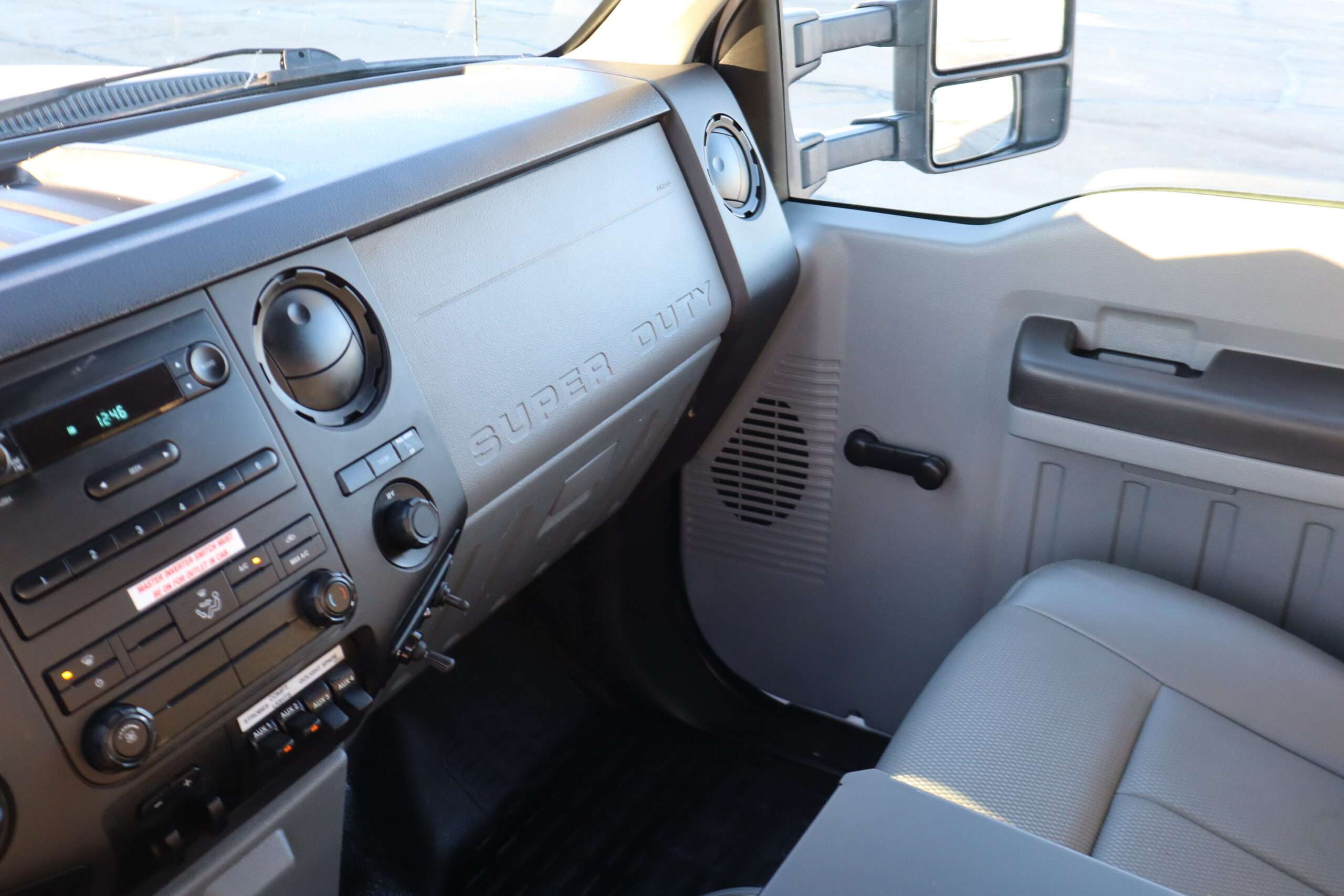 Motor is a 6.8L V10 gas engine, 5-speed automatic transmission with optional tap shift, RWD, 4.88 axle ratio, 19.5″ Factory Gray Steel wheels with 225/70R19.5 Firestone Steers and Load Range G tires.