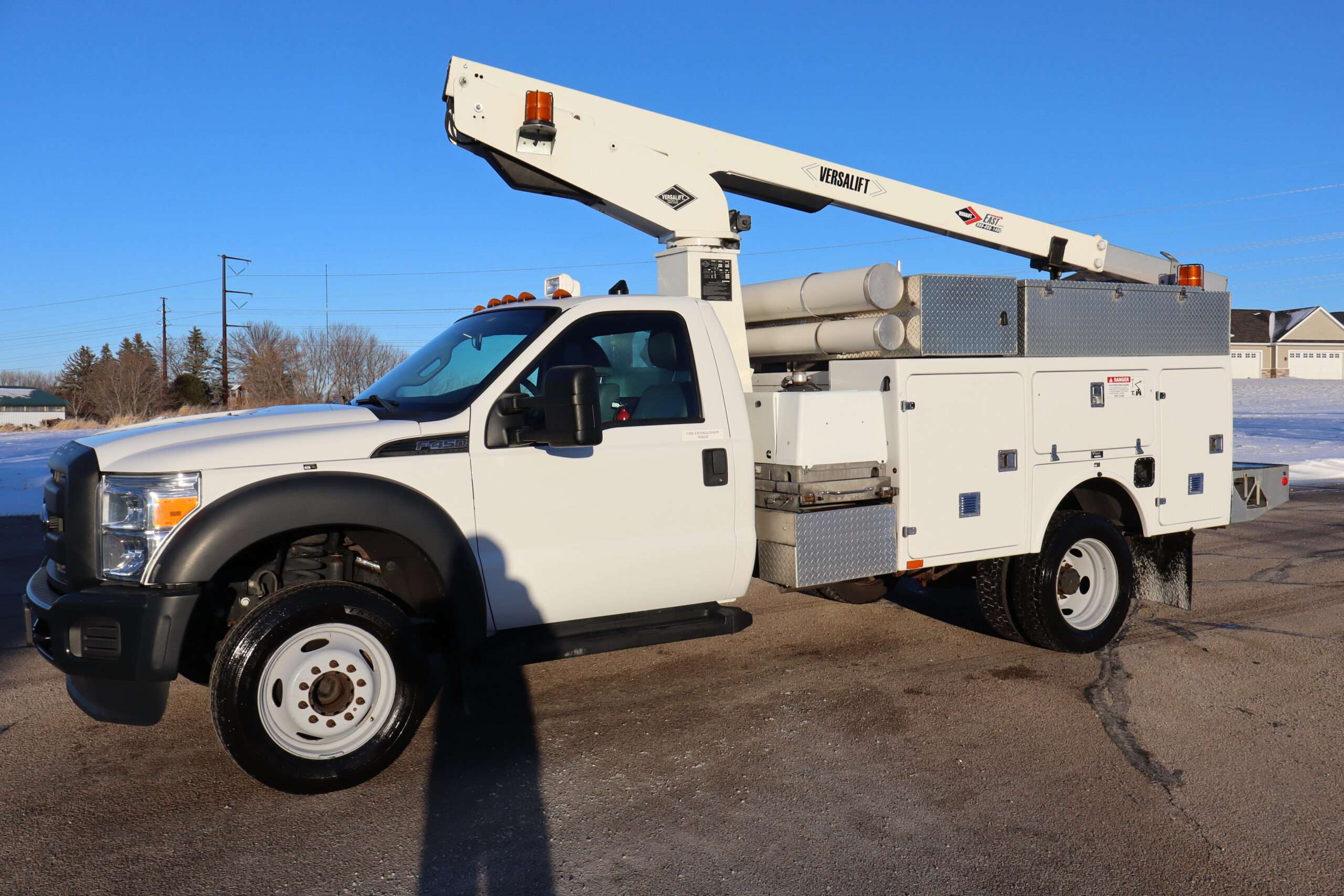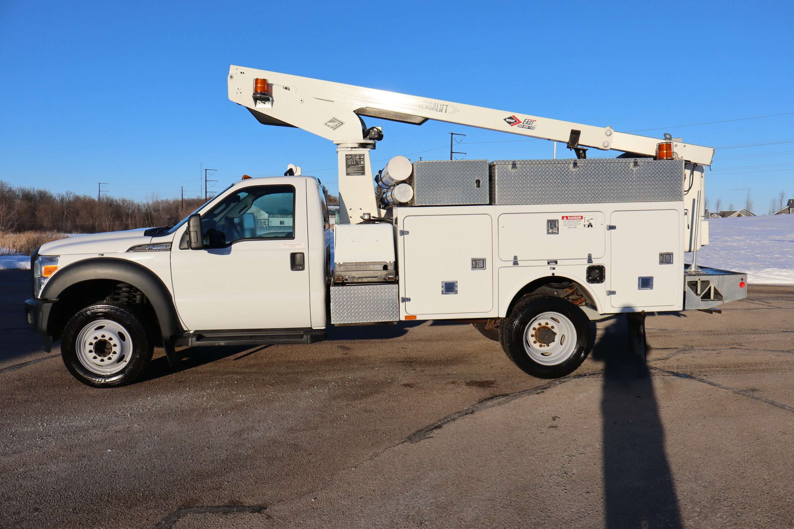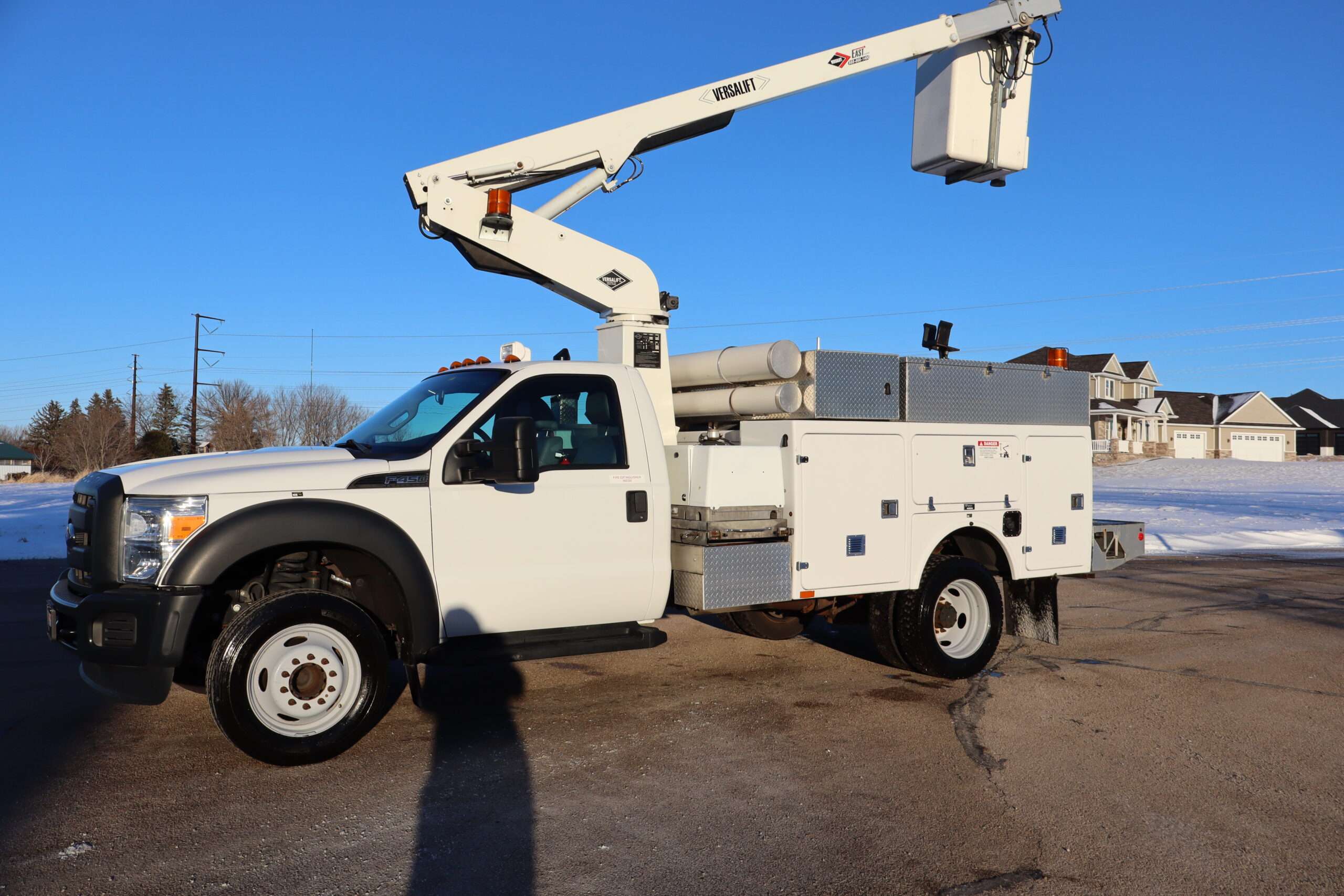 1FDUF4GY1FEA169312015 FORD F450 REG CAB, ALTEC BUCKET TRUCK, 16,500 GVW, CHASSIE, 6.8L V10 GAS, 5-SPEED AUTOMATIC TRANSMISSION, RWD, TRANS POWER TAKE OFF, VERSALIFT TEL 29N-03 BUCKET/SERVICE TRUCK, 165″ WHEEL BASE, UTILTIY BED, THIS IS A METICULOUSLY MAINTAINED 2 OWNER TRUCK WITH ONLY 53,561 MILES AND A GOOD CAR FAX.