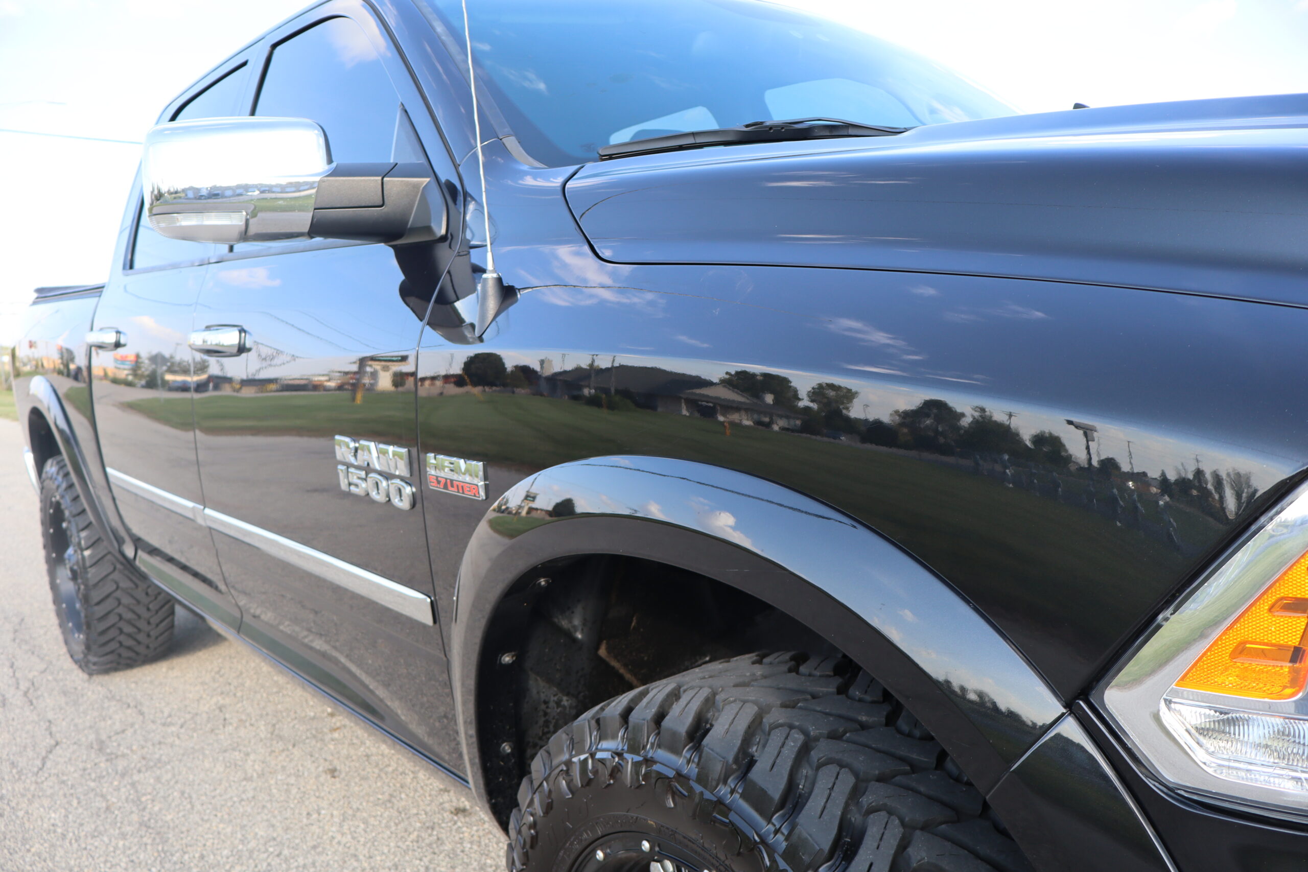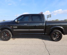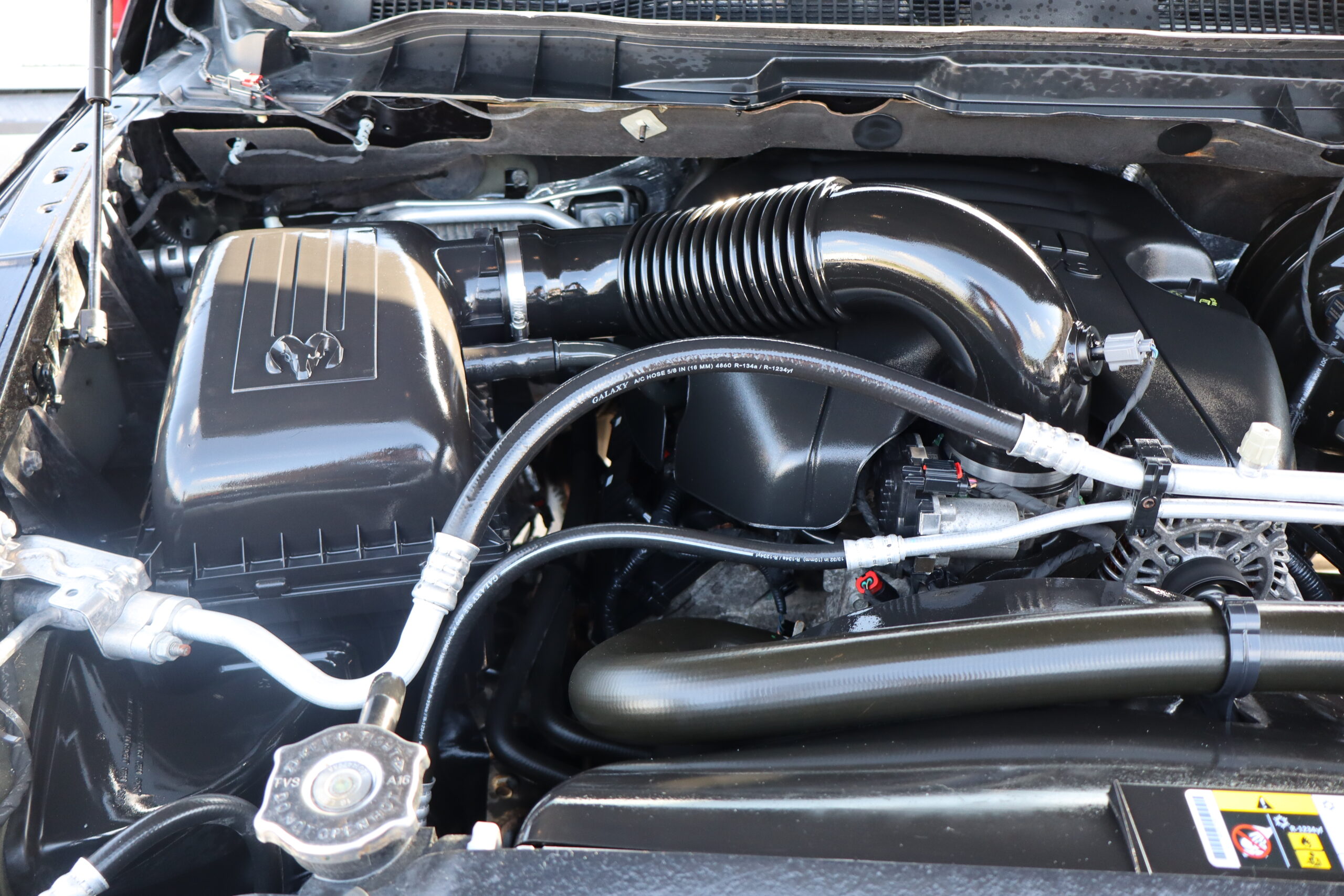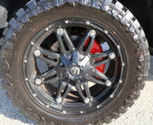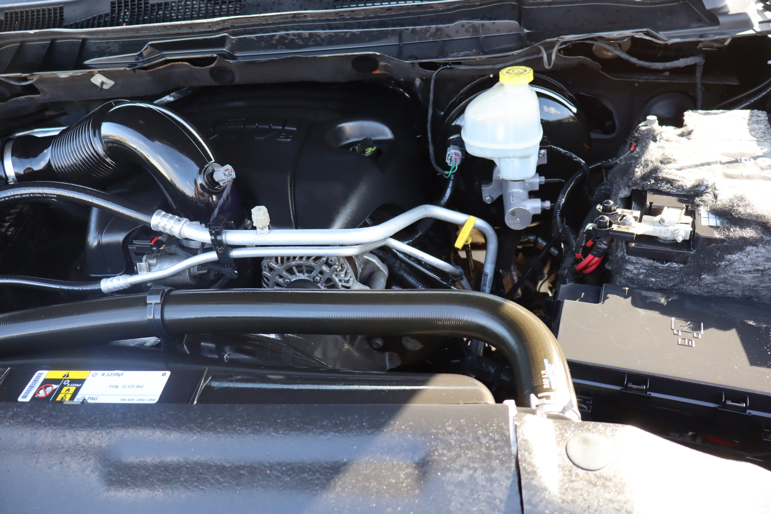 Motor is a 5.7L Hemi V8 gas, 8-speed automatic transmission with optional tap shift, turn dial 4WD, 3.92 axle ratio, 20″ Fuel Black and Machined Alloy wheels with Newer 32×12.50R20LT AT Turo Trail Blade Load Range E tires.