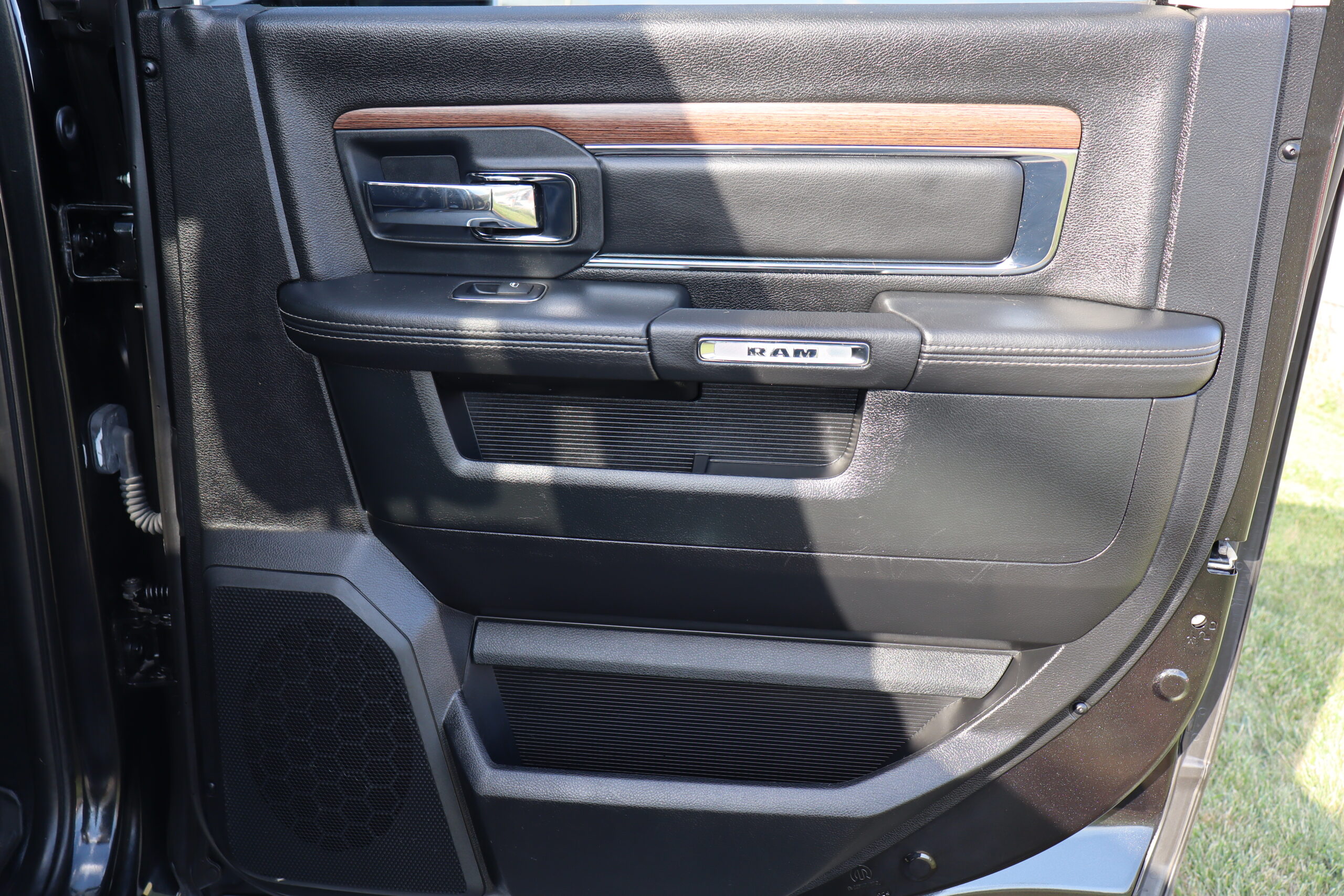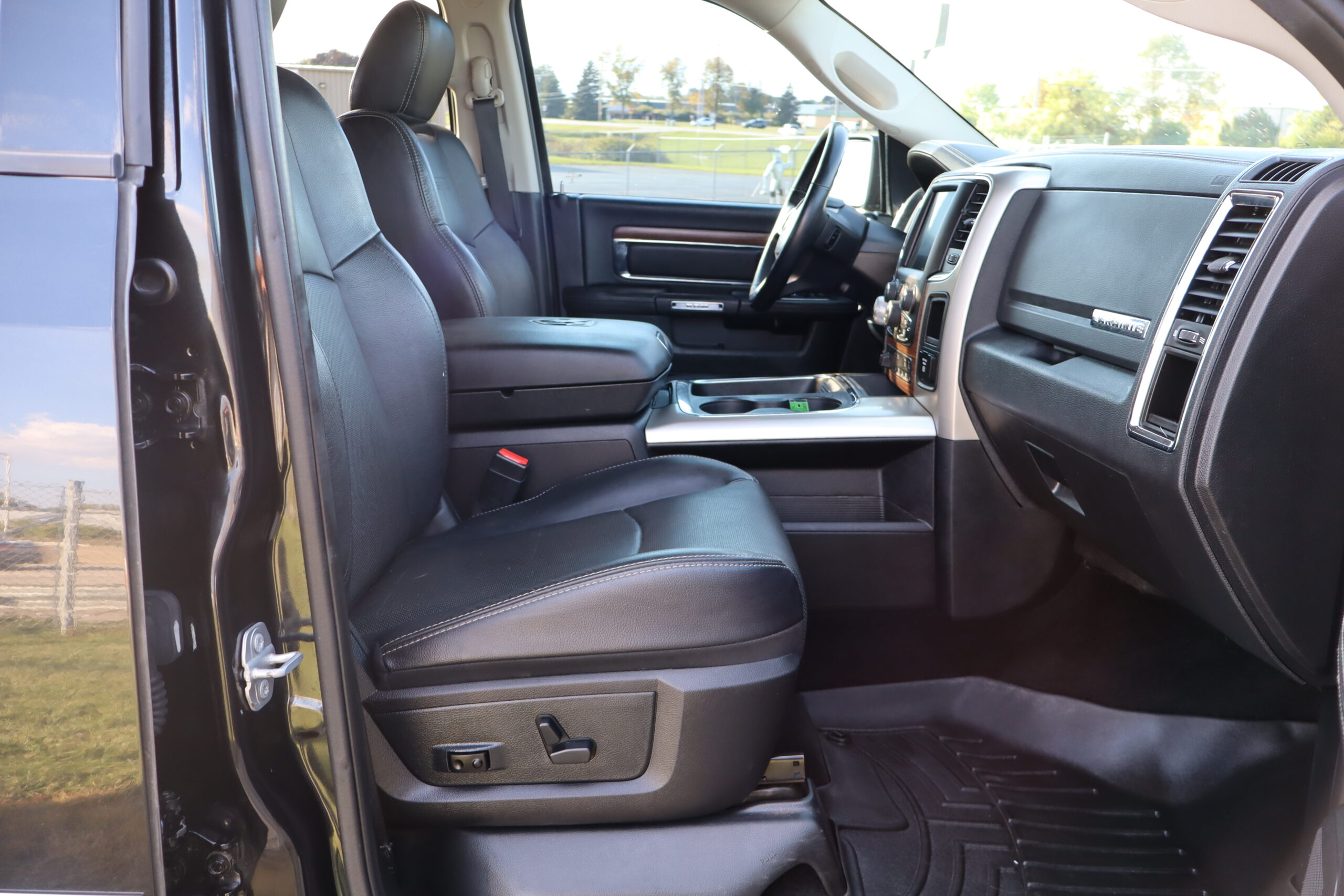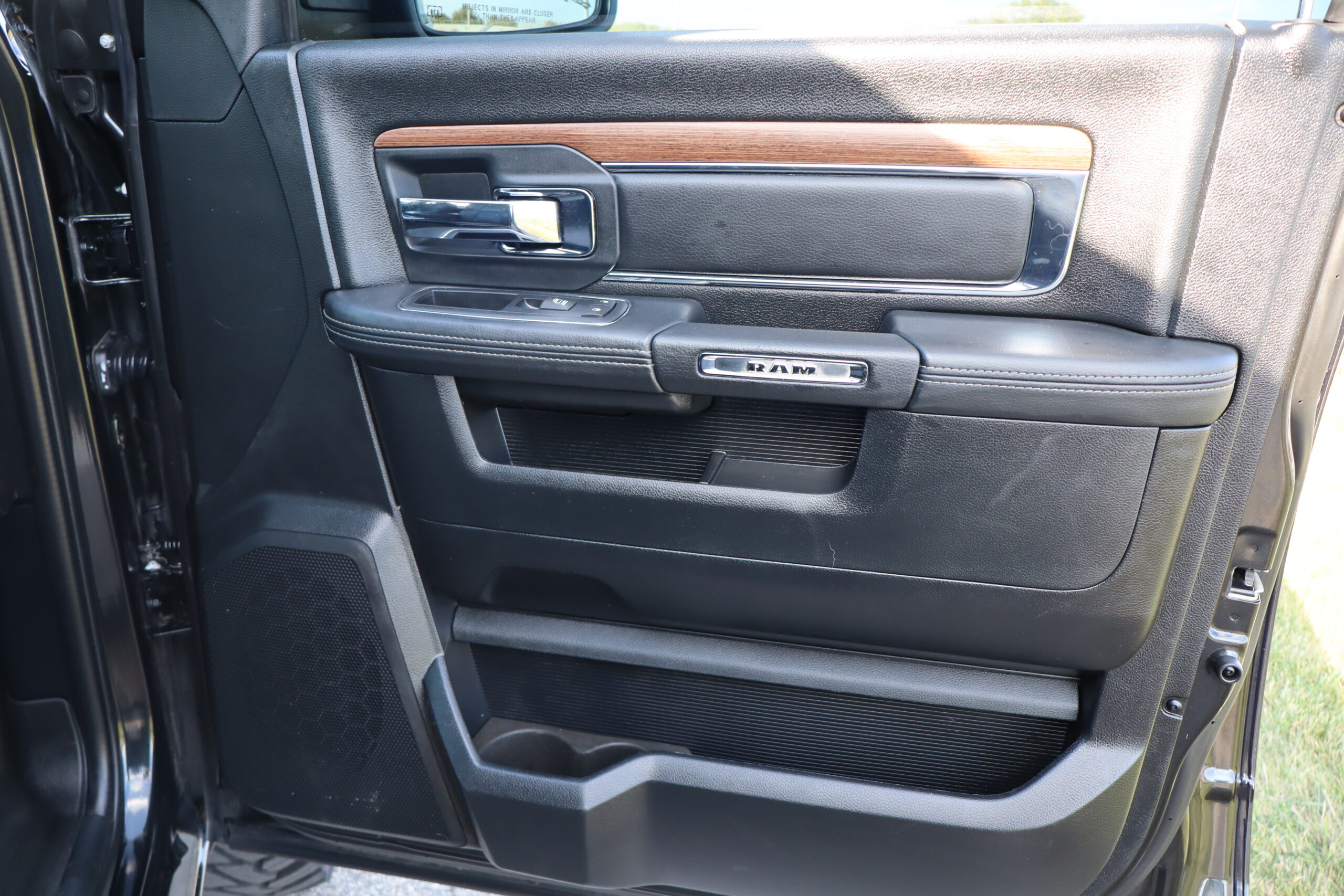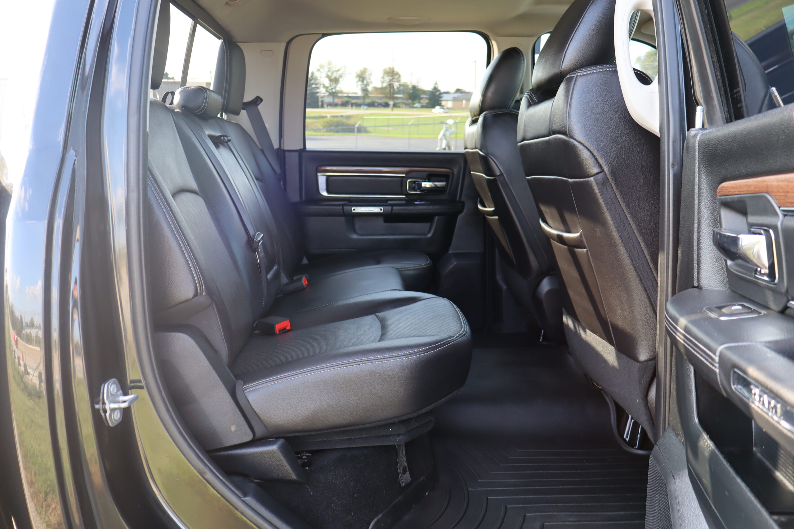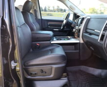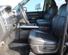 Exterior is Brilliant Black Crystal Pearl, Interior is Black, heated and cooled leather bucket seats with 8-way power adjust driver’s seat and 4-way passenger seats with power lumbar and folding arm rest with dual storage compartments, 60/40 seats with power lumbar and folding arm with dual storage compartments, 60/40 heated/folding bench in rear, memory driver’s seat, sun roof, heated steering wheel, power adjustable pedals, power windows and power door locks, tilt, cruise control, air conditioning, digital dual zone climate control, navigation, AM/FM stereo, XM satellite radio ready, Alpine sound system, AUX jack, USB jack, 110v converter, multi-function steering wheel controls, compass/temperature/mileage display in dash, universal garage door opener, auto dimming rear view mirror, dark rear tinted glass, fog lights, remote entry, remote start, driver’s information center, back up camera, front and rear parking assist, chrome door handles, power/heated folding mirrors, integrated brake controller, tow package with RV style plug and receiver.