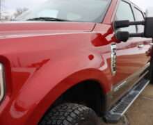 Motor is a 6.7L Power Stroke Diesel, 6-speed automatic transmission with optional tap shift, turn dial 4WD, exhaust brake, 3.55 limited slip differential, 17″ Factory aluminum Alloy wheels with New LT245/75R17 Nitto Terra Grappler AT G3 Load Range E tires.