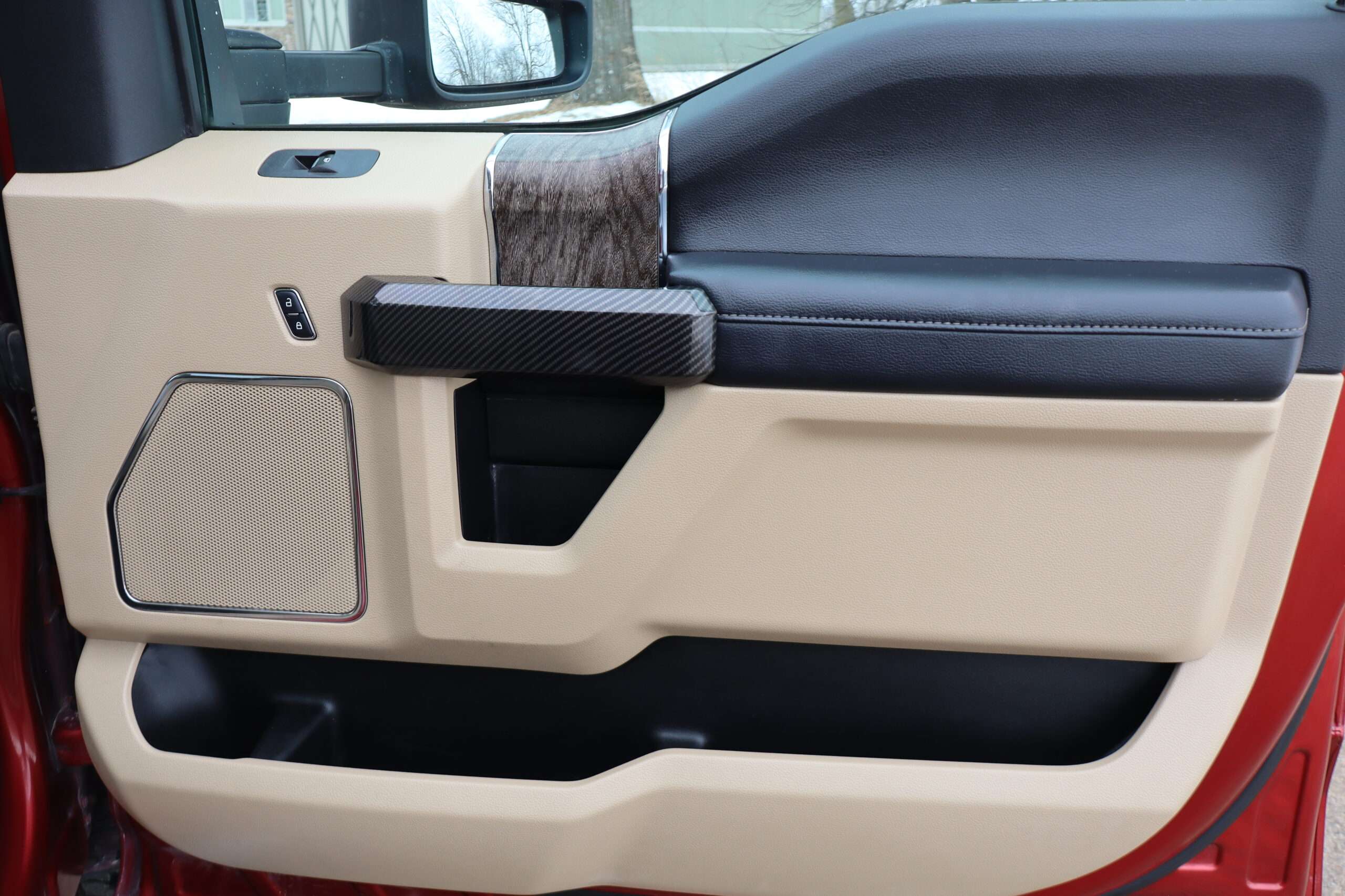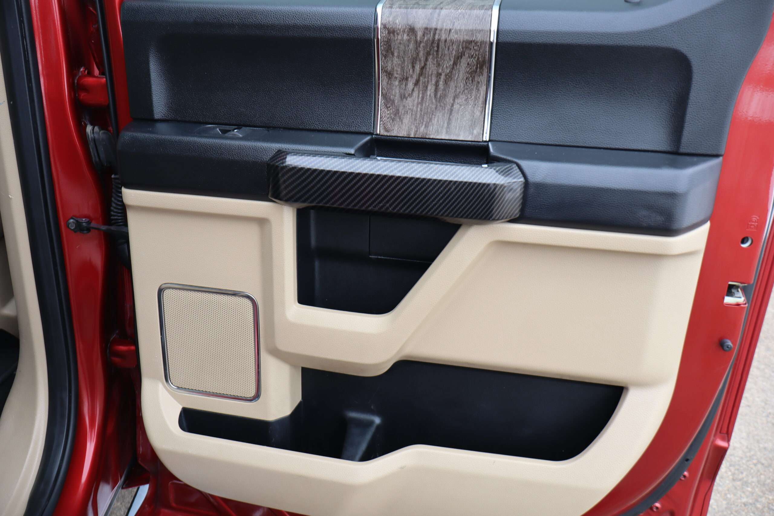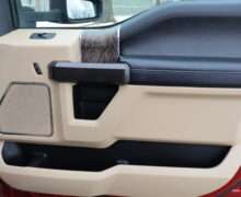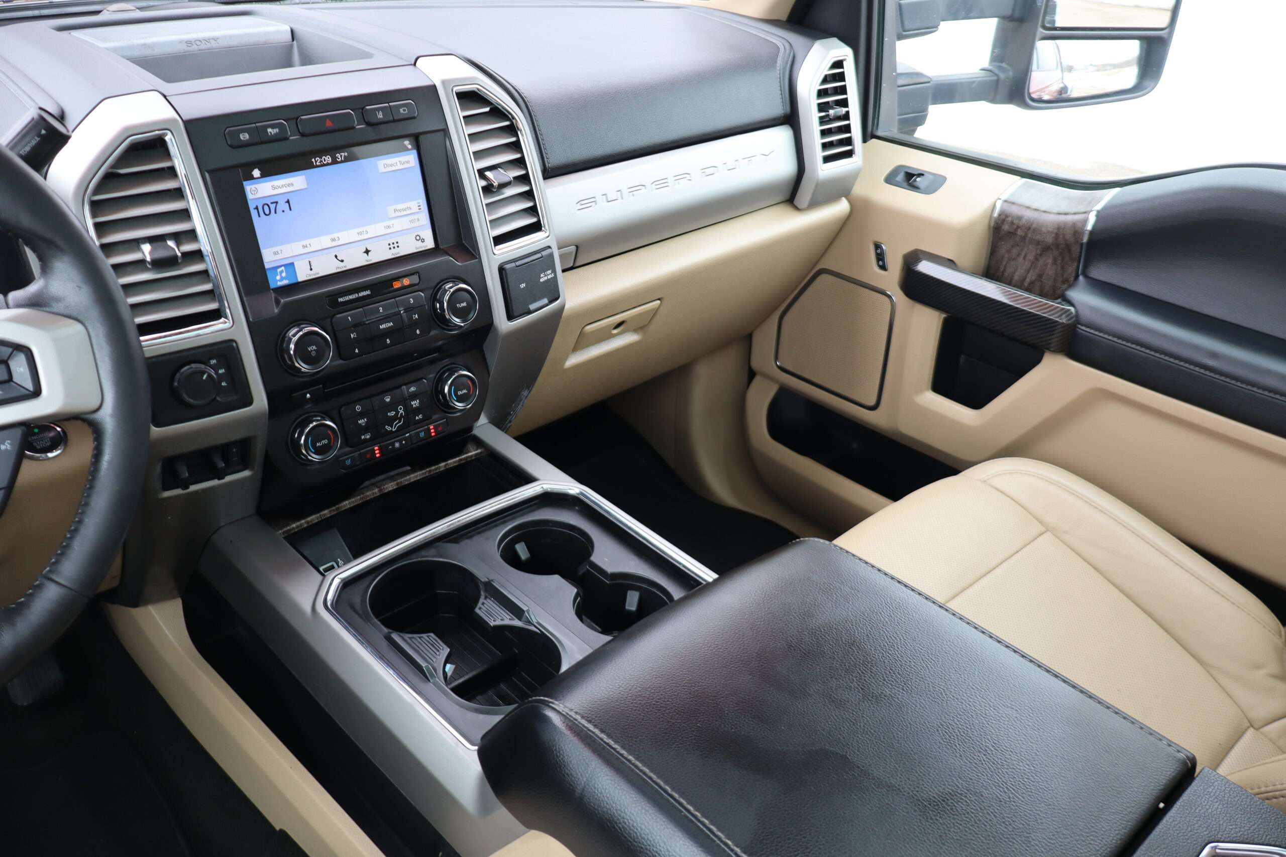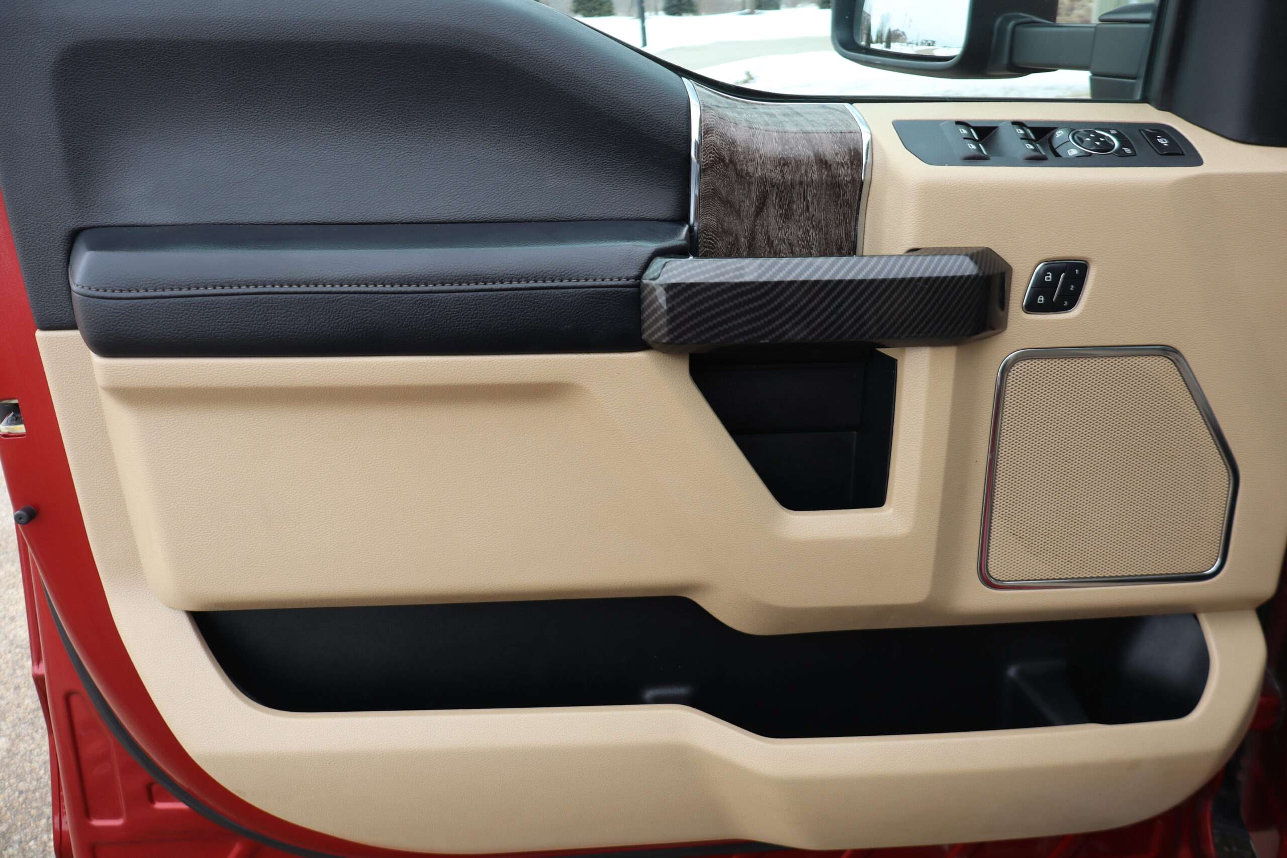 Exterior is Tow Tone Ruby Red Metallic and Caribou, Interior is Camel Leather, dual heated and cooled 10-way power bucket seats in front with hard center console, 60/40 heated rear folding bench with under seat collapsible storage, memory driver’s seat, adaptive steering, lane detection alert, SOS post, rear window defrost, power adjustable pedals, power windows and power door locks, power tilt and telescoping wheel, cruise control, air conditioning, electric rear window defrost, digital climate control, navigation, SYNC III with 8″ touch screen, AM/FM stereo, MP3 player, CD player, Sirius satellite radio ready, dual glove boxes, driver’s information center, Bluetooth capabilities, multi-function steering wheel controls, compass/temperature/mileage display in dash, 360 view camera, back up assist, remote entry, door code entry, remote start, traction control, hill start assist, auto dimming rear view mirror, universal garage door opener, 110v converter, roof marker lights, fog lights, side air bags, power/heated telescoping and folding mirrors with turn signals, LED spot lights, power sliding rear window, dark tinted glass, 6″ chrome step boards, tow package with receiver and trailer wiring, factory electronic brake controller and chrome package.