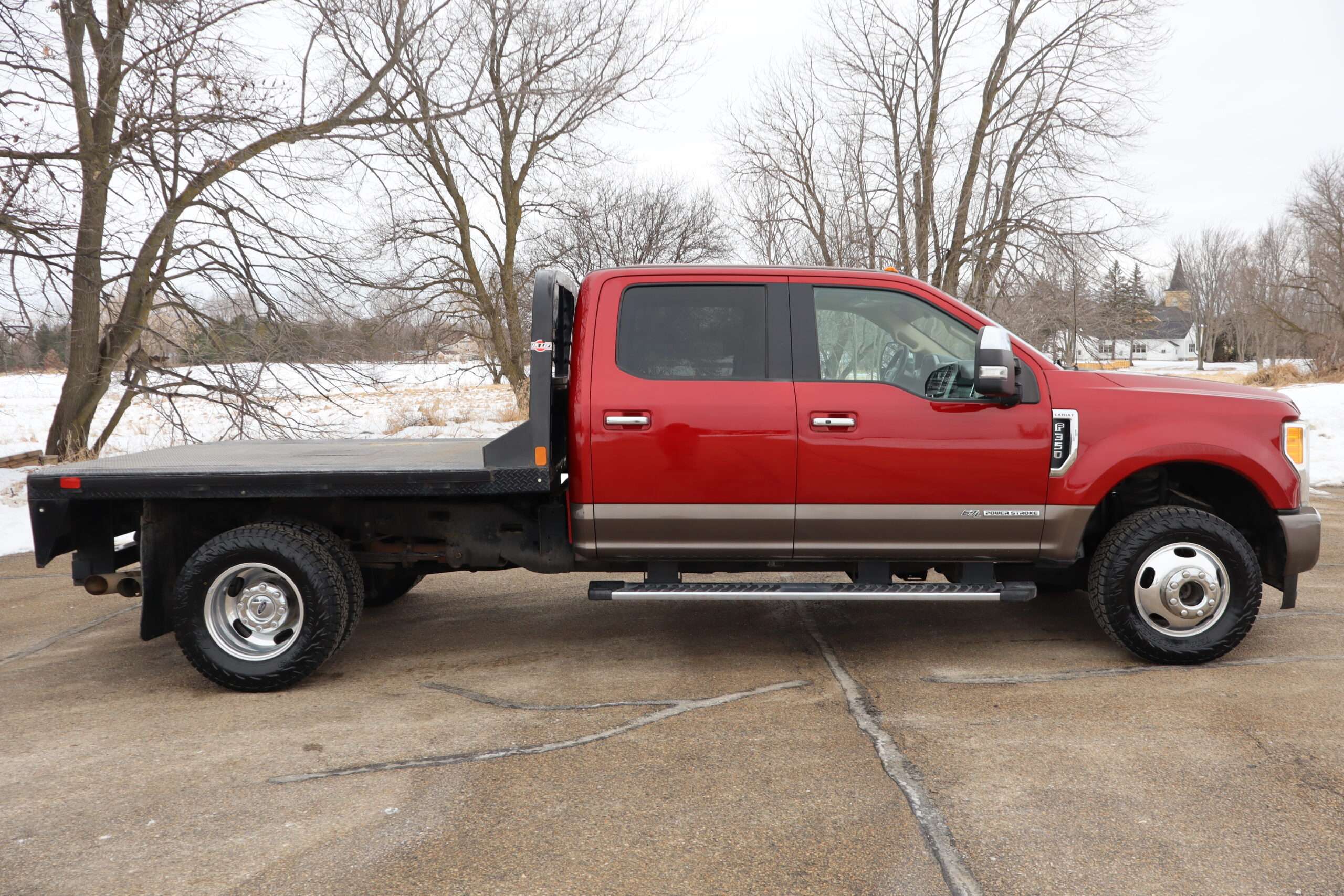 1FT8W3DT4HEE258252017 FORD F350 DRW, CREW CAB, CM FLAT BED, LARIAT ULTIMATE PACKAGE, CHROME PACKAGE, 6.7L TURBO DIESEL, 6-SPEED AUTOMATIC TRANSMISSION, 4WD, 14,000# GVW, TAN HEATED AND COOLED LEATHER, POWER MOON ROOF, NAVIGATION, MEMORY 360 VIEW CAMERA, BLIND SPOT DETECTION, 17″ ALLOY WHEELS, NEW NITTO TIRES, CM FLAT BED, CLEAN WELL MAINTAINED RUST FREE SOUTHERN TRUCK WITH 97,520 MILES AND AN INACTUAL CAR FAX.