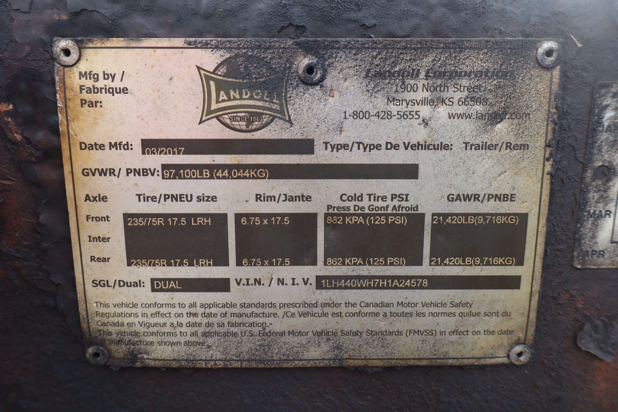 2017 LANDOLL 440A 53′ SLIDING AXLE 97K GVW 20K WINCH REMOTE 17.5″ ALCOA WHEELS