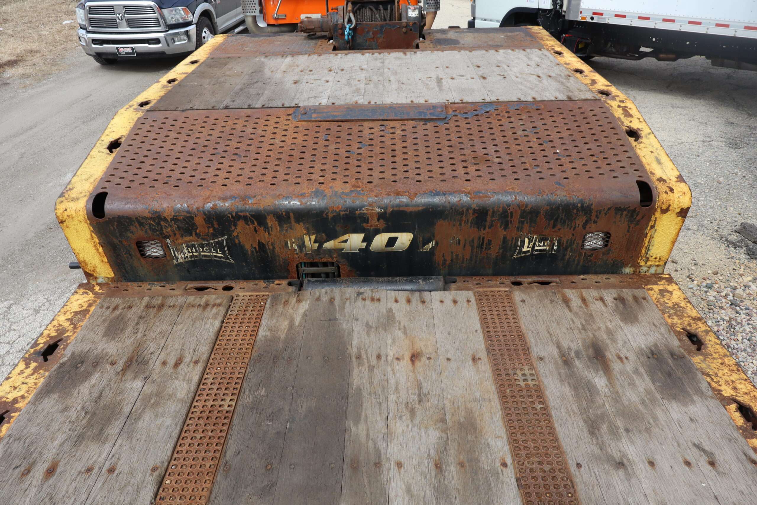 2017 LANDOLL 440A, 53′ HYDRAULIC SLIDING AXLE, TRAILER 97,100 GVW, REMOTE 20,000LB WINCH, TANDEM AXLES, 17.5″ ALCOA ALUMINUM WHEELS, 235/70R17.5 TIRES. THIS IS A HEAVY DUTY HYDRAULIC SLIDING AXLE TRAILER WITH DOT. THIS TRAILER IS READY FOR WORK!