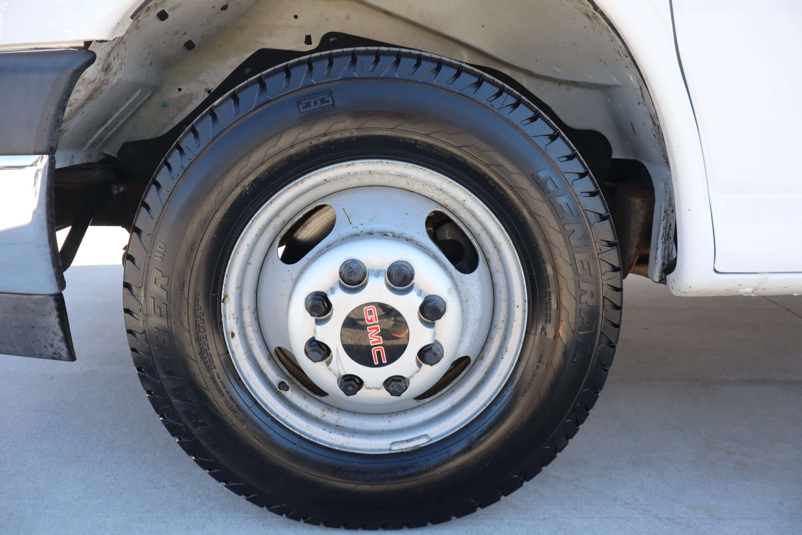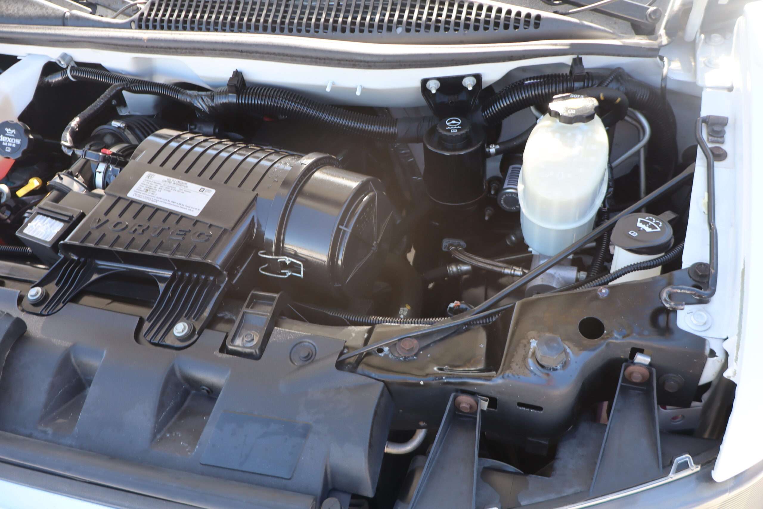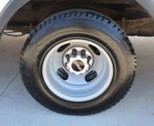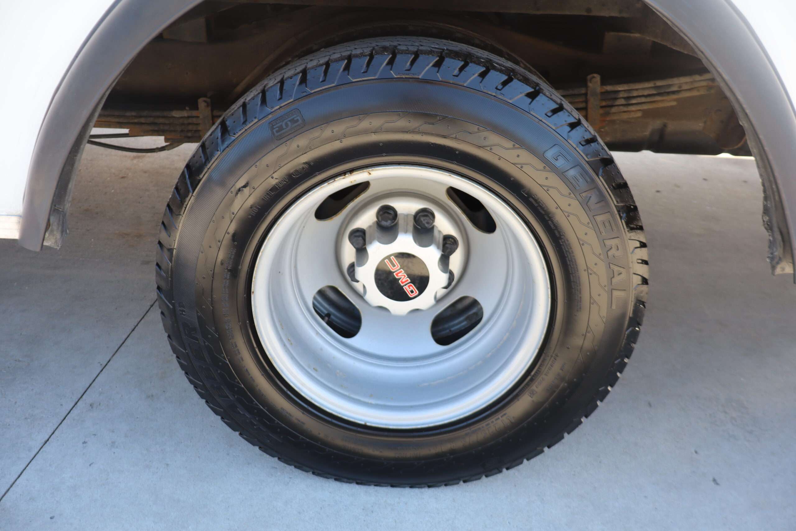 Motor is a 6.0L V8 gas, 6-speed automatic transmission with optional tap shift, RWD, 3.73 axle ratio, 16″ Factory Gray Steel wheels with LT265/75R16 General Grabber Load Range E tires.