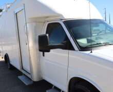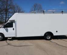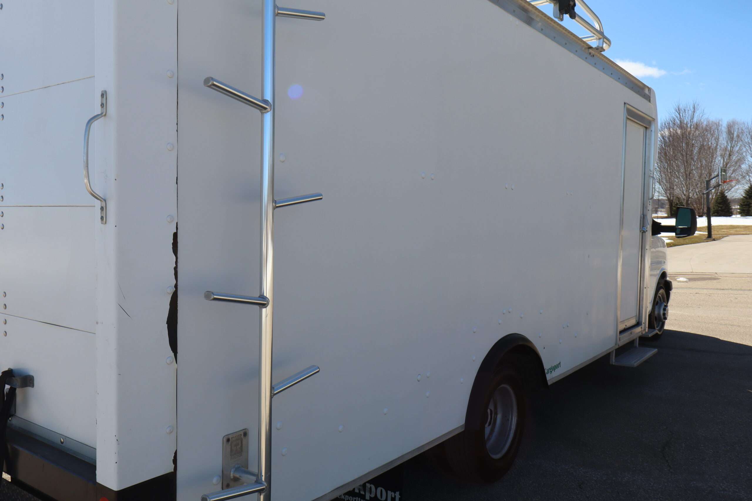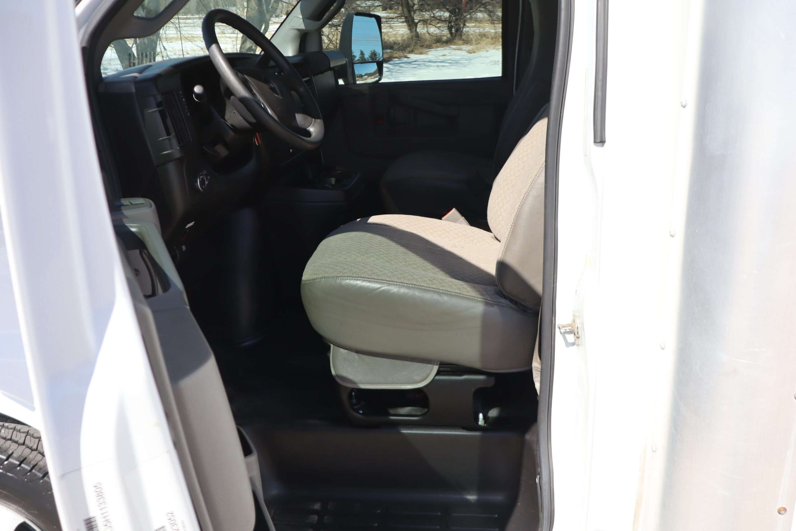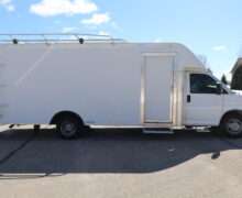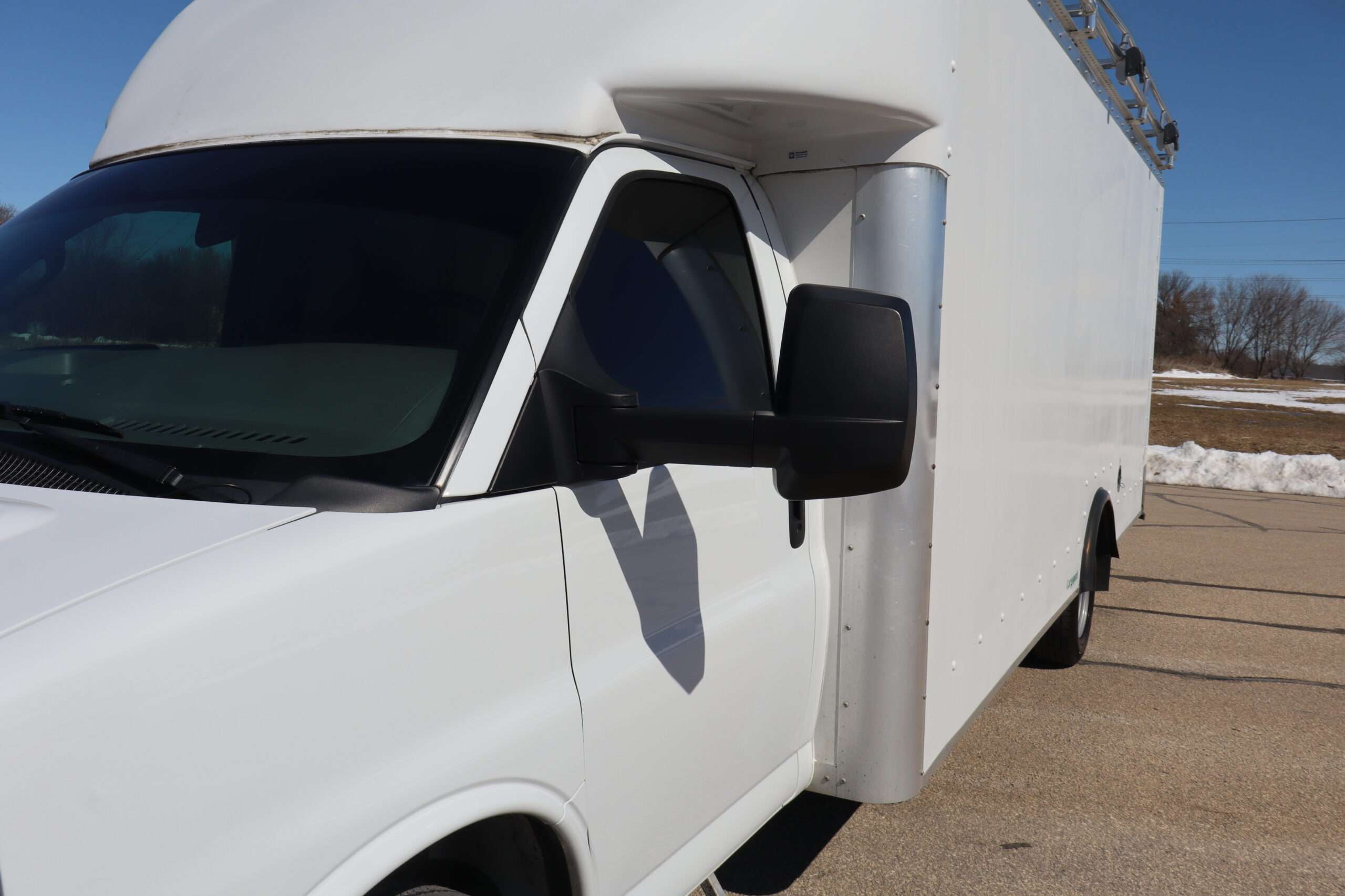1GD37SCG5H11338052017 GMC 3500 SAVANA CUTAWAY BOX TRUCK, 6.0L GAS, AUTOMATIC TRANSMISSION, RWD, 177″ WHEEL BASE, 18’X8′ WIDE X 6′-8″ TALL WITH CURB DOOR, HEAVY DUTY STEP, ALUMINUM LADDER RACK, 16″ FACTORY WHEELS, GENERAL TIRES, SUPER CLEAN METICULOUSLY MAINTAINED 2 OWNER BOX TRUCK WITH 86,188 MILES AND A GOOD CAR FAX.