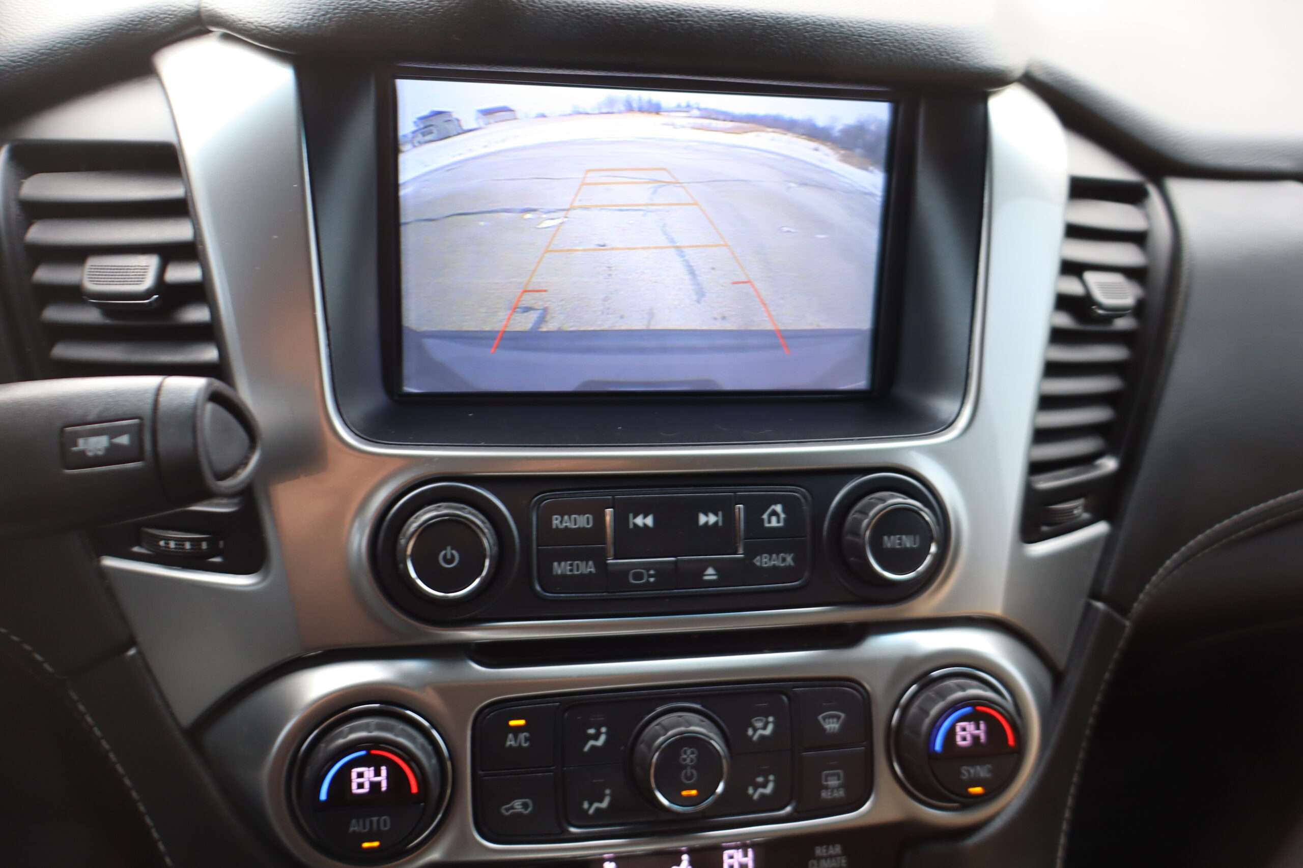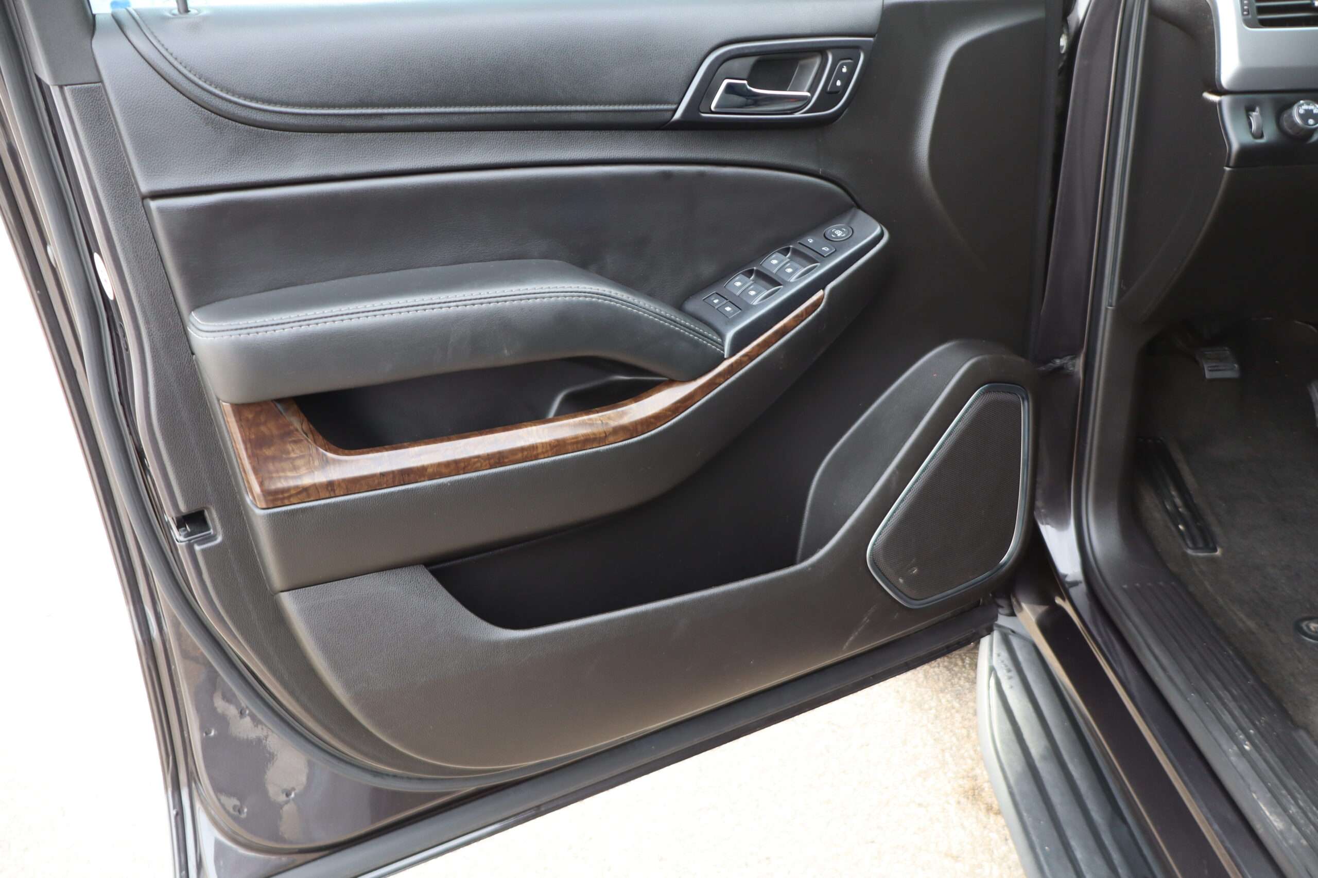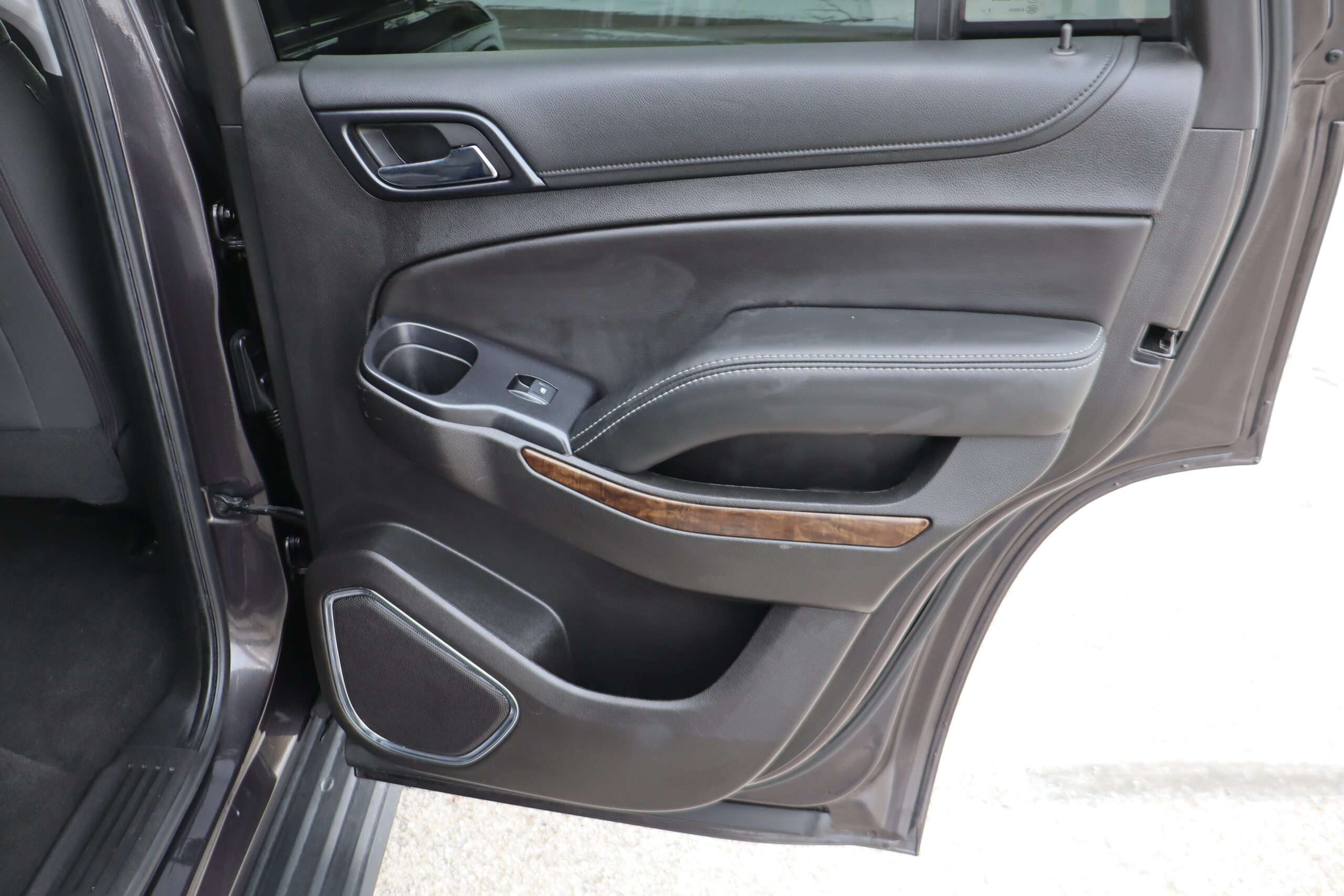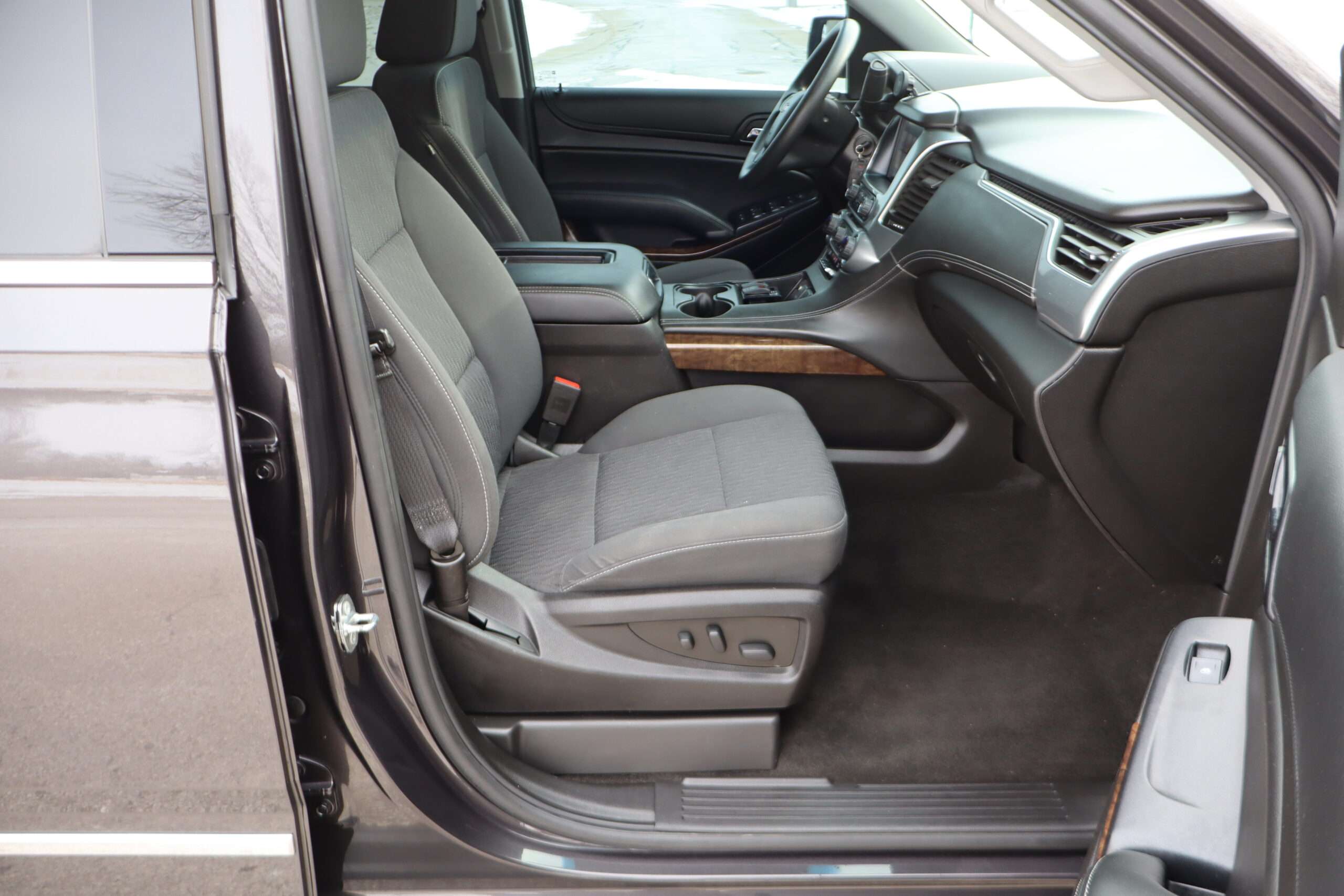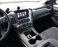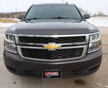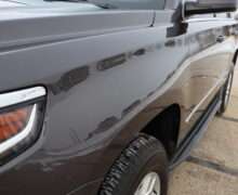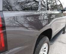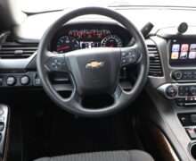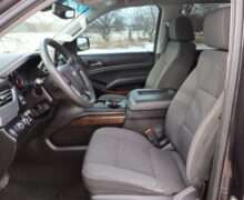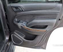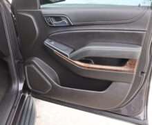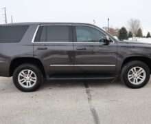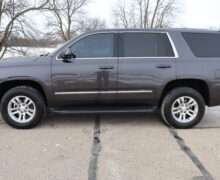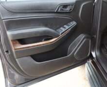 Exterior is Iridium Metallic, Interior is Black cloth, dual 8-way power bucket seats in front with power lumbar and center console, 60/40 split folding bench in 2nd row, air ride suspension, power adjustable pedals, traction control, power windows and power door locks, tilt steering wheel, air conditioning, electric rear window defrost, digital tri-zone climate control, dual gloves boxes, MyLink audio system with 8″ color touch screen with OnStar, navigation, AM/FM stereo, XM satellite radio ready, back up camera, rear parking assist, head curtain air bags, multi-function steering wheel controls, 110v outlet, power point, compass/temperature/mileage display, remote entry, remote start, auto dimming rear view mirror, dark tinted glass, driver’s information center, hill descent control, power lift gate, remote hatch, rear wipers, power/folding heated mirrors, trailering package with receiver, integrated brake controller and running boards.