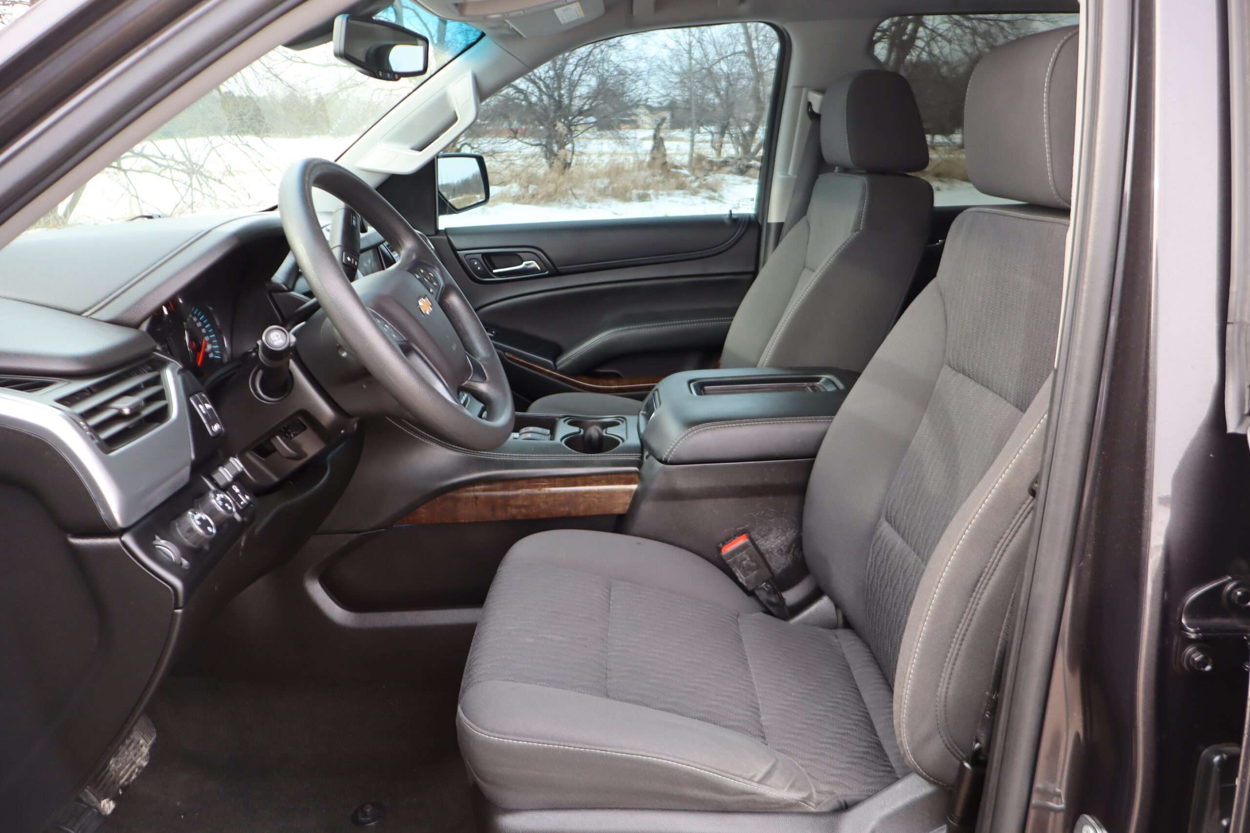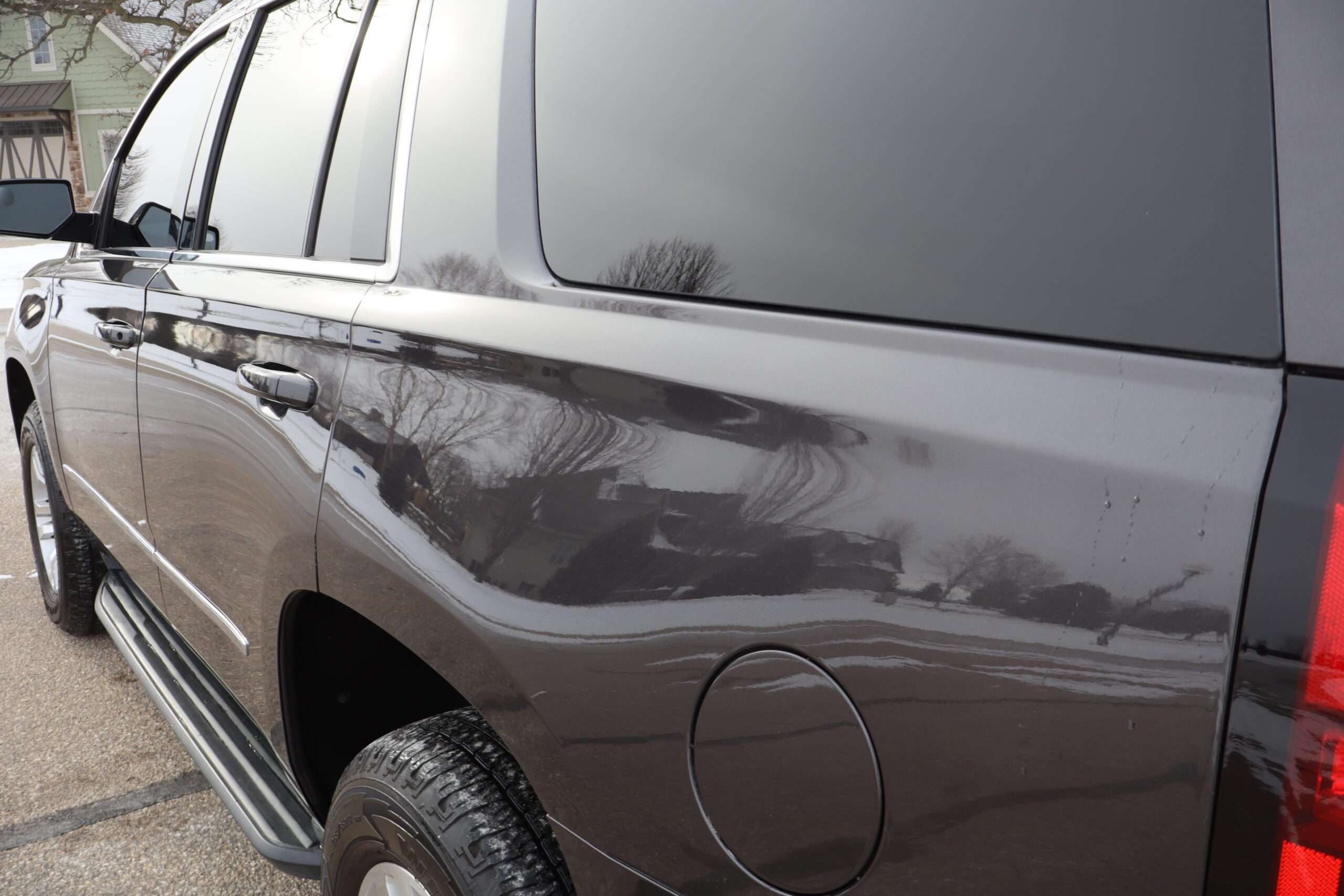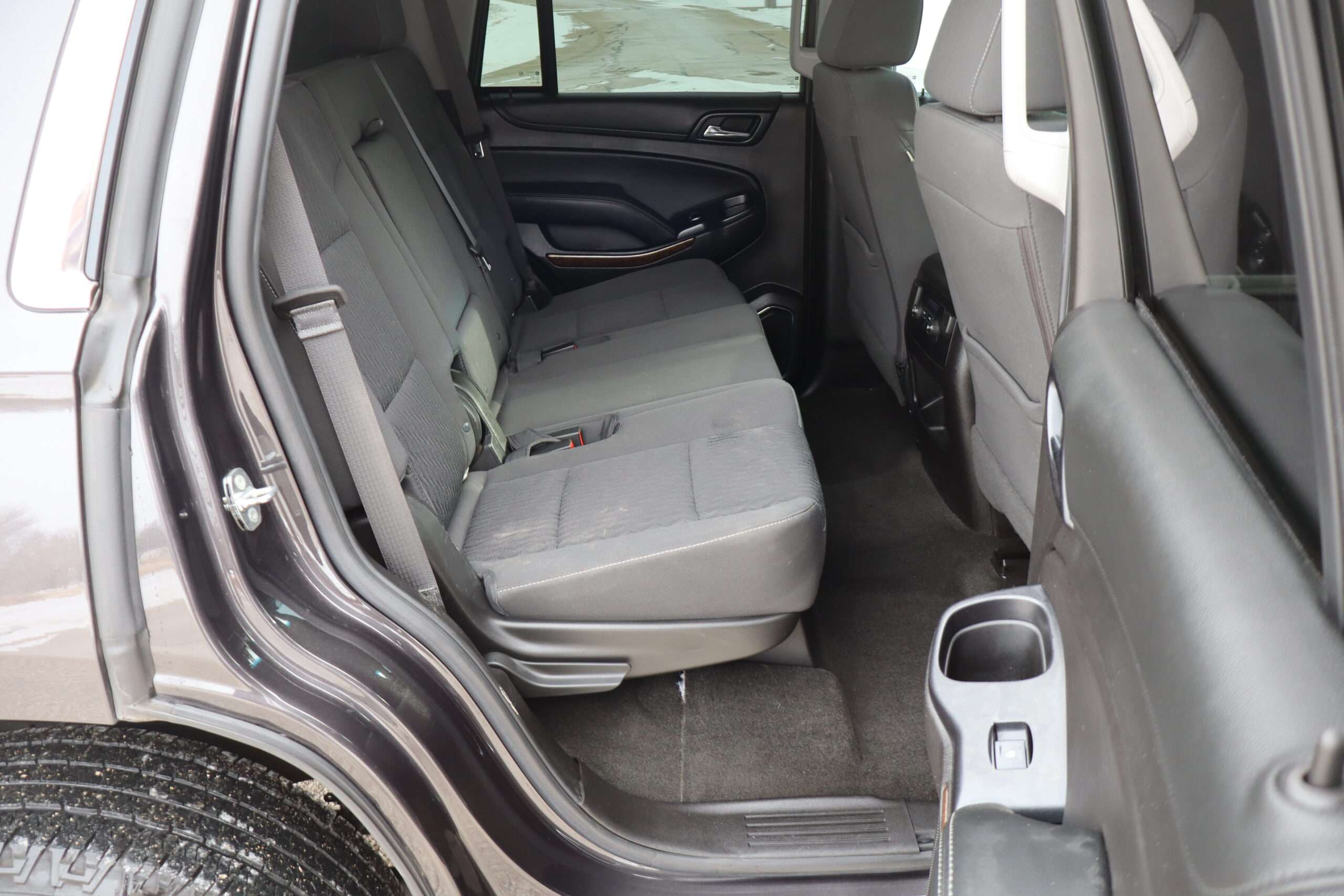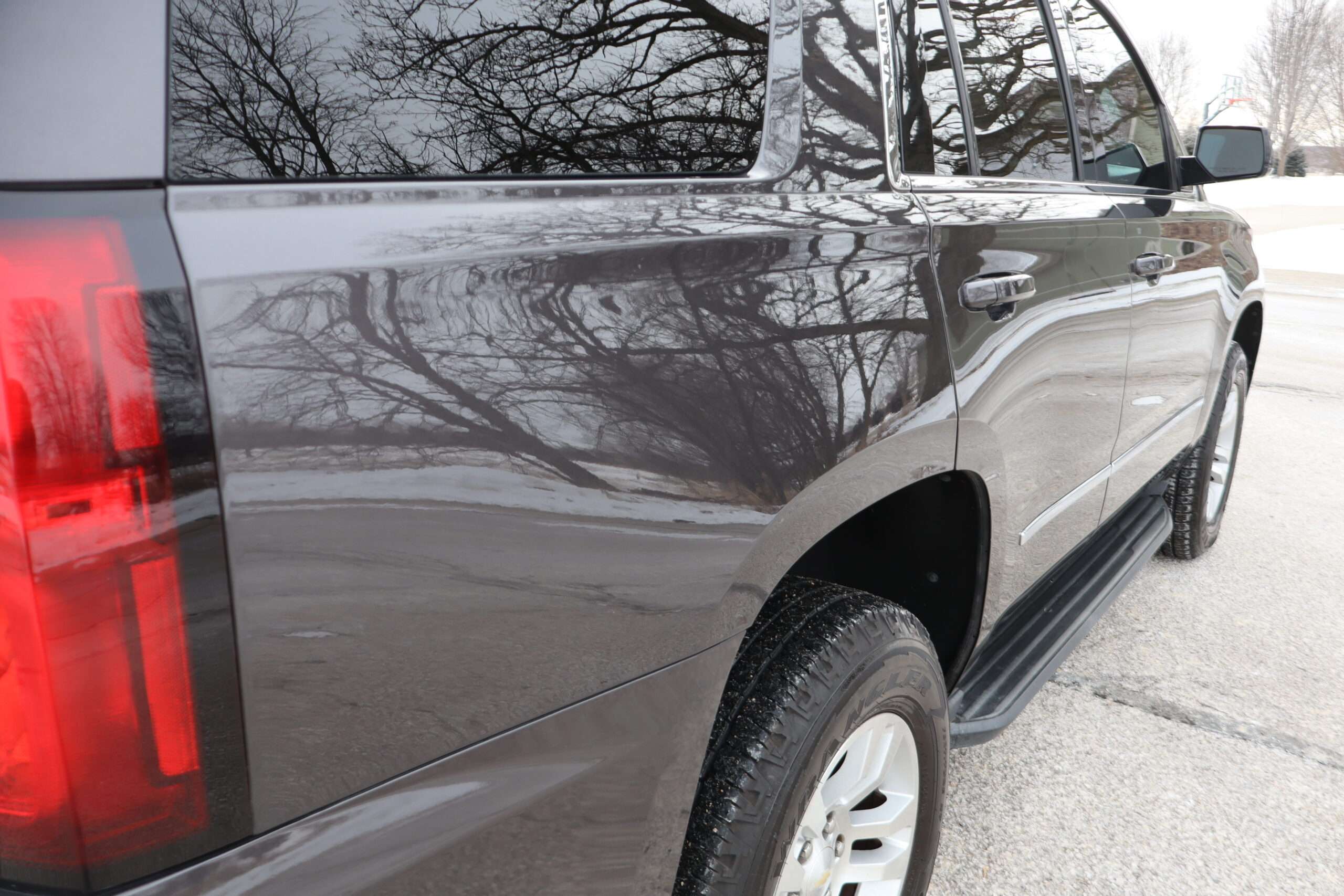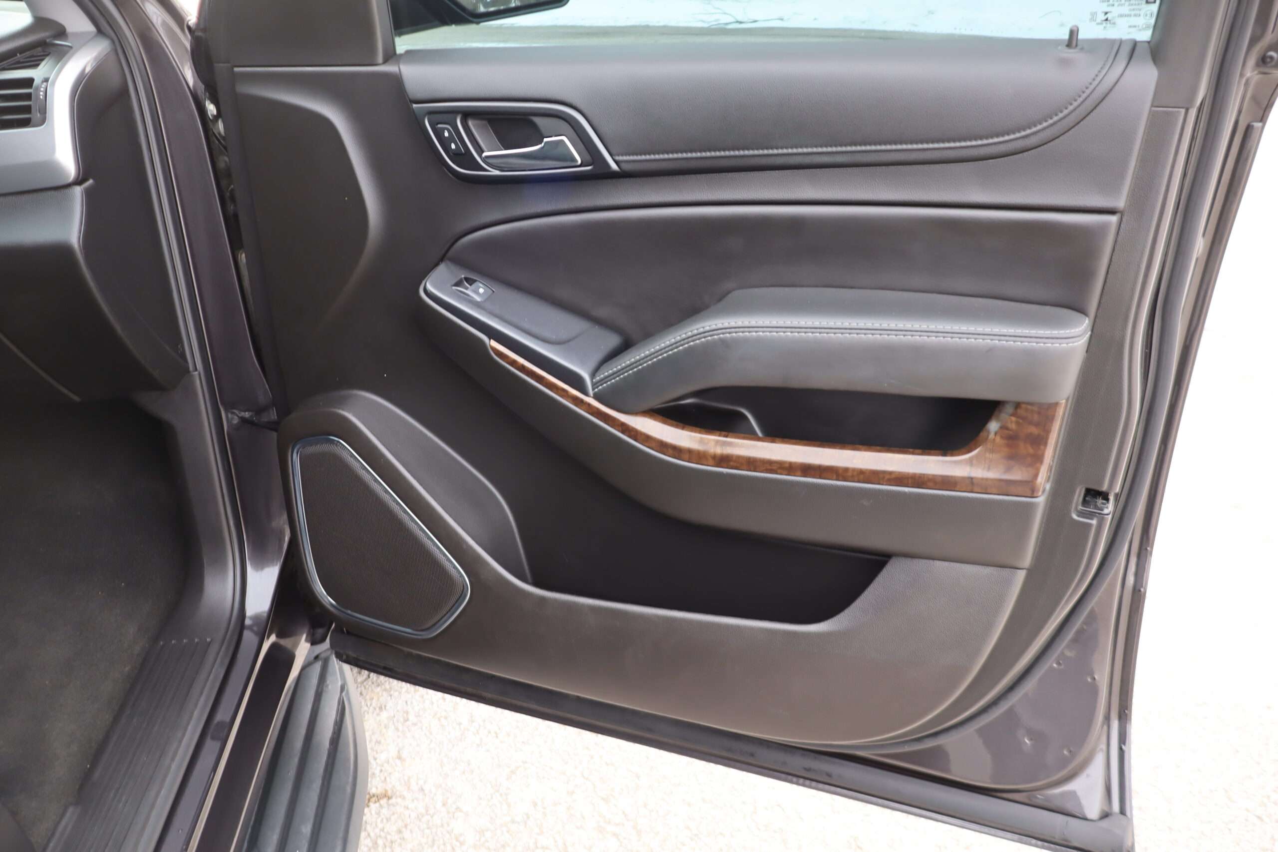 Exterior is Iridium Metallic, Interior is Black cloth, dual 8-way power bucket seats in front with power lumbar and center console, 60/40 split folding bench in 2nd row, air ride suspension, power adjustable pedals, traction control, power windows and power door locks, tilt steering wheel, air conditioning, electric rear window defrost, digital tri-zone climate control, dual gloves boxes, MyLink audio system with 8″ color touch screen with OnStar, navigation, AM/FM stereo, XM satellite radio ready, back up camera, rear parking assist, head curtain air bags, multi-function steering wheel controls, 110v outlet, power point, compass/temperature/mileage display, remote entry, remote start, auto dimming rear view mirror, dark tinted glass, driver’s information center, hill descent control, power lift gate, remote hatch, rear wipers, power/folding heated mirrors, trailering package with receiver, integrated brake controller and running boards.