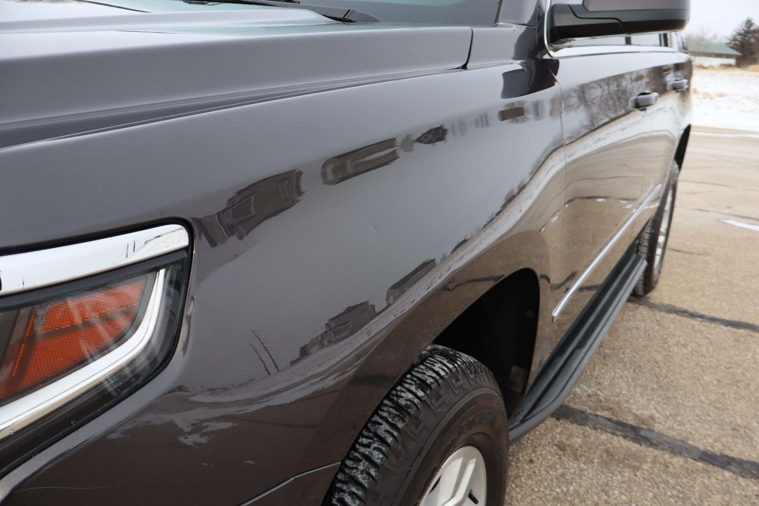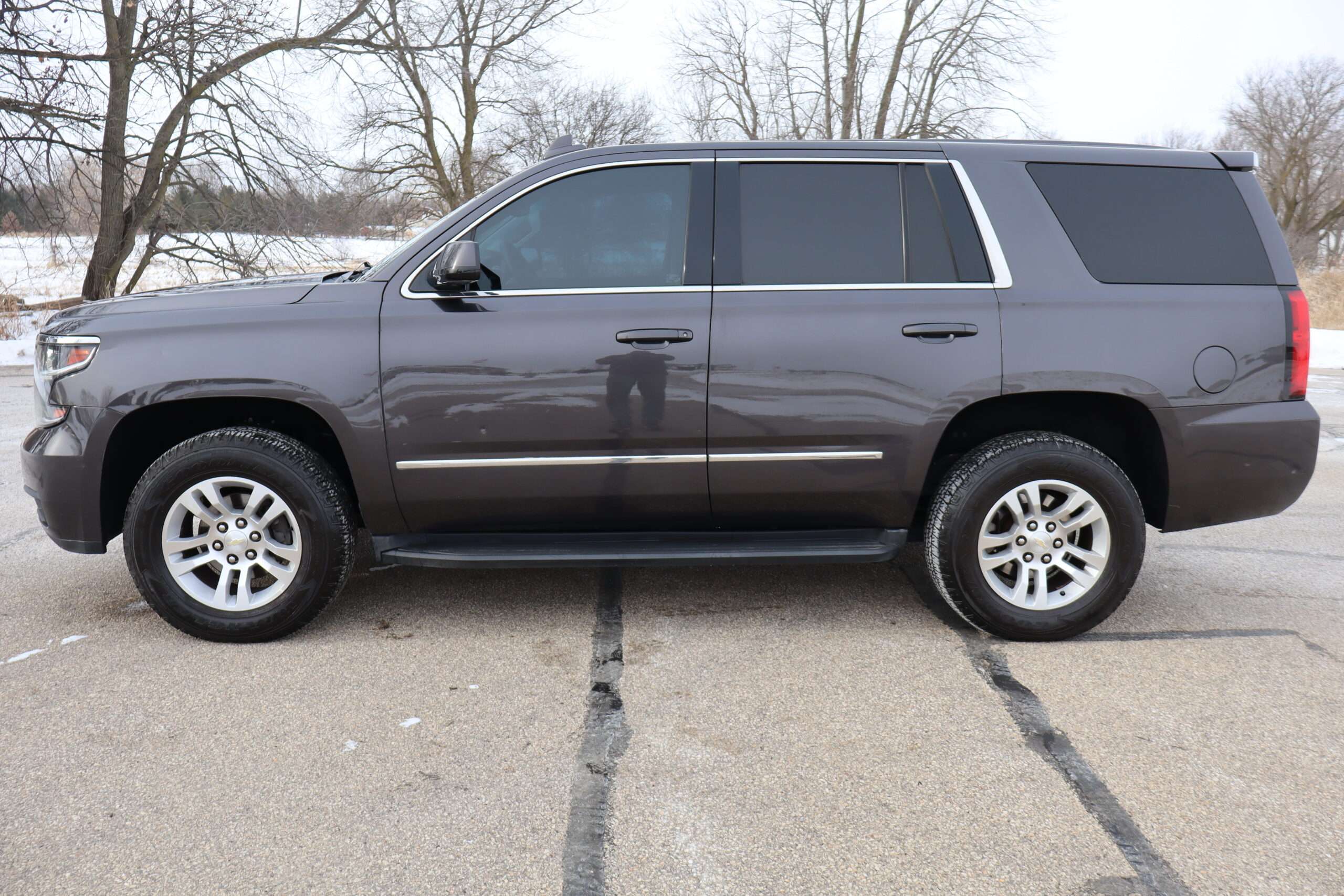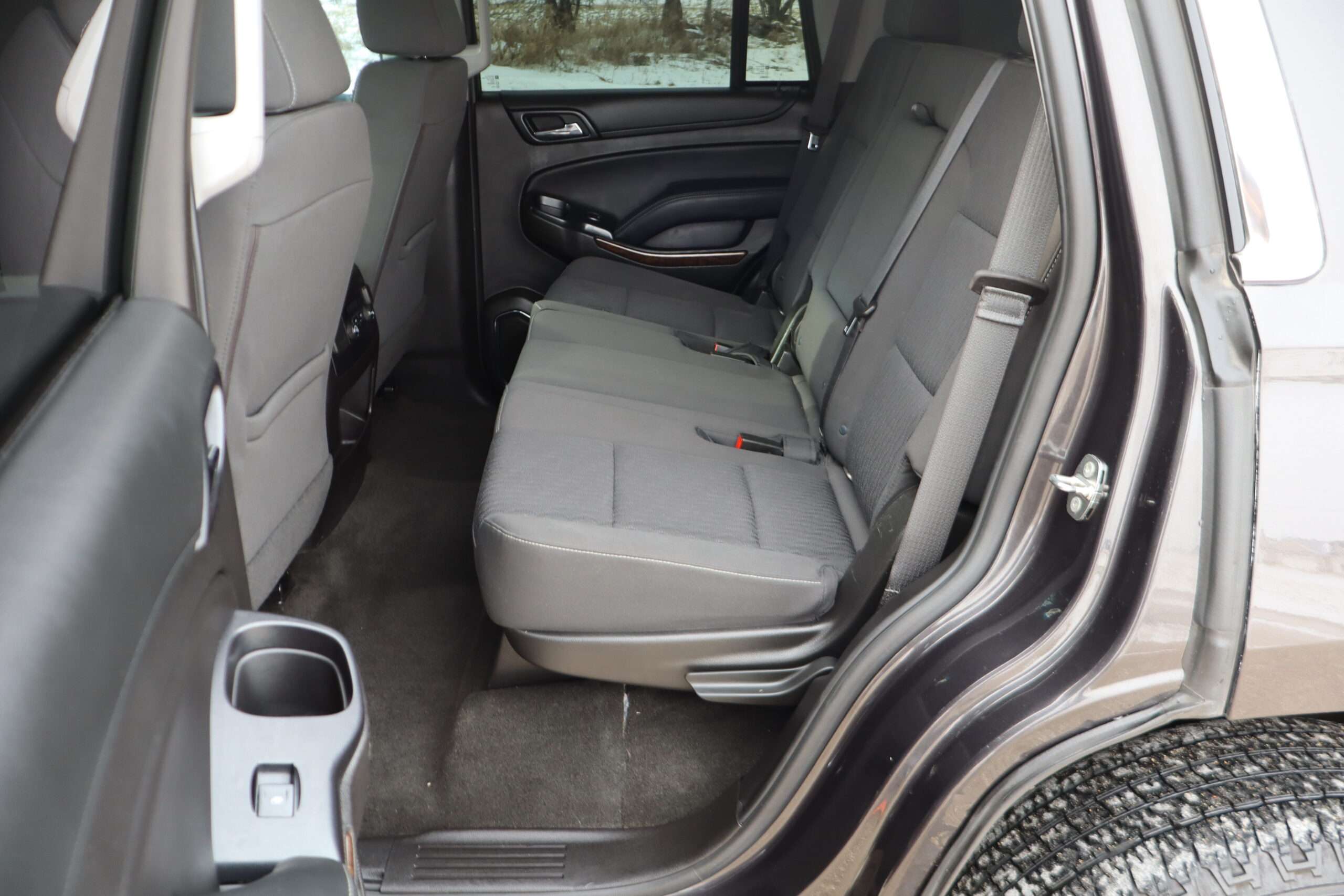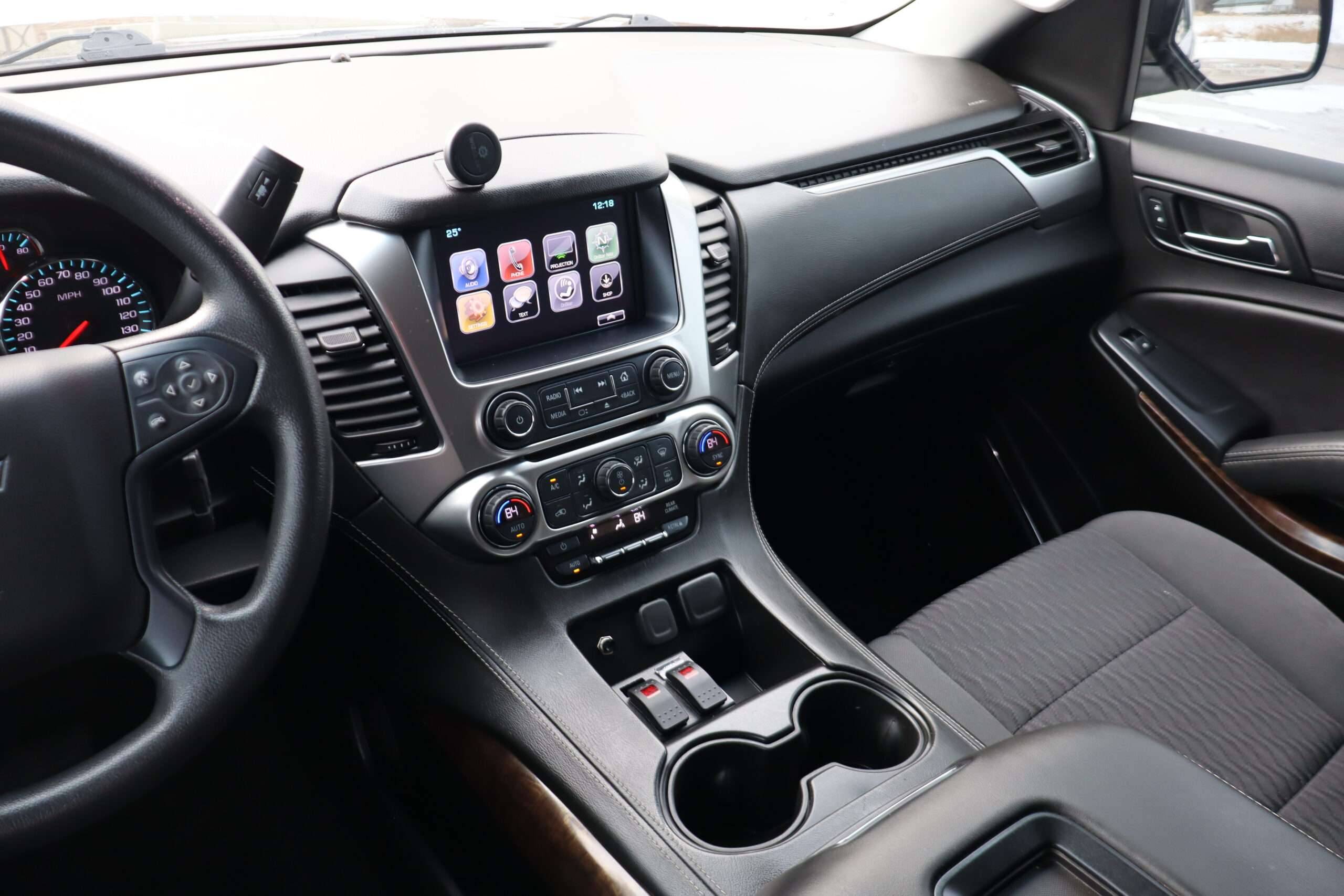 Exterior is Iridium Metallic, Interior is Black cloth, dual 8-way power bucket seats in front with power lumbar and center console, 60/40 split folding bench in 2nd row, air ride suspension, power adjustable pedals, traction control, power windows and power door locks, tilt steering wheel, air conditioning, electric rear window defrost, digital tri-zone climate control, dual gloves boxes, MyLink audio system with 8″ color touch screen with OnStar, navigation, AM/FM stereo, XM satellite radio ready, back up camera, rear parking assist, head curtain air bags, multi-function steering wheel controls, 110v outlet, power point, compass/temperature/mileage display, remote entry, remote start, auto dimming rear view mirror, dark tinted glass, driver’s information center, hill descent control, power lift gate, remote hatch, rear wipers, power/folding heated mirrors, trailering package with receiver, integrated brake controller and running boards.