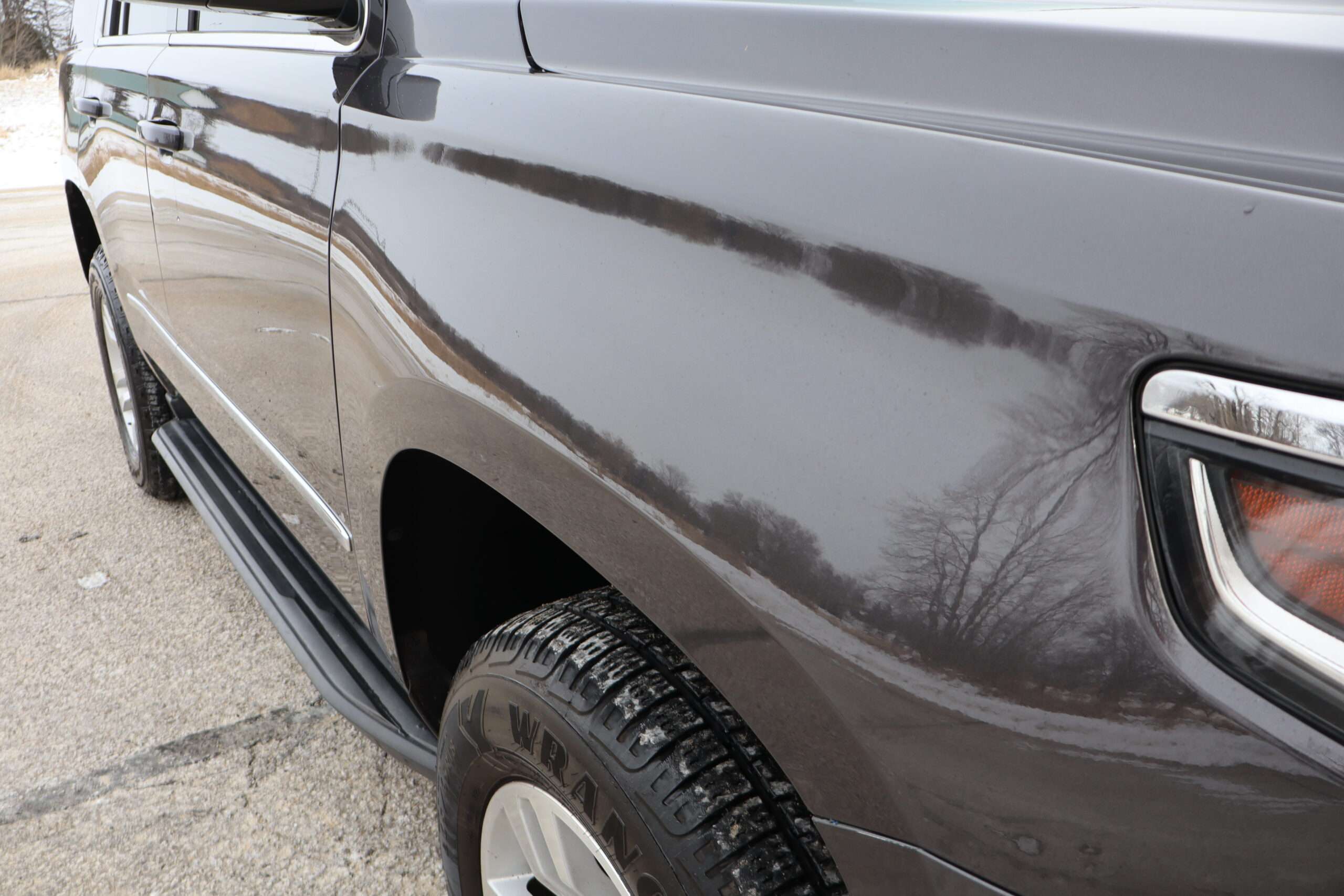 Motor is a 5.3L V8 Flex Fuel with 6-speed automatic transmission with optional tap shift, turn dial 4WD, 3.42 axle ratio, 18″ Factory Alloy wheels with P265/65R18 Good Year Wrangler tires.