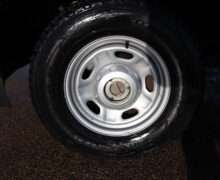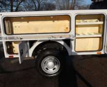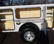 Motor is a 6.2L V8 gas, 6-speed automatic transmission, turn dial 4WD, 3.73 electrical locking axle, 10,000# GVW package, 17″ Factory Gray Steel wheels, New LT265/70R17 Good Year Wrangler.