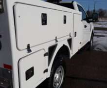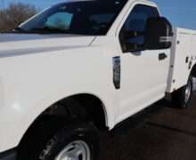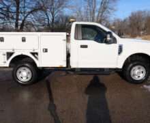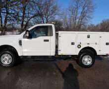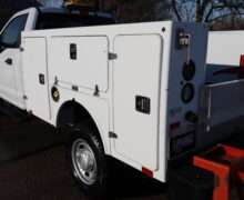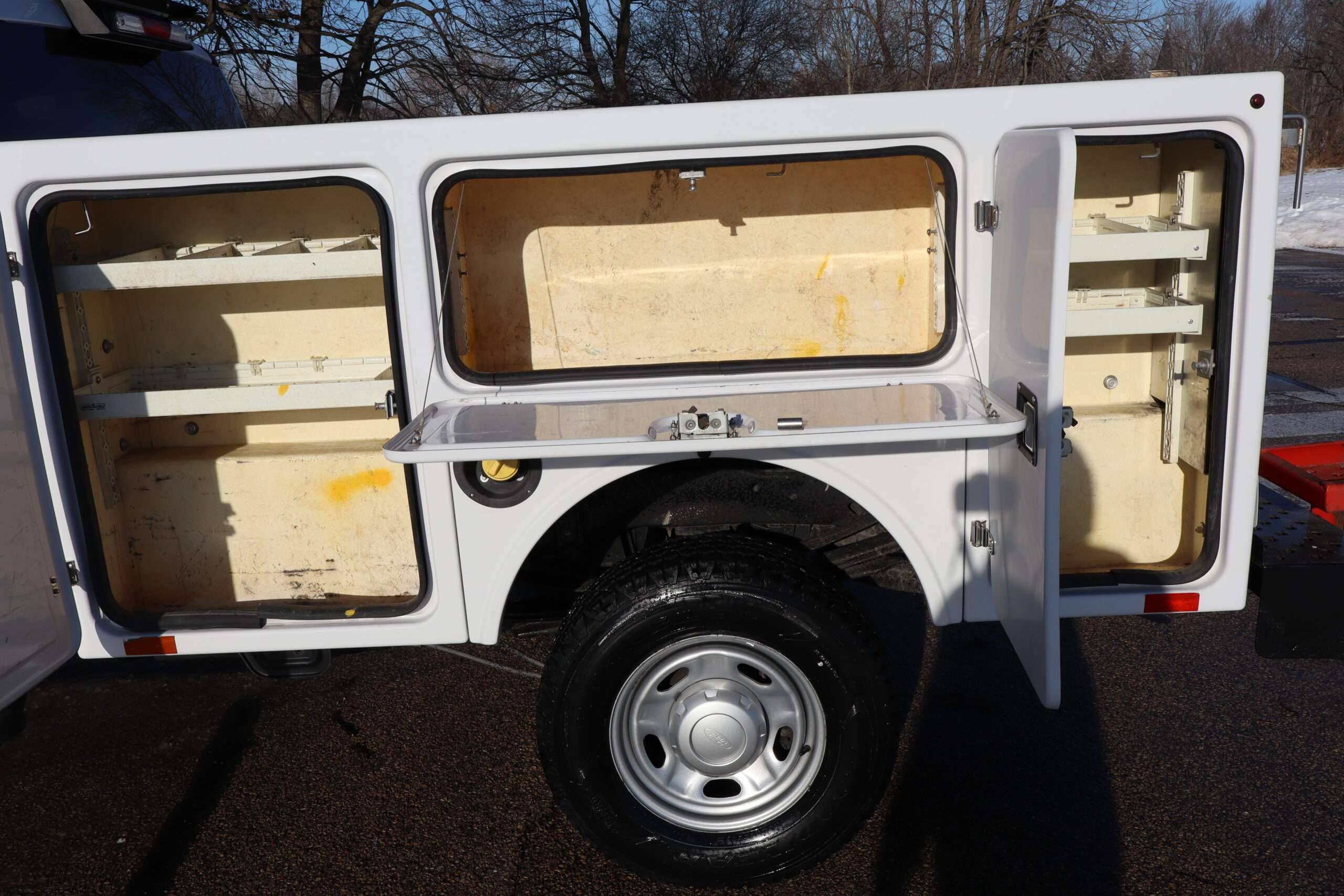 EXTRAS: 8’x6′-8″ Brand FX Service/Utility bed with heavy duty bumper and Whelen strobe light.