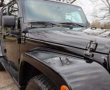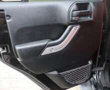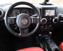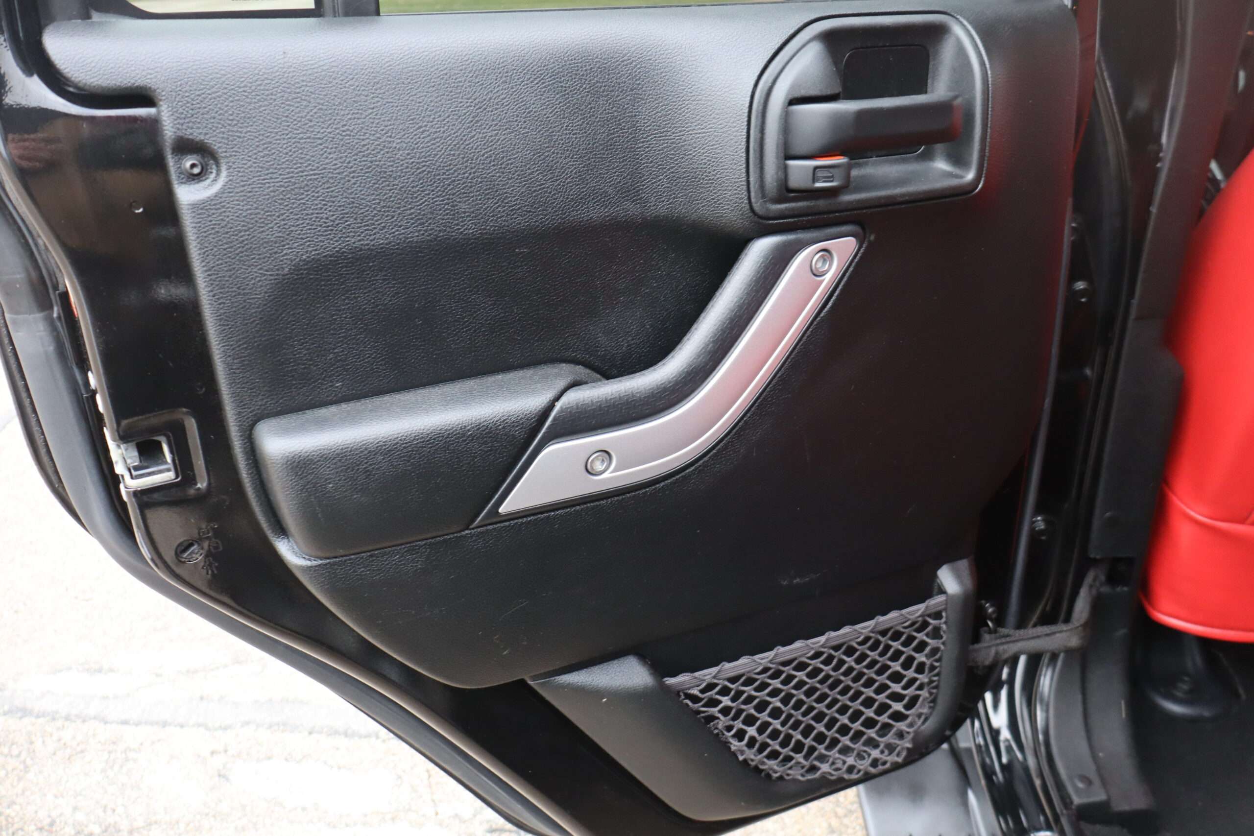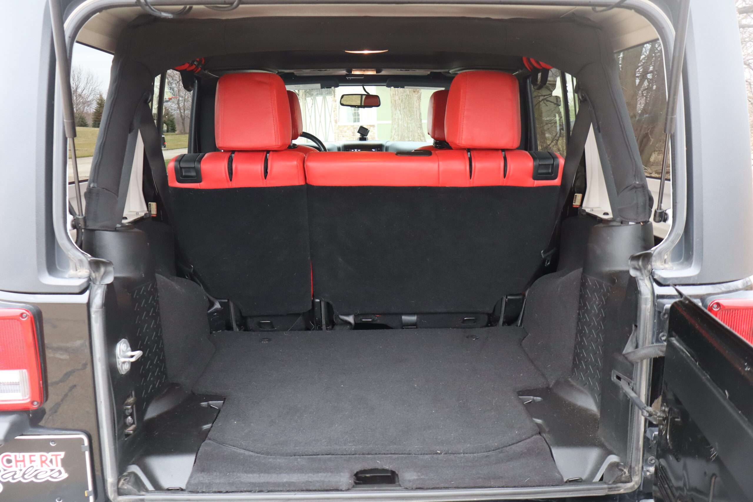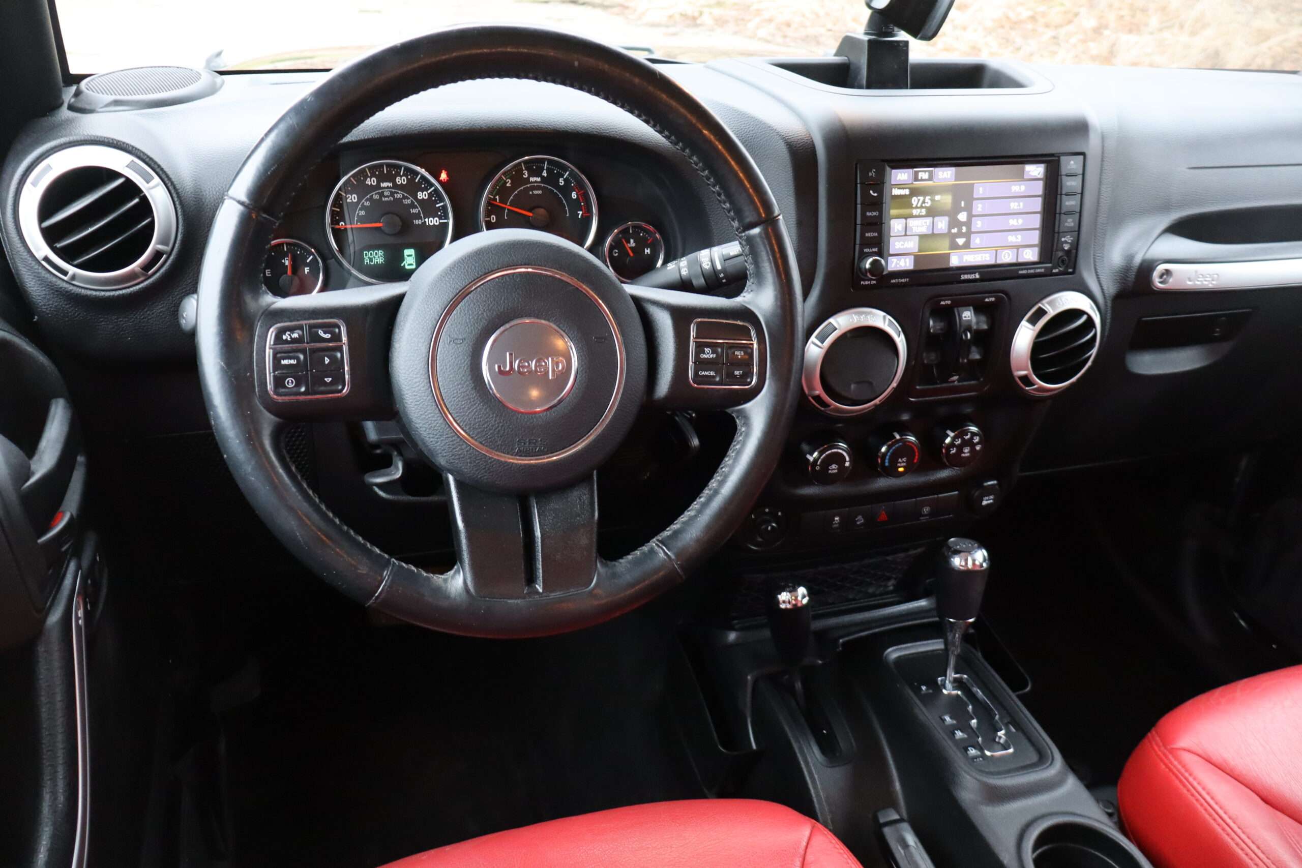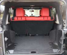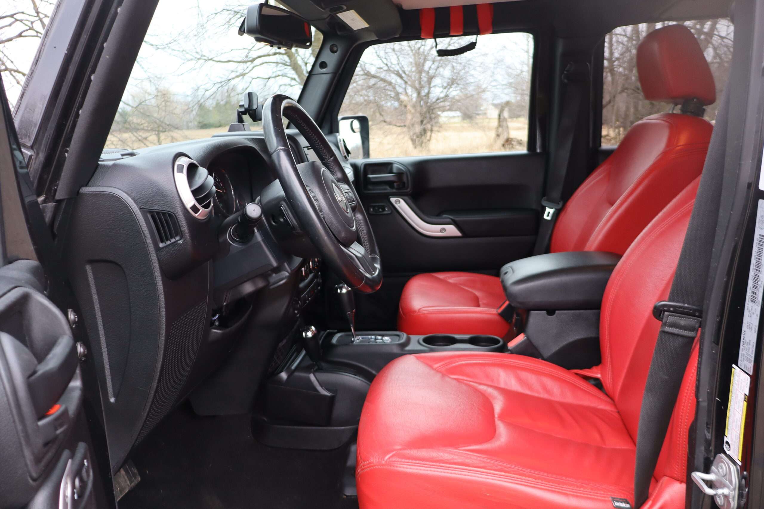 Exterior is Black Clear Coat, Interior is Red Leather, bucket seats in front with console with locking storage compartment, 60/40 folding bench in 2nd row, traction control, hill assist, tilt and telescoping wheel, power windows and power door locks, electric rear window defrost, AM/FM stereo, MP3 player, XM satellite radio ready, Bluetooth, heated/power mirrors, auto dimming rear view mirror, keyless entry, remote start, 115v converter, automatic headlights, fog lights, multi-function steering wheel, hard top, dark tinted glass, tow package with receiver, wire harness and full size spare.
