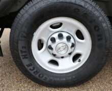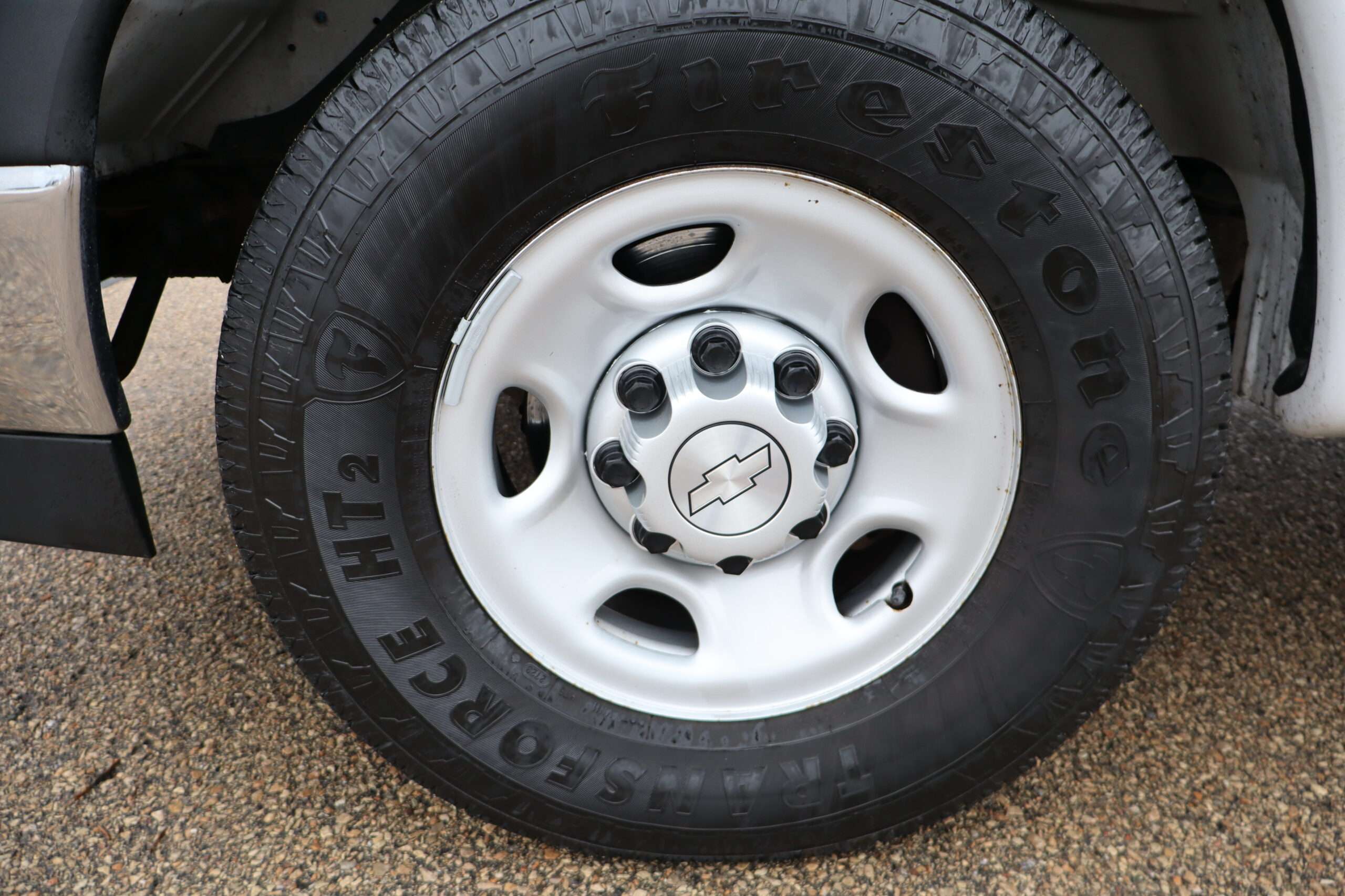 Motor is a 6.0L Gas, with a 6-speed automatic transmission with optional tap shift, RWD, 3.42 axle ratio, 16″ Factory Gray Steel wheels with Newer LT245/75R16 Firestone Transforce H/T II Load Range E tires.