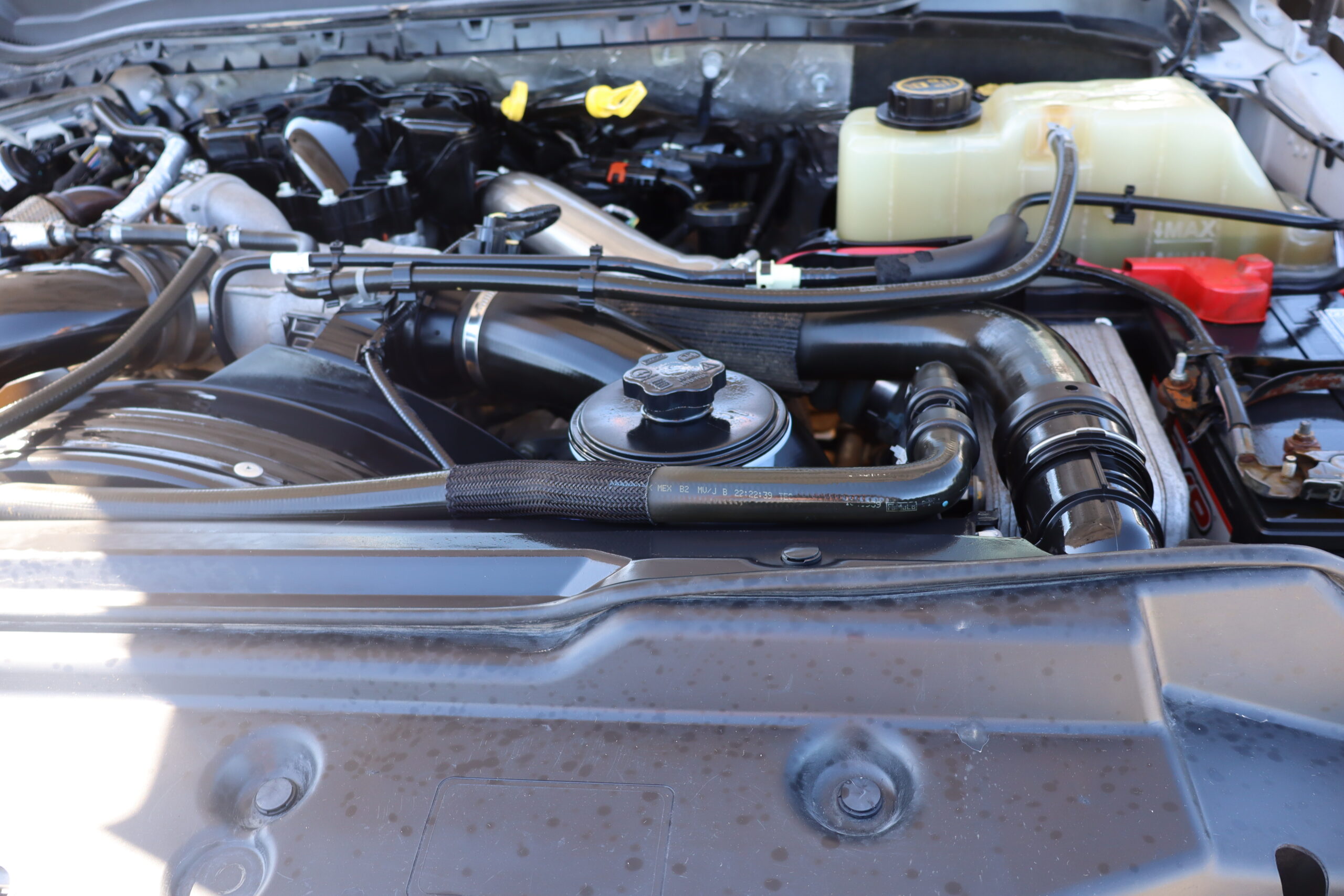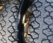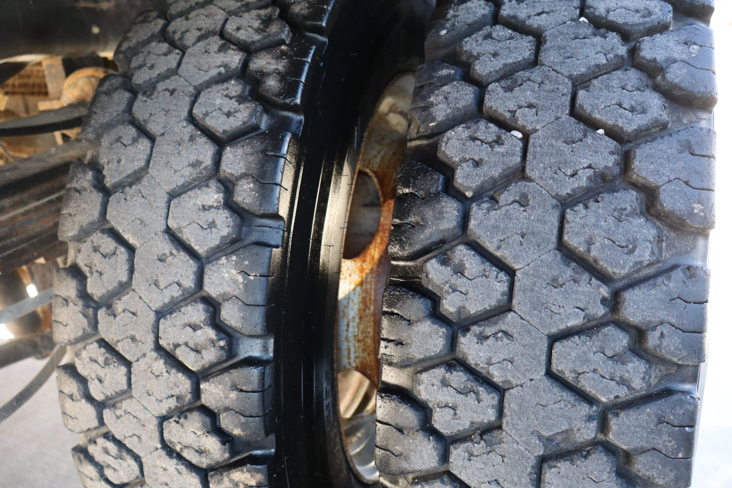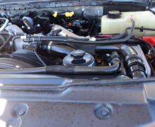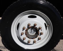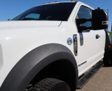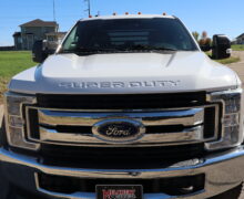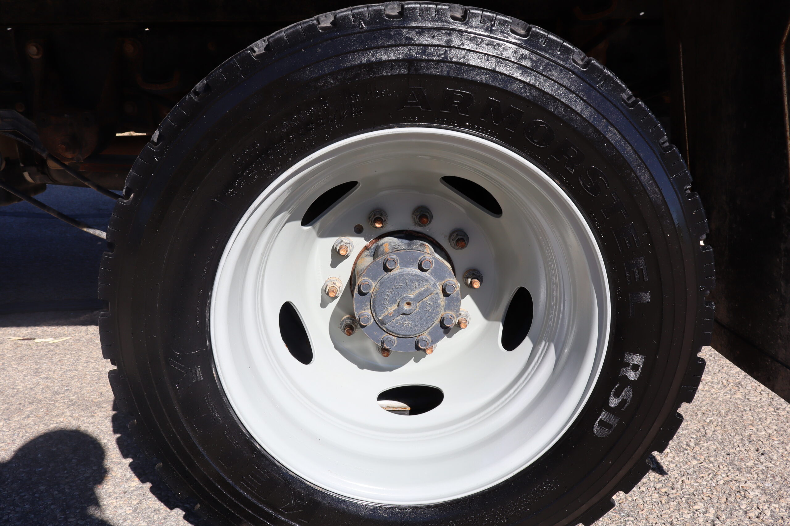 Motor is a 6.7L Power Stroke Turbo, 6-speed automatic transmission, 4WD, 4.88 axle ratio, 19.5″ Factory Gray Steel wheels with 225/70R19.5 HDR Range G tires.