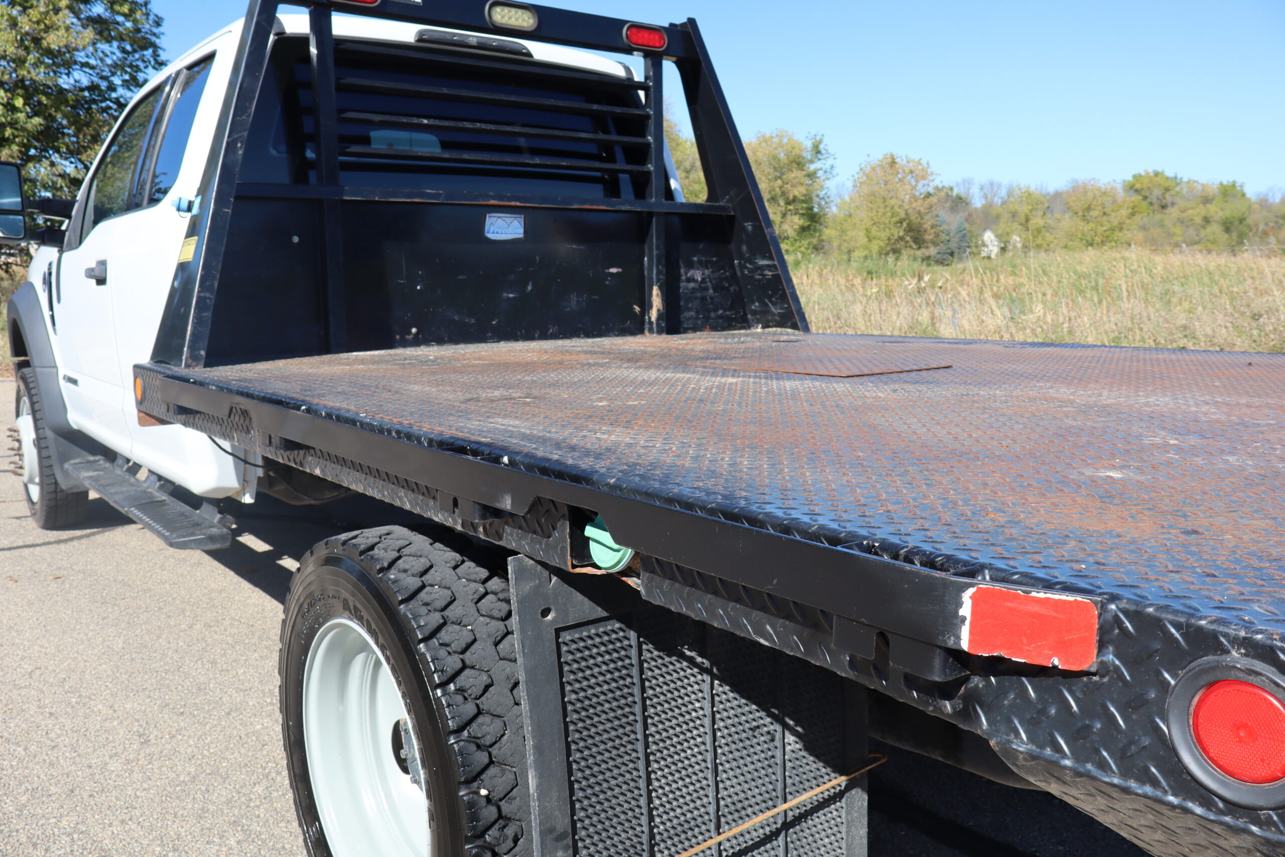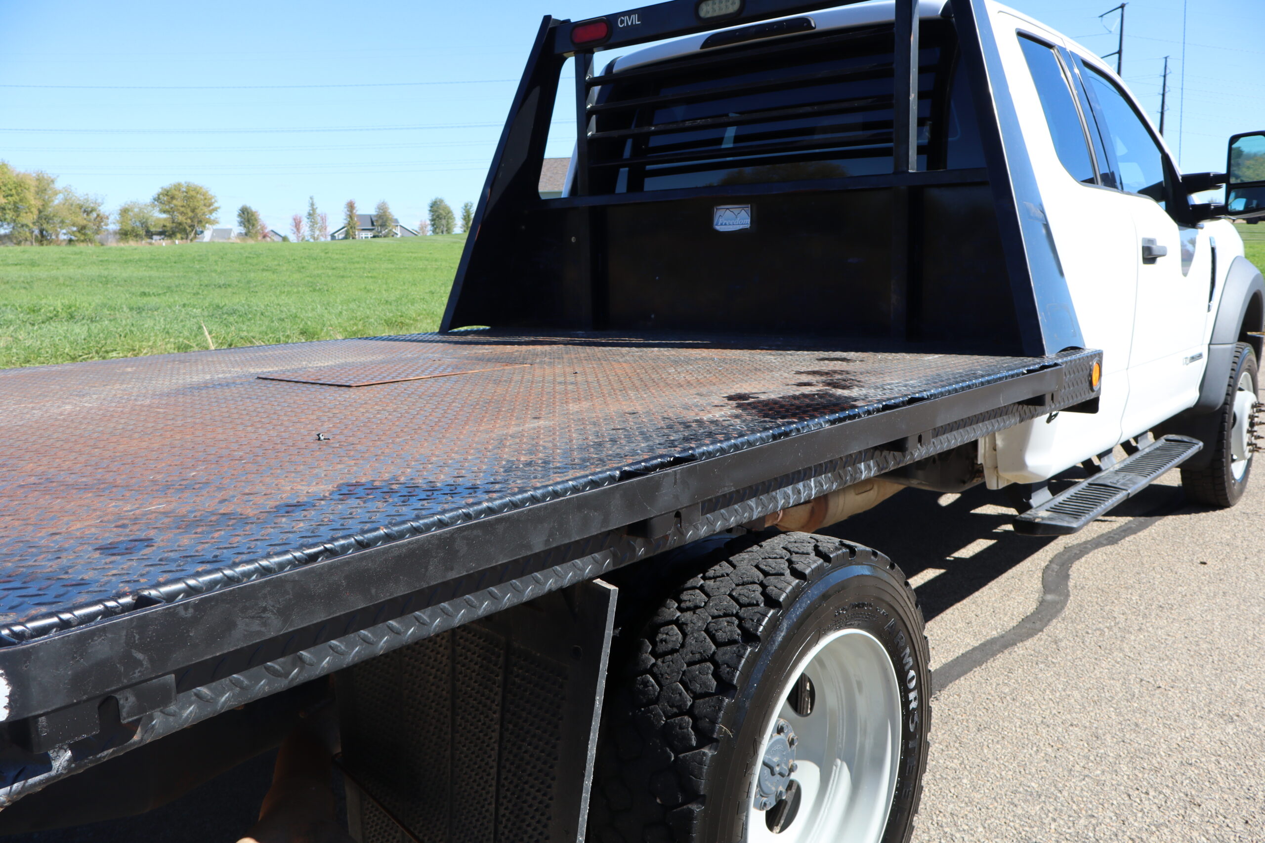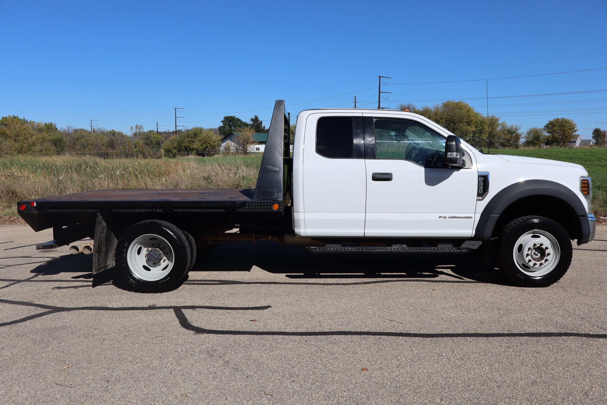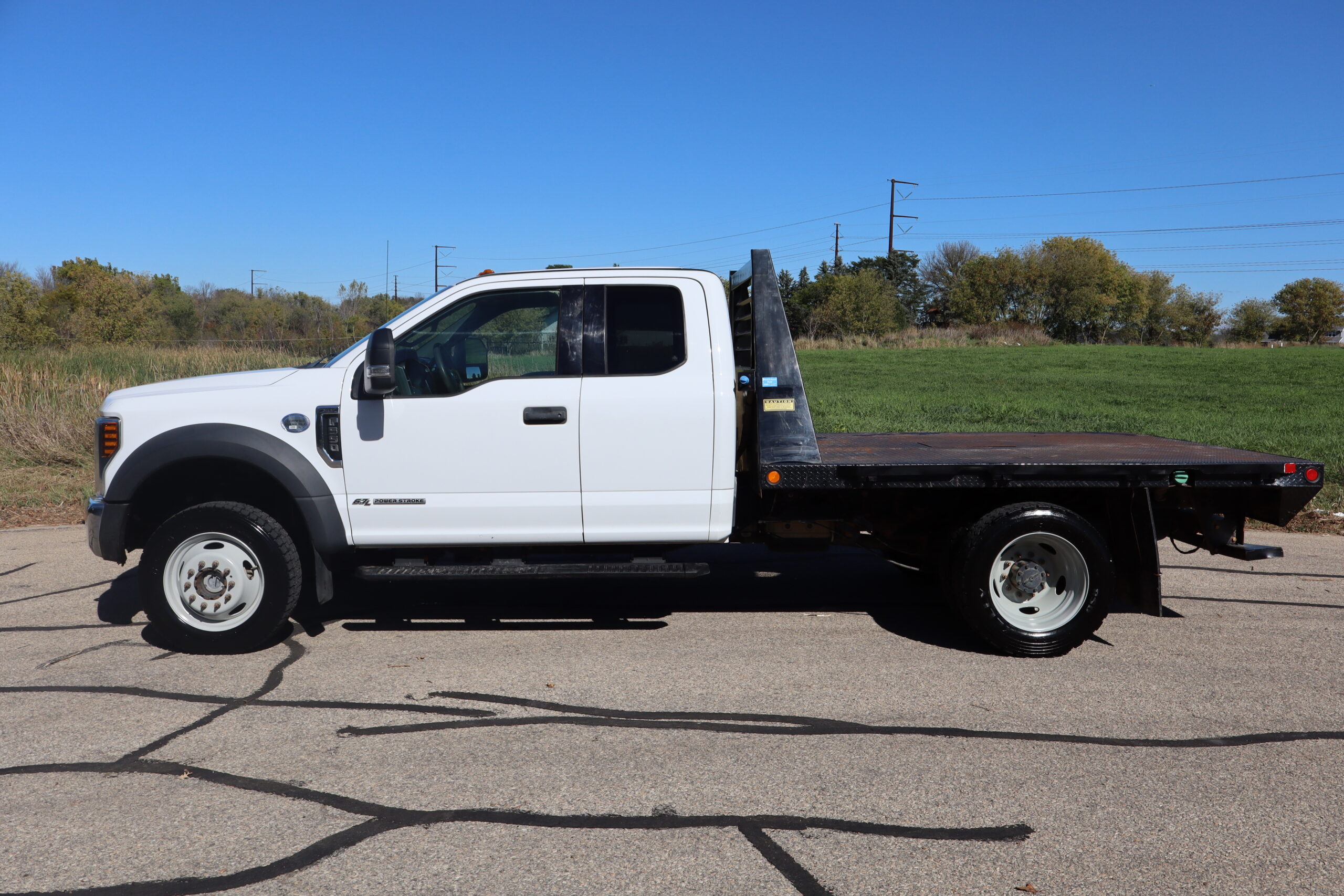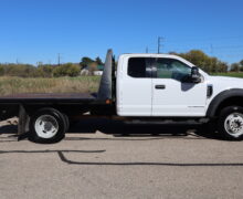 1FD0X5HTGKED962822019 FORD F550 EXT CAB, CHASSIE, XLT, DRW, 6.7L, GAS, 6-SPEED AUTOMATIC TRANSMISSION, 4WD, 168″ WB, 9′-6″ FREEDOM FLAT BED, 60″ CAB TO AXLE, PAYLOAD PLUS, SNOW PLOW PREP, TRAILER TOW PACKAGE, 19,500 GVW, 19.5″ FACTORY GRAY STEEL WHEELS, CLEAN WELL MAINTAINED OWNER TRUCK WITH ONLY 32,221 MILES AND A CLEAN CAR FAX.