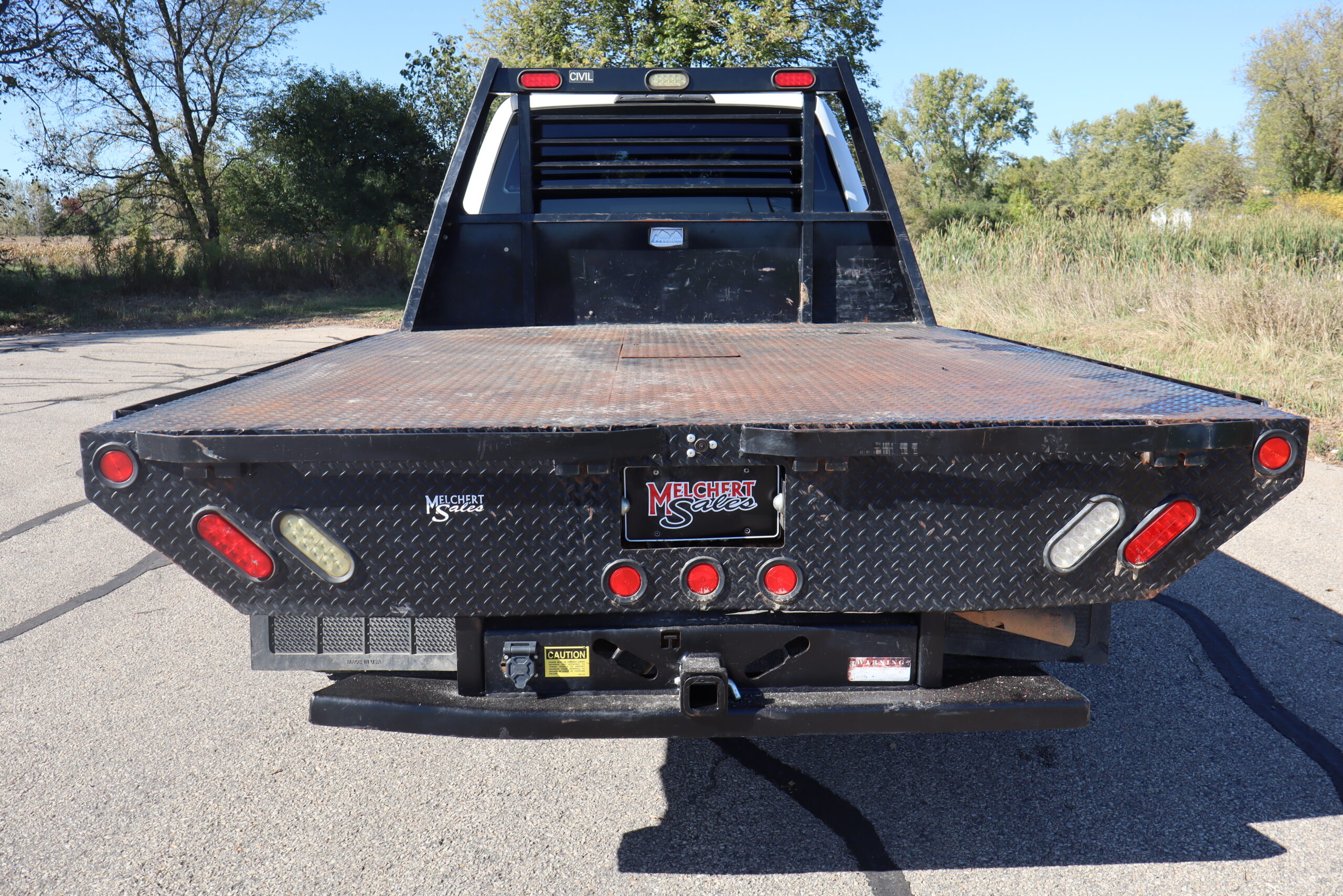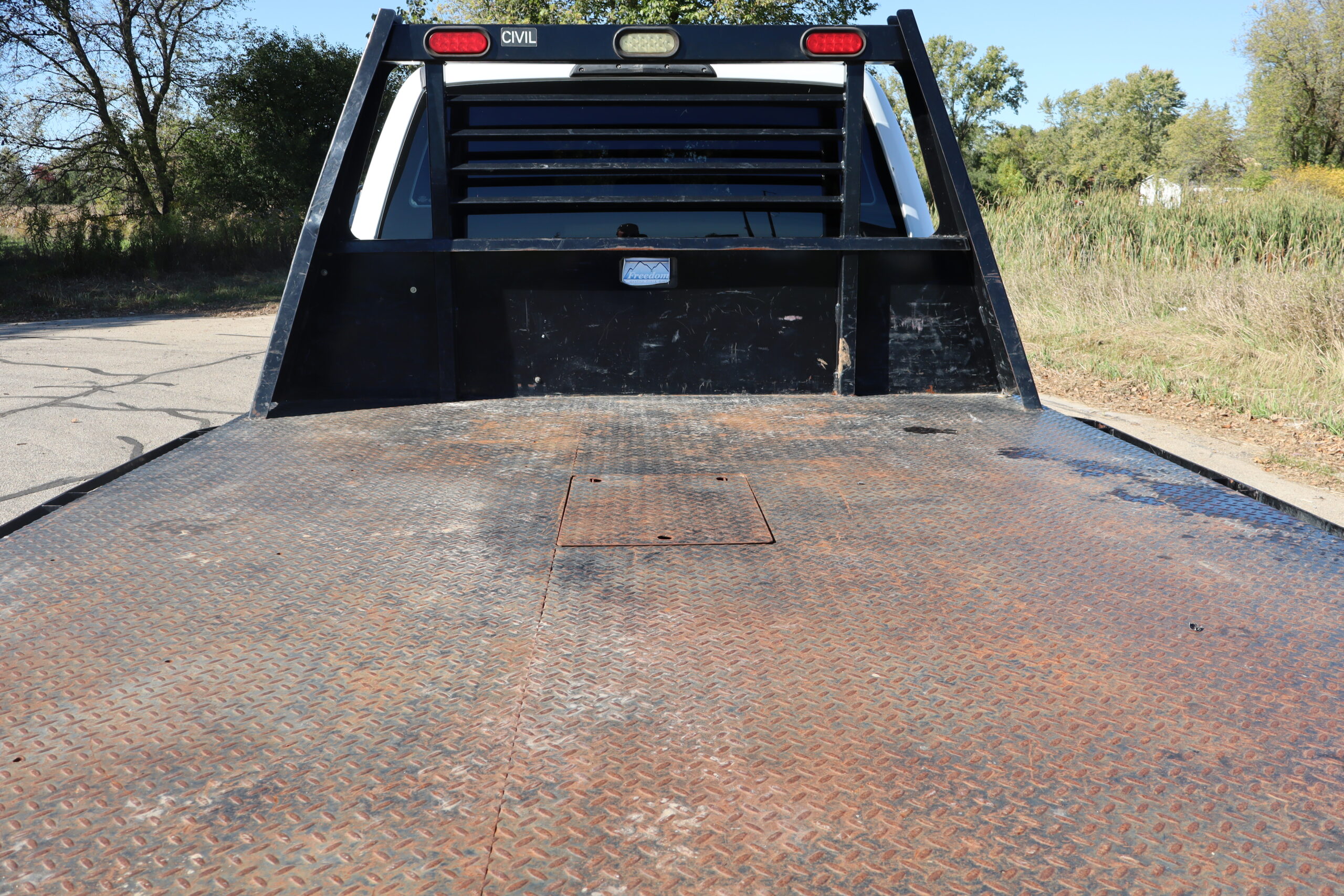 EXTRAS: 9′-6″-8′ Freedom Diamond plate steel bed with goose neck ball.