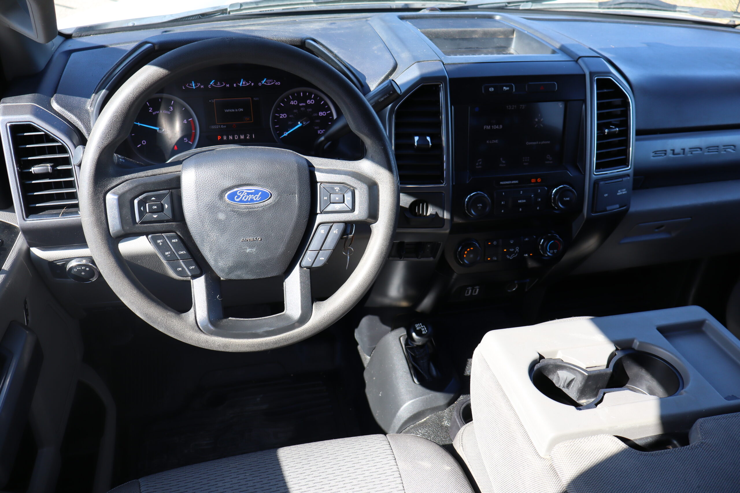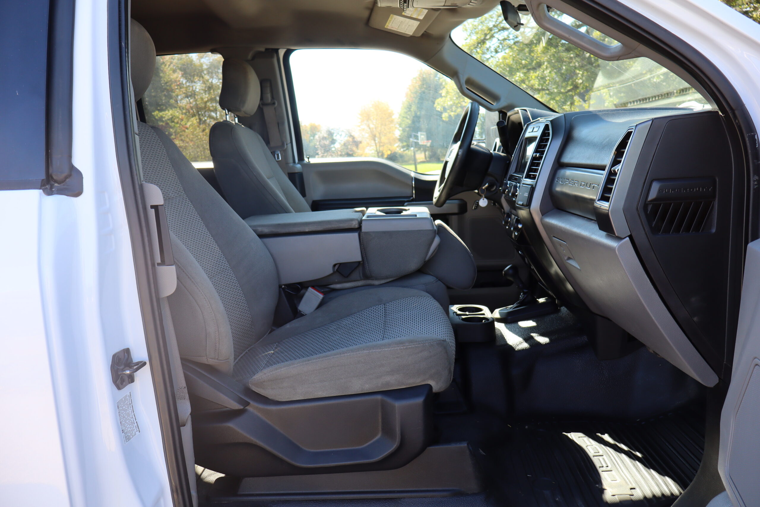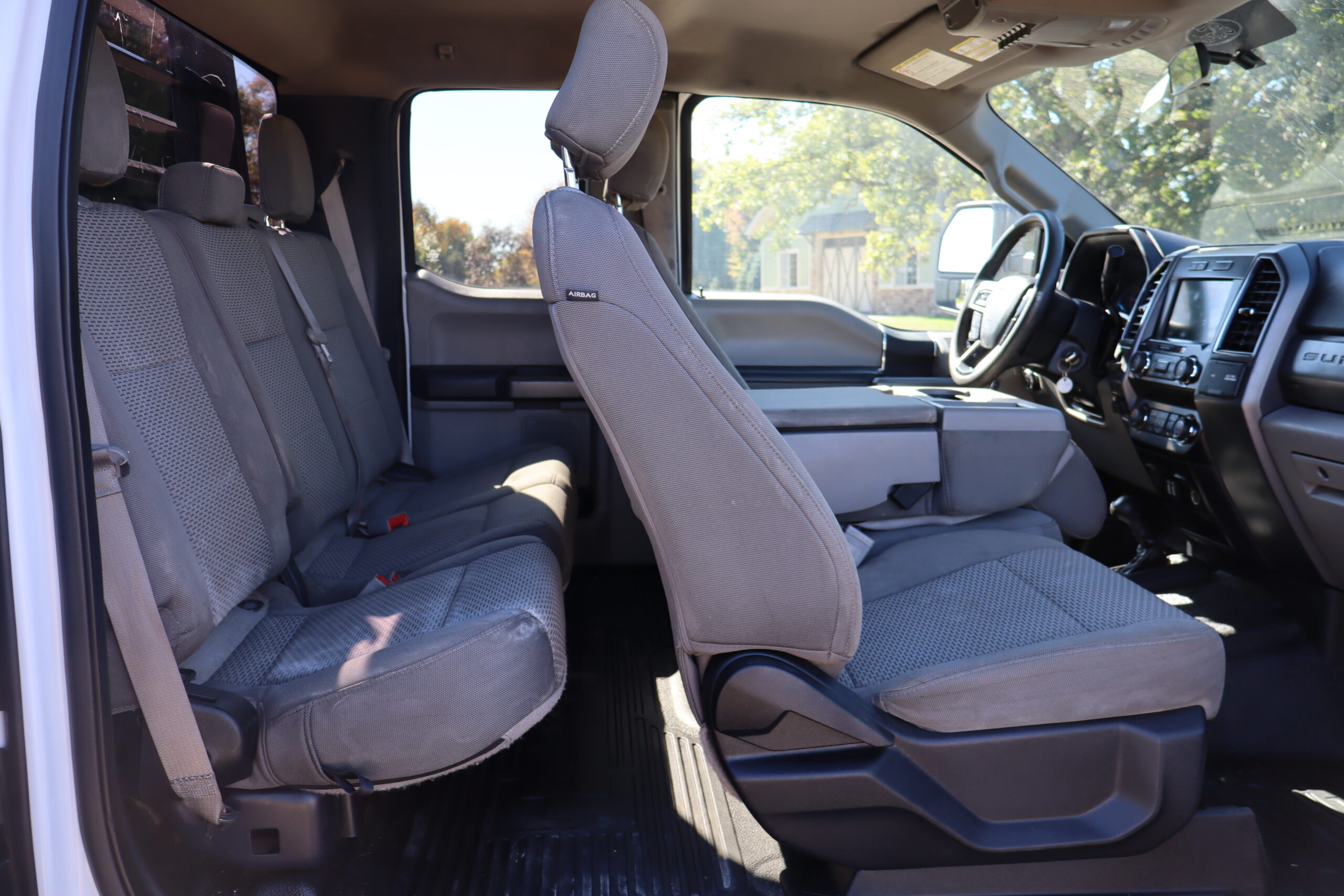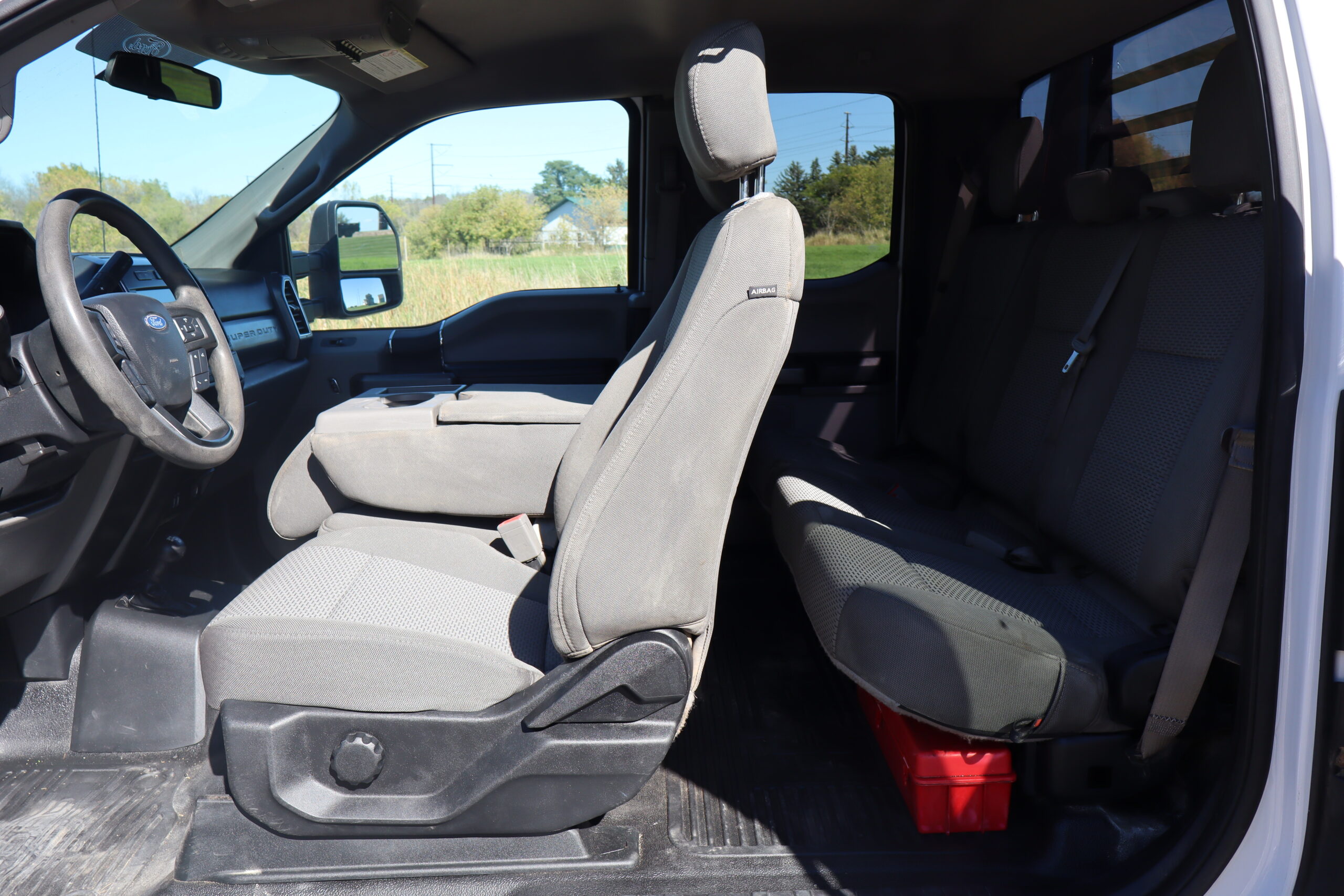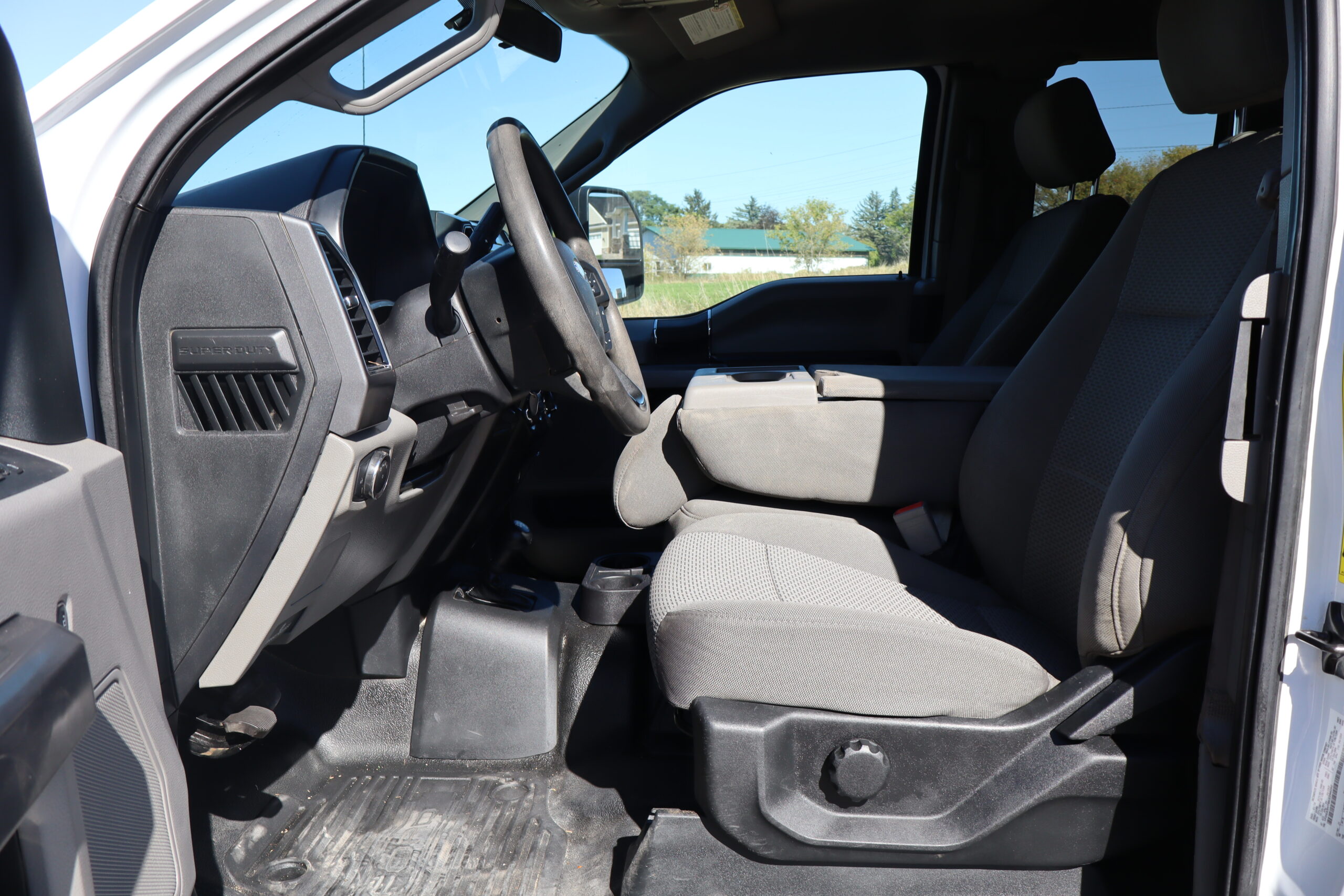 Exterior is Oxford White, Interior is Medium Earth Gray cloth, 40/20/40 seating in front with folding arm rest with dual storage compartments, 60/40 rear folding bench, 8″ touch screen with SYNC 3, air conditioning, AM/FM stereo, Sirius XM ready, 110v outlet, multi-plug power point, driver’s information center, Bluetooth capabilities, multi-function steering wheel controls, compass/temperature display in dash, day/night rear view mirror, remote entry, side air bags, power/heated extendable tow mirrors, cab clearance lights, integrated brake controller, towing package, trailer wiring, up-fitter switches, black 6″ step sides, snow plow prep and payload plus package.