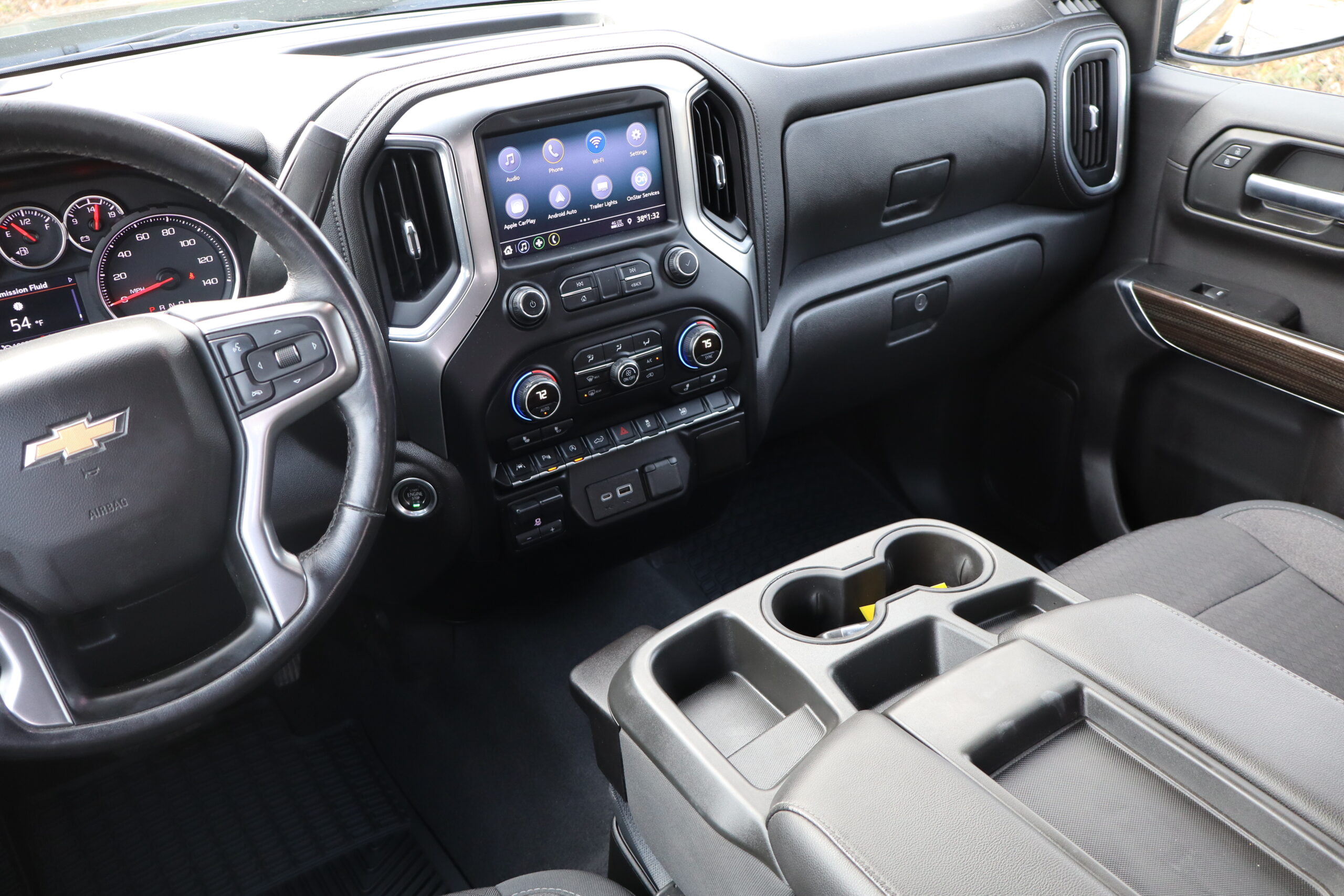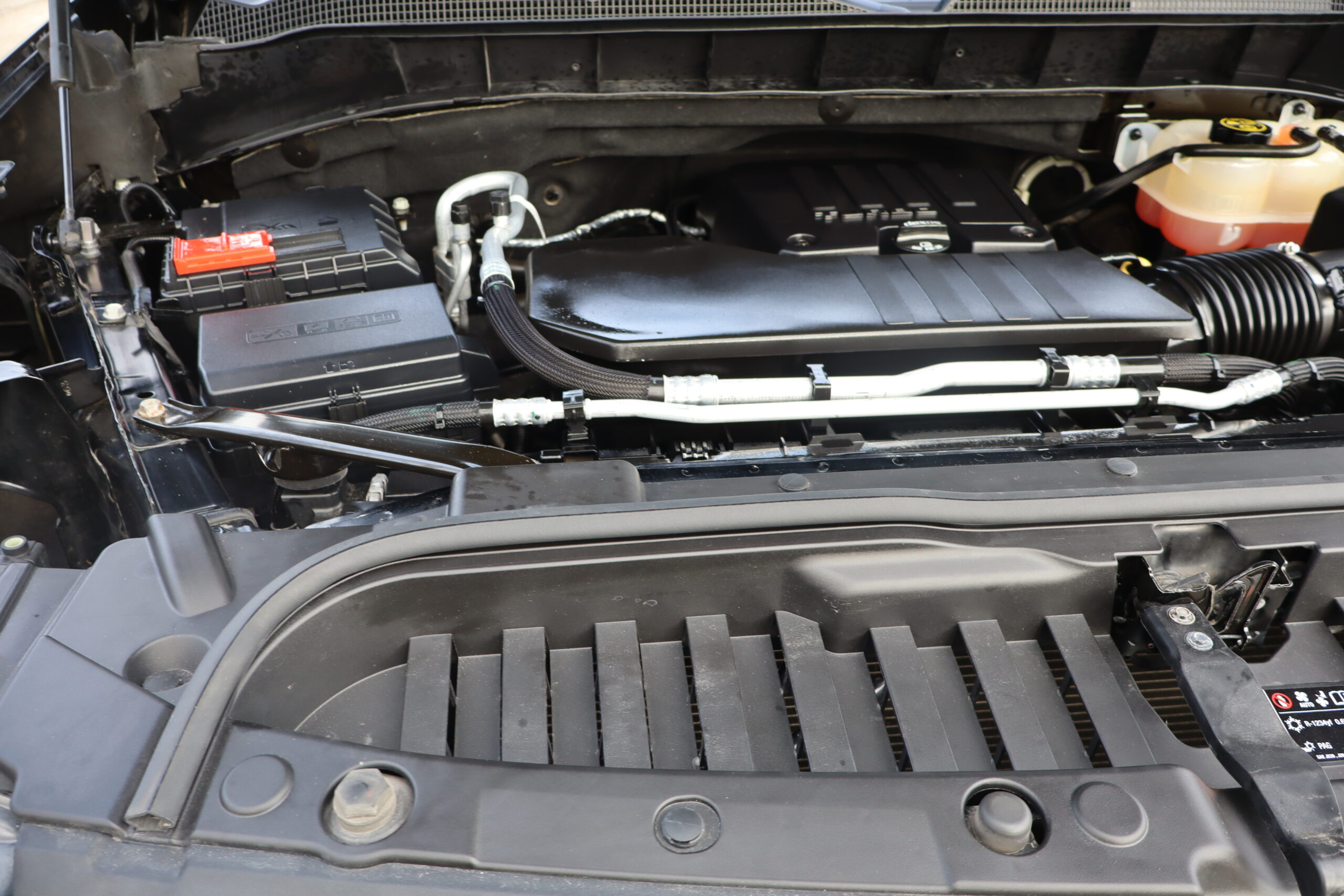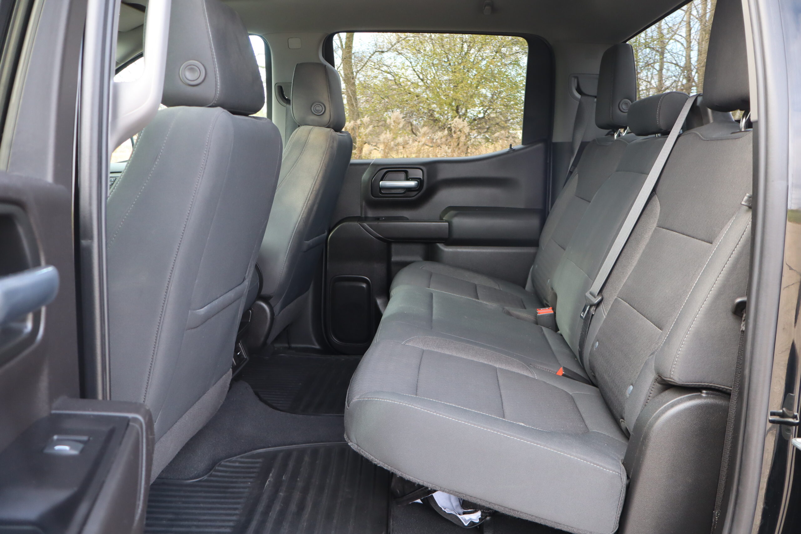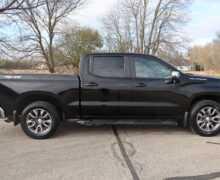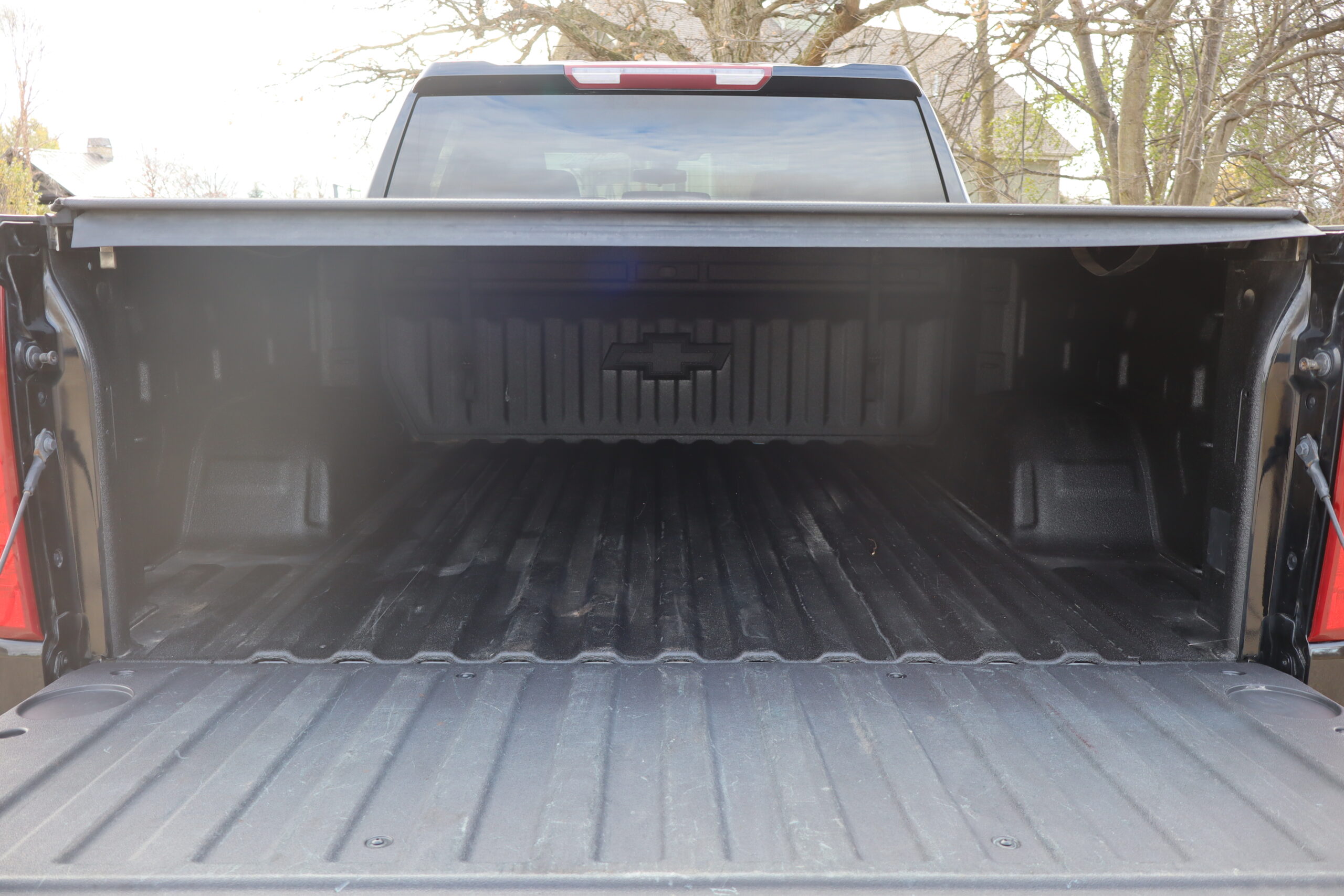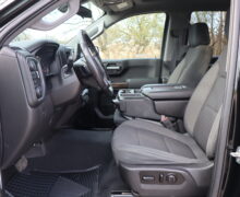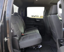 Exterior is Black, Interior is Jet Black cloth, heated 40/20/40 driver’s seat in front with folding center console with locking storage, 60/40 split folding bench in rear, 8-way power driver’s seat with power lumbar, traction control, power windows and power door locks, heated/tilt and telescoping wheel, air conditioning, electric rear window defrost, digital dual zone climate control, dual glove boxes, 8″ color touch screen, navigation ready, AM/FM stereo, XM satellite radio ready, OnStar, Apple Play and Android Auto, back up camera, multi-function steering wheel controls, compass/temperature/mileage display, safety package 1 and 2 front and rear parking assist, lane departure, automatic braking forward collision alert, adaptive cruise, remote entry, remote start, day/night rear view mirror, dark tinted glass, driver’s information center, hill descent control, locking tailgate, remote tailgate, chrome power/heated folding mirrors, LED bed lighting, 4″ black step tubes an trailering package and receiver.