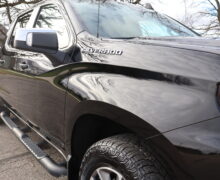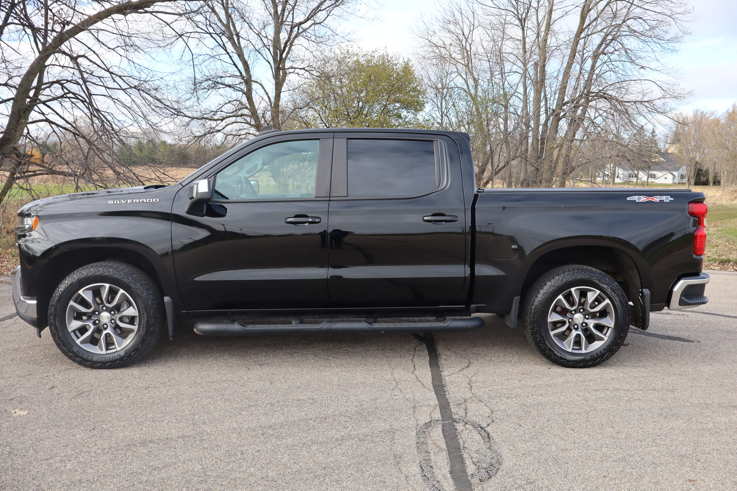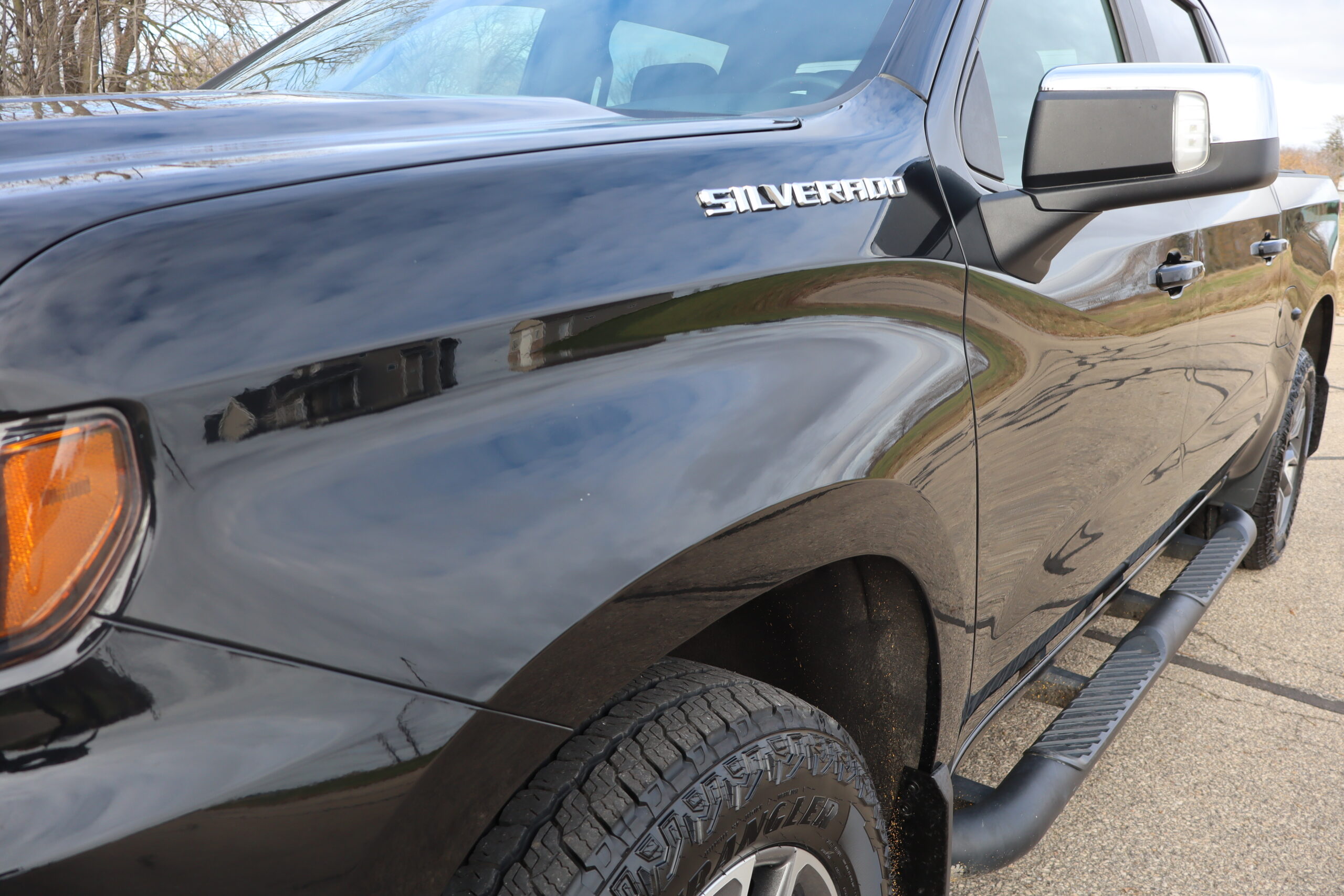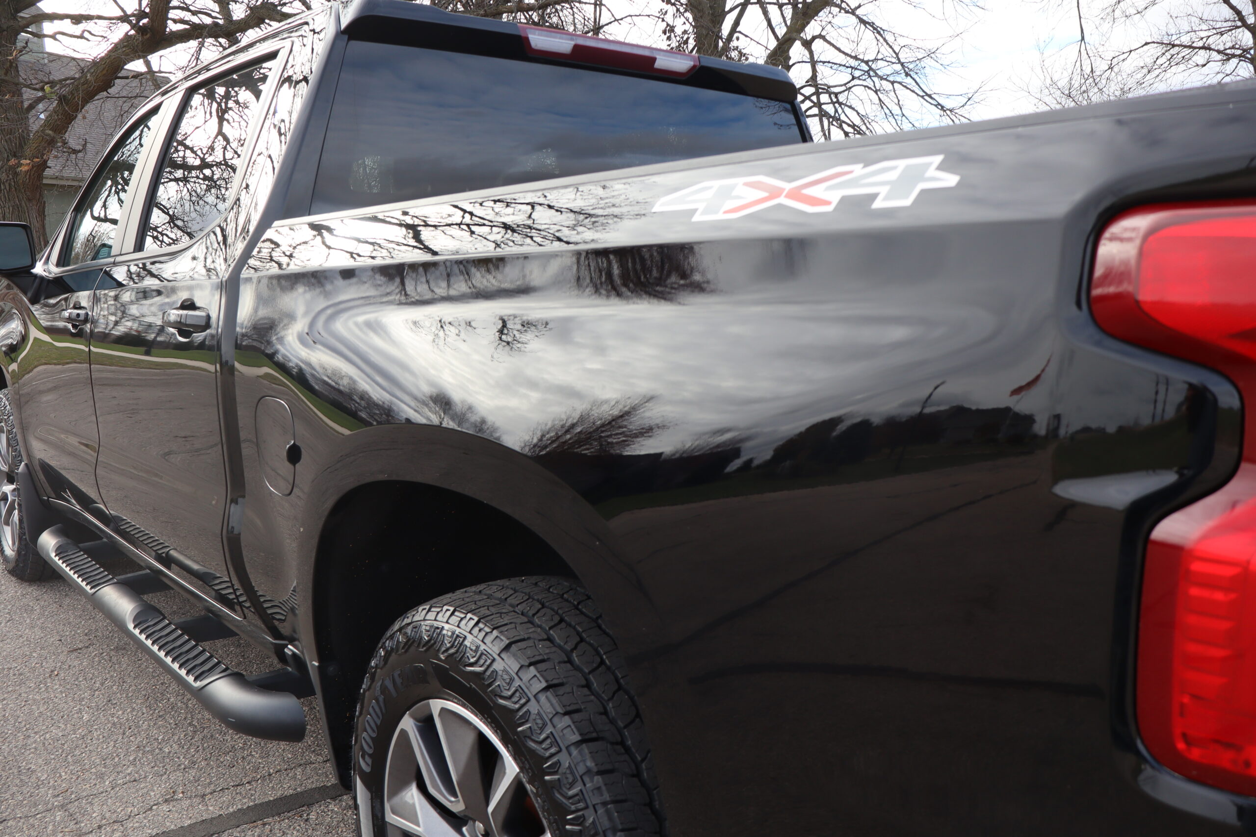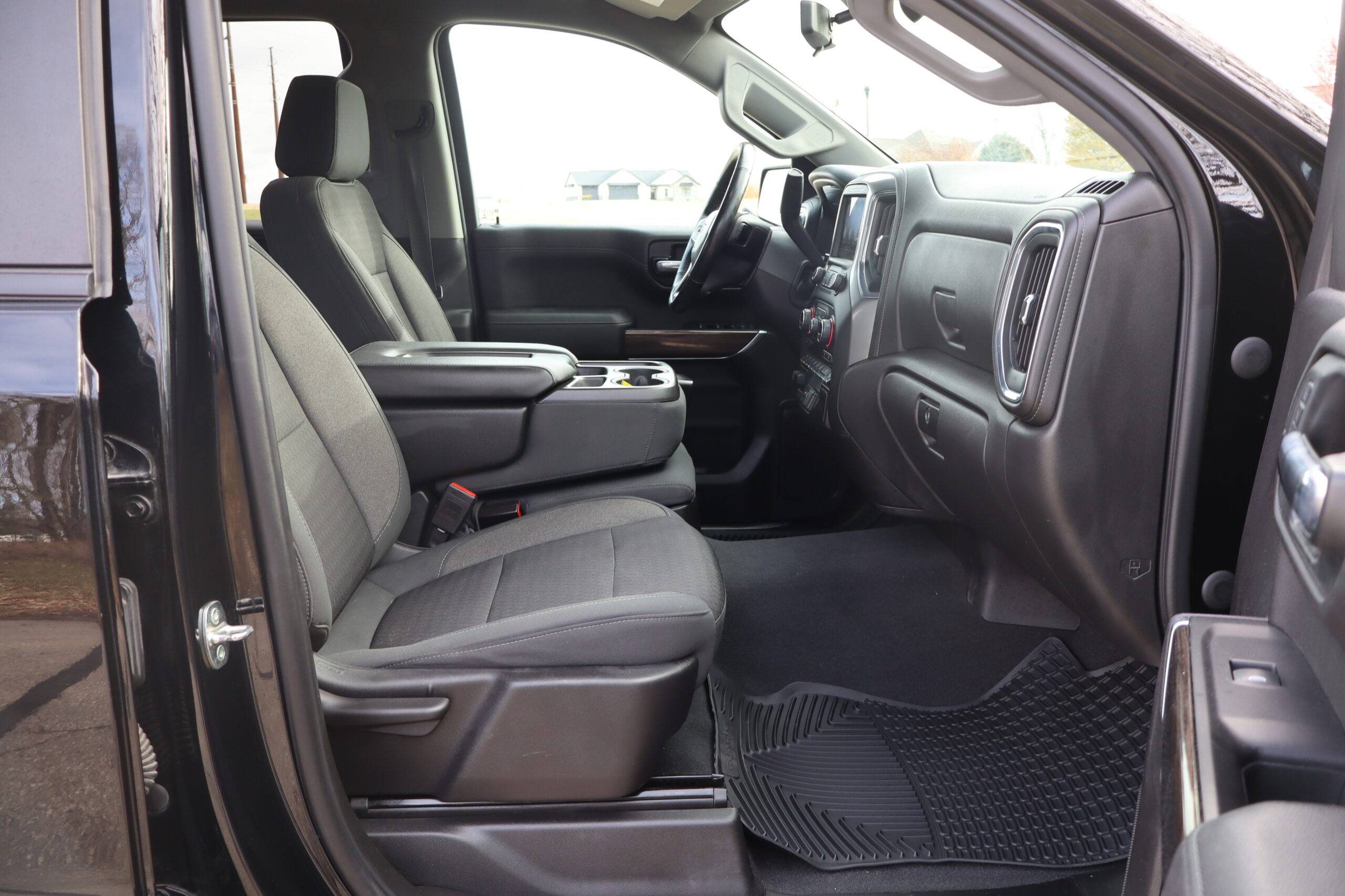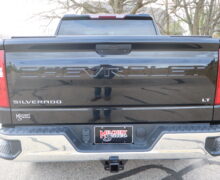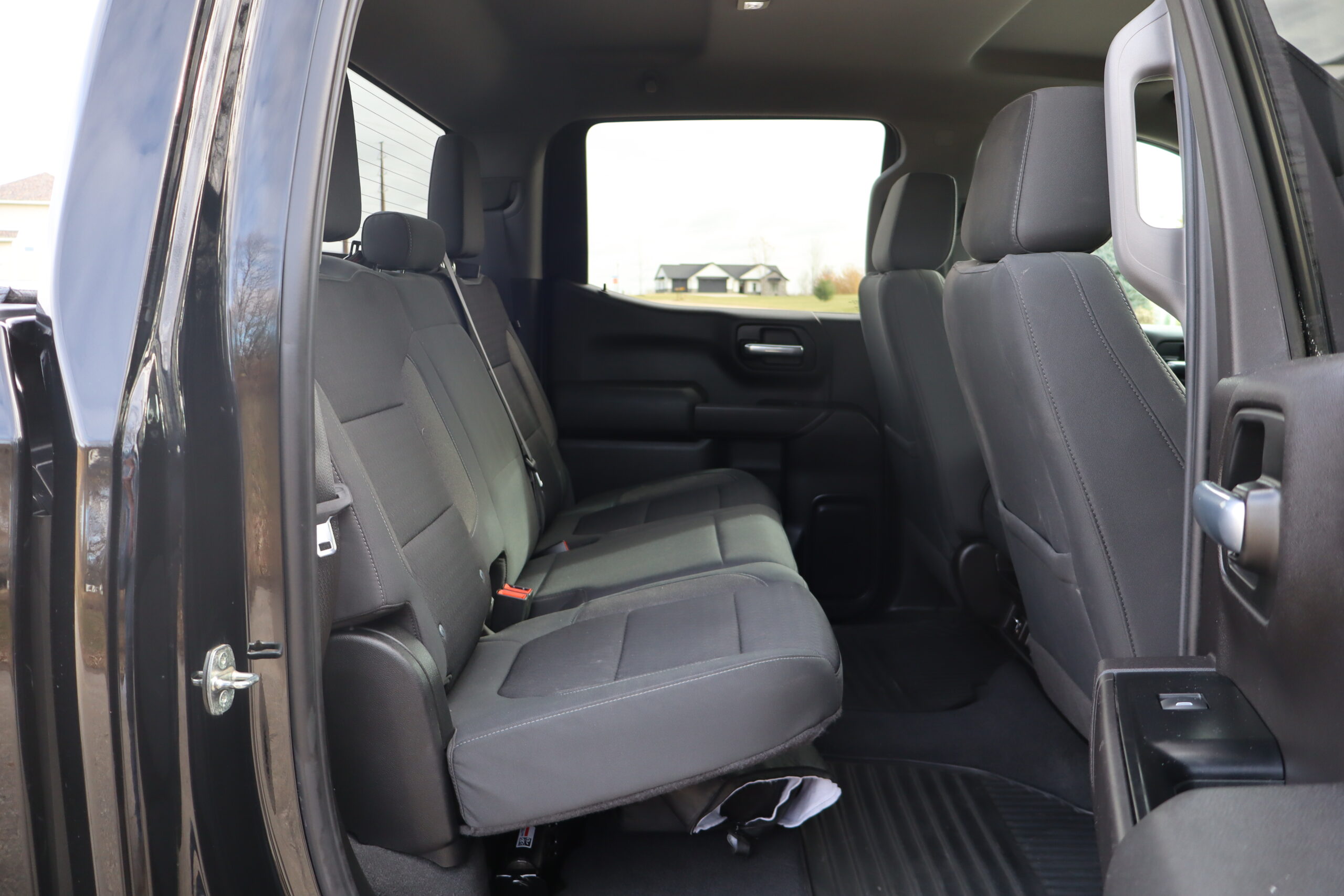 Exterior is Black, Interior is Jet Black cloth, heated 40/20/40 driver’s seat in front with folding center console with locking storage, 60/40 split folding bench in rear, 8-way power driver’s seat with power lumbar, traction control, power windows and power door locks, heated/tilt and telescoping wheel, air conditioning, electric rear window defrost, digital dual zone climate control, dual glove boxes, 8″ color touch screen, navigation ready, AM/FM stereo, XM satellite radio ready, OnStar, Apple Play and Android Auto, back up camera, multi-function steering wheel controls, compass/temperature/mileage display, safety package 1 and 2 front and rear parking assist, lane departure, automatic braking forward collision alert, adaptive cruise, remote entry, remote start, day/night rear view mirror, dark tinted glass, driver’s information center, hill descent control, locking tailgate, remote tailgate, chrome power/heated folding mirrors, LED bed lighting, 4″ black step tubes an trailering package and receiver.
