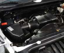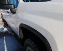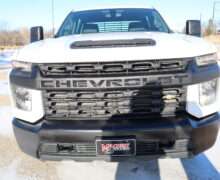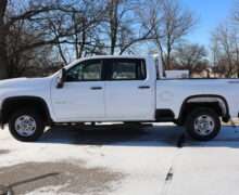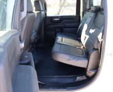 Motor is a 6.6L gas, 6-speed automatic transmission, push button 4WD, 3.73 axle ratio, 10,450lb GVW package, 17″ Factory Gray Steel wheels with LT245/75R17 Yokohama Geolander A/T Range E tires.