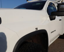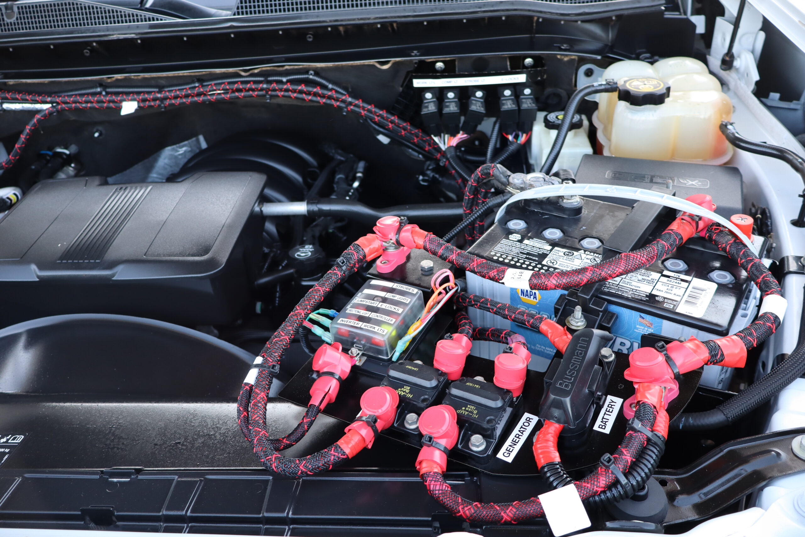 Motor is a 6.6L gas, 6-speed automatic transmission, RWD, 3.73 axle ratio, 10,750 GVW package, 18″ Factory Gray Alloy wheels with New LT275/70R18 Nitto Terra Grappler ATG3 Range E tires.