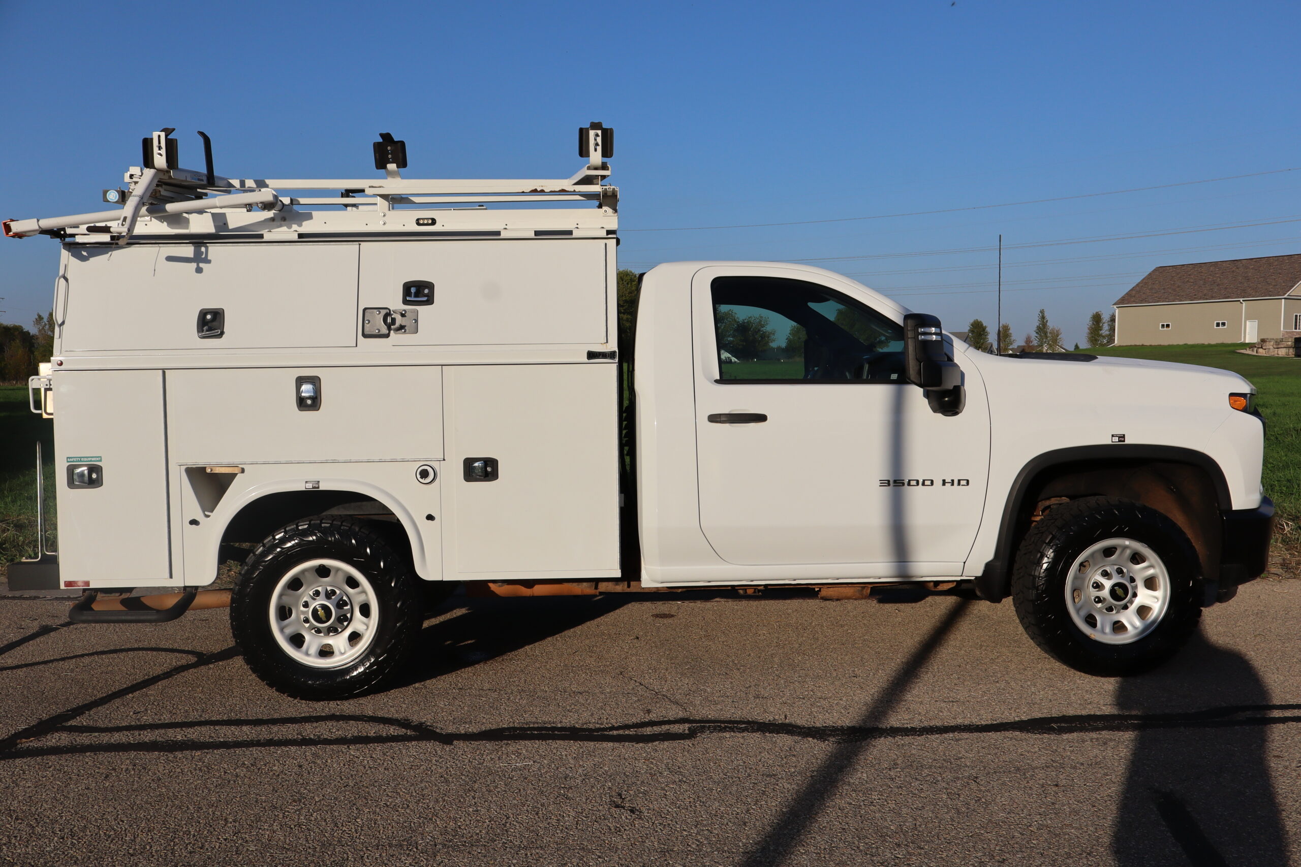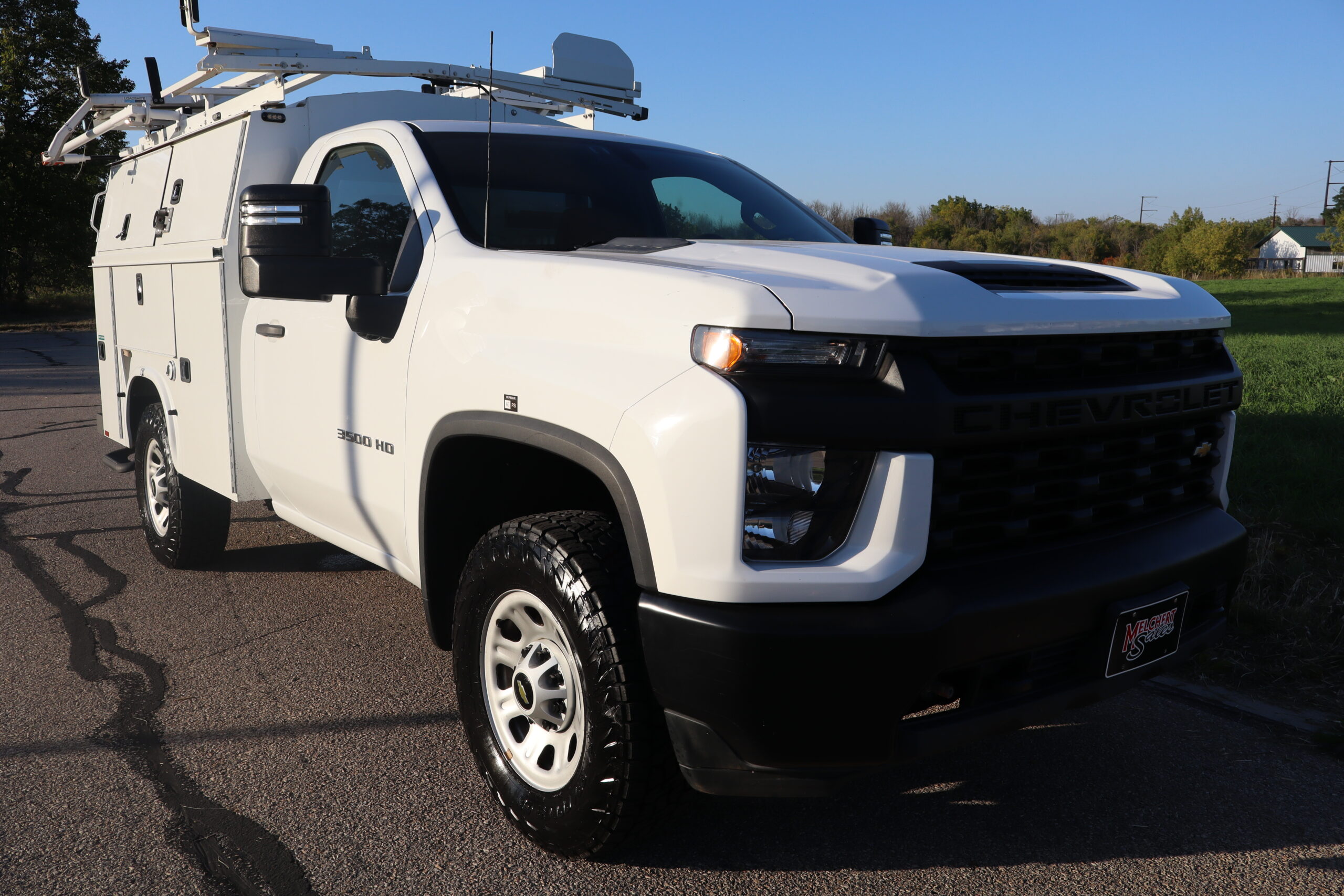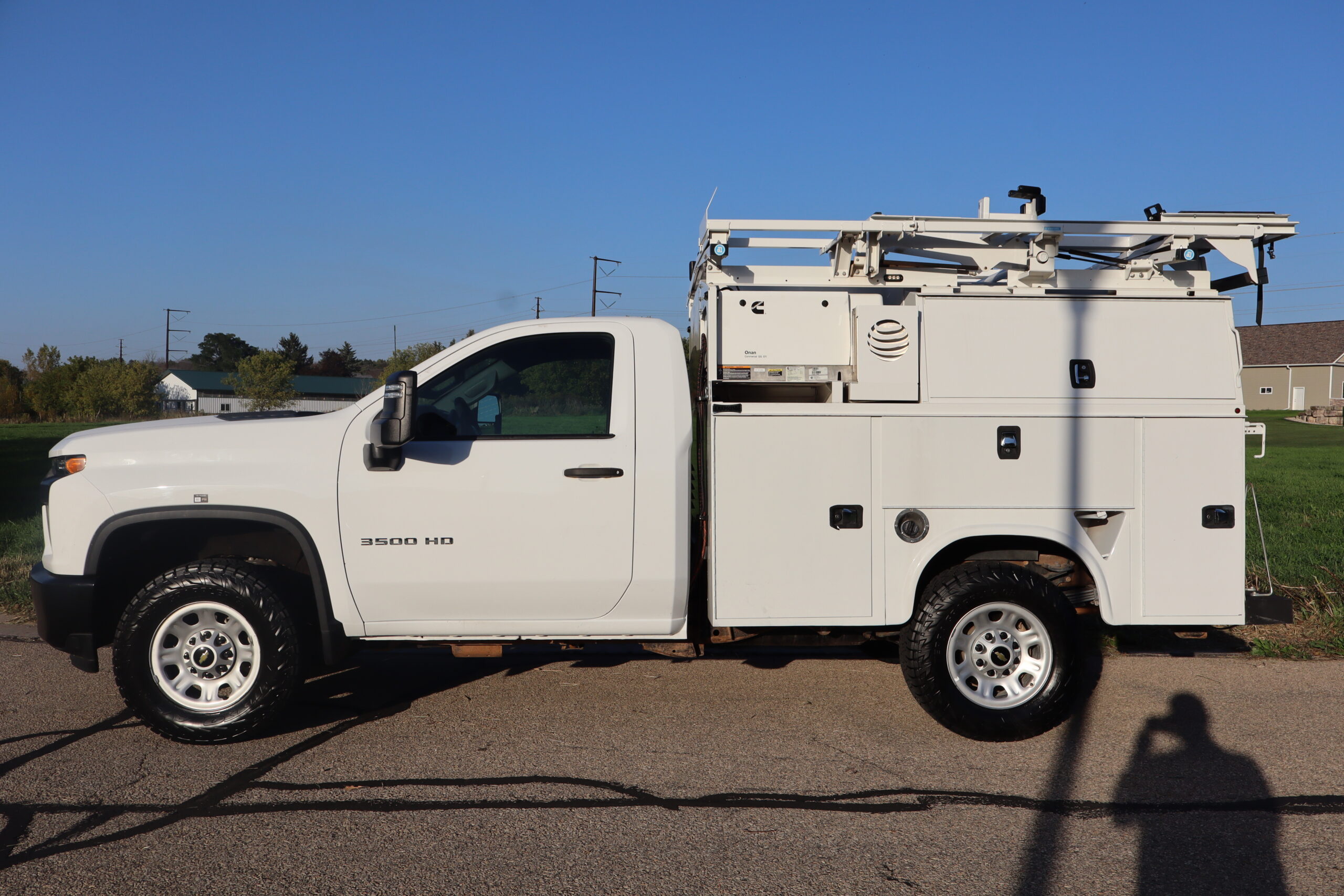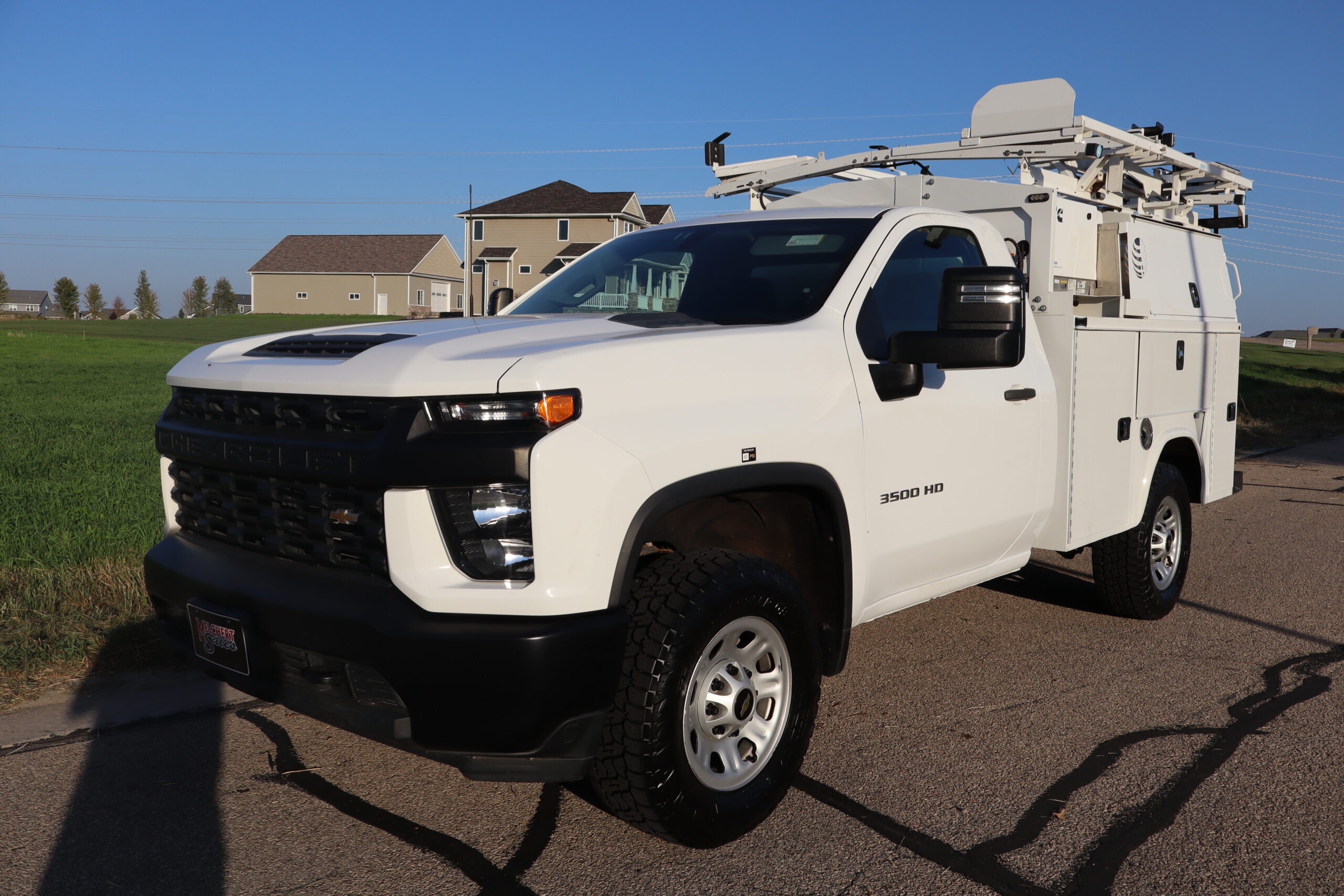 1GB3WRE7XLF2990102020 CHEVROLET 3500HD, REG, CAB, CC, WT, FLEET CONVIENCE PACKAGE, BACK UP CAMERA, NEW NITTO TIRES, KNAPHEIDE COVERED SERVICE BED WITH ADRIAN LADDER RACK, CUMMINS GENERATOR, ALTEC COMPRESSOR, C-CARGO GLIDE ROLL OUT STORAGE, THIS IS A SUPER CLEAN METICULOUSLY MAINTAINED 1 OWNER TRUCK WITH 76,153 MILES WITH A CARFAX.299010