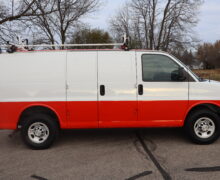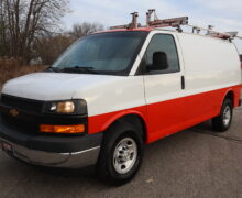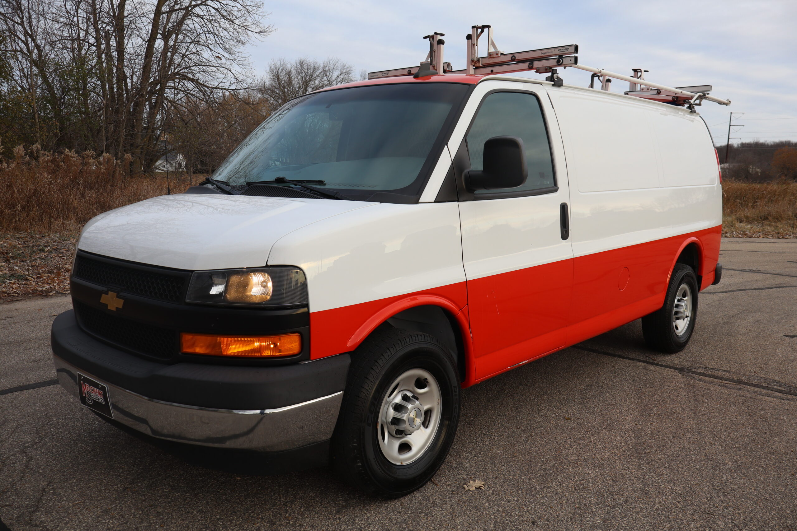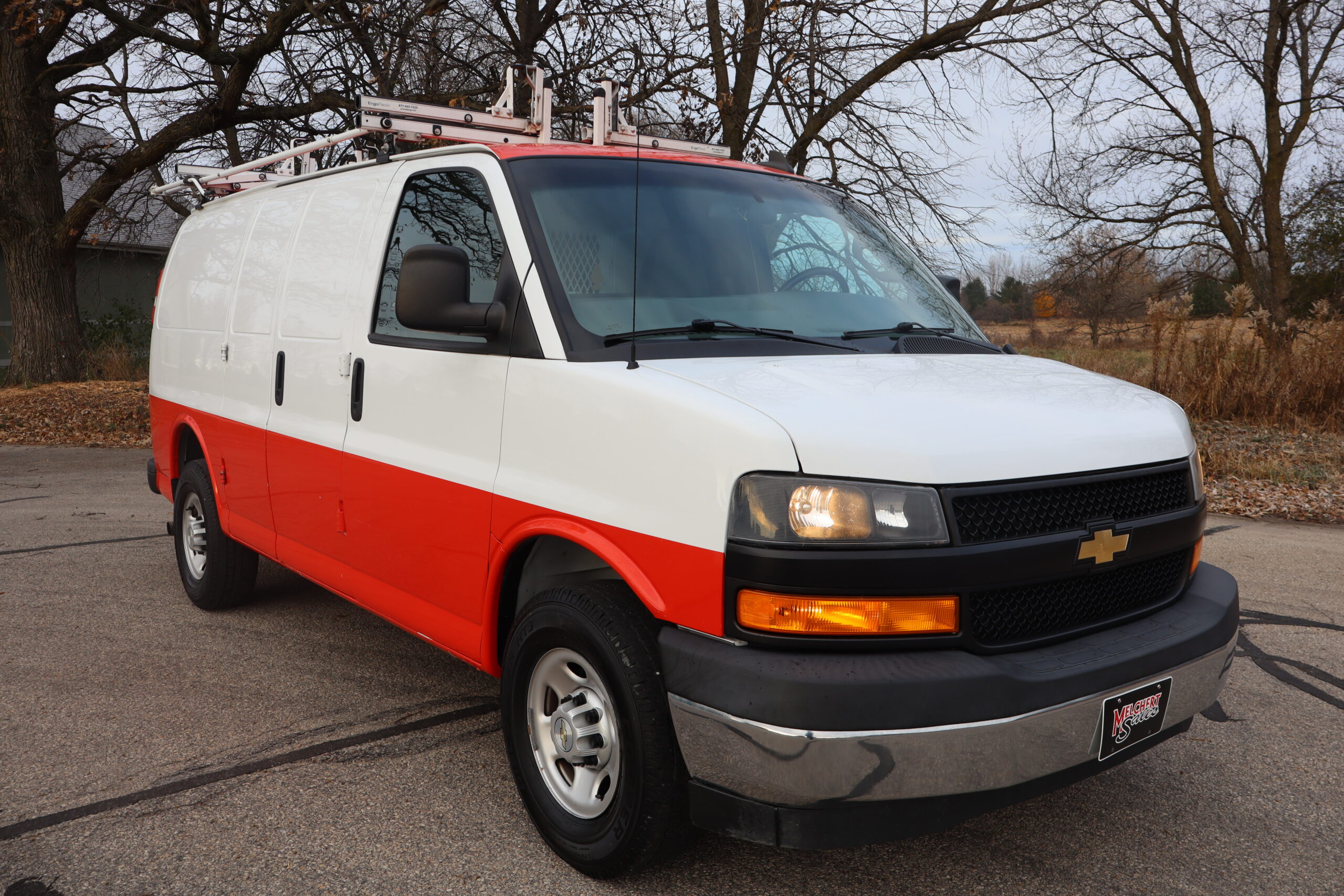 1GCZGGFG5L12355252020 CHEVROLET EXPRESS 3500 CARGO VAN, 6.0L GAS, AUTOMATIC, 16″ FACTORY WHEELS, TOW PACKAGE, POWER PACKAGE, WEATHER GUARD SHELVING, ERGO LADDER RACK, REMOTE START, SUPER CLEAN WELL MAINTAINED VAN WITH 137,798 MILES AND A GOOD CAR FAX.