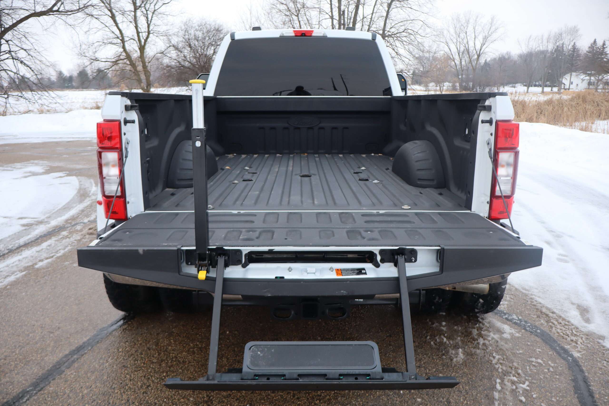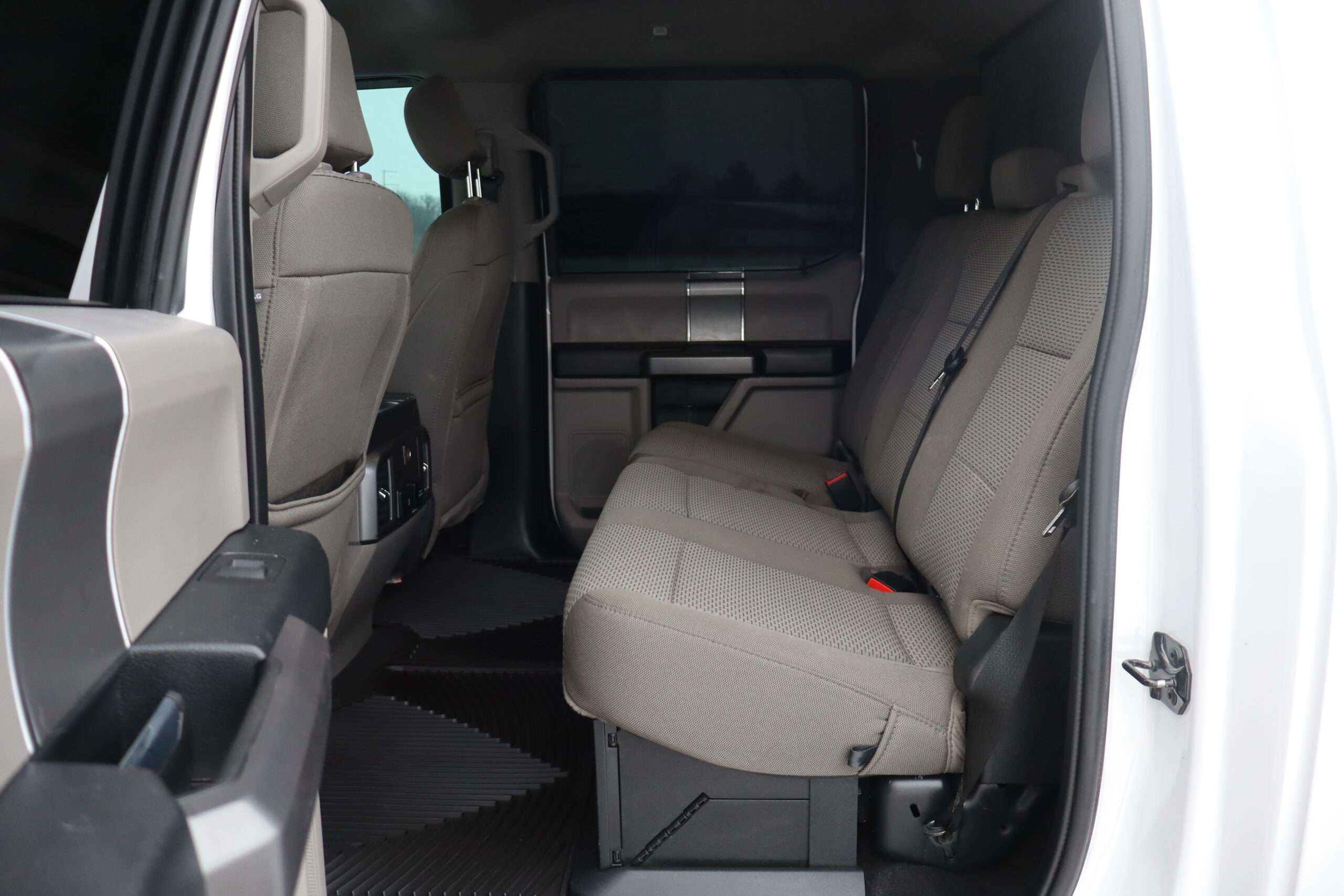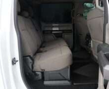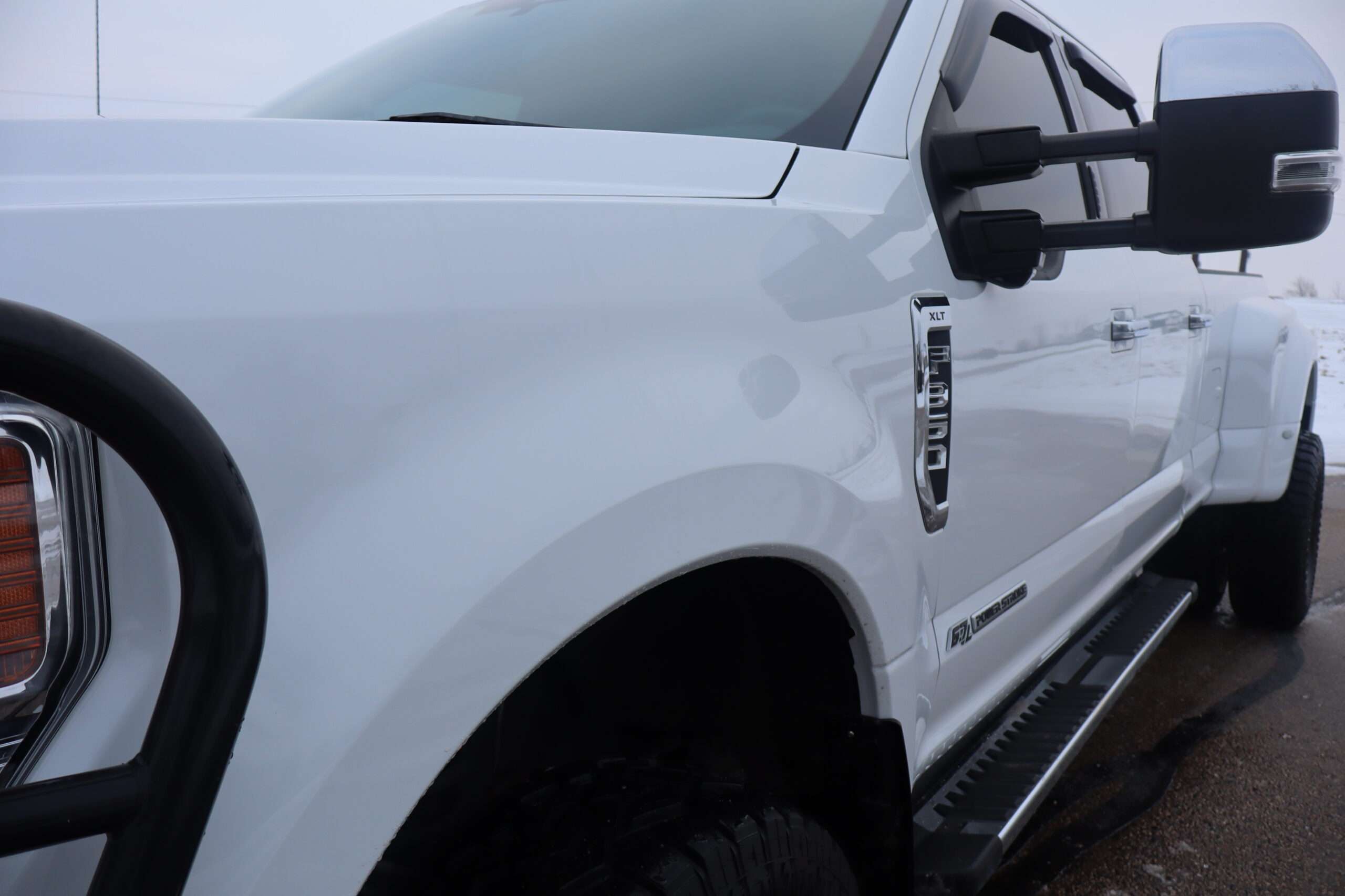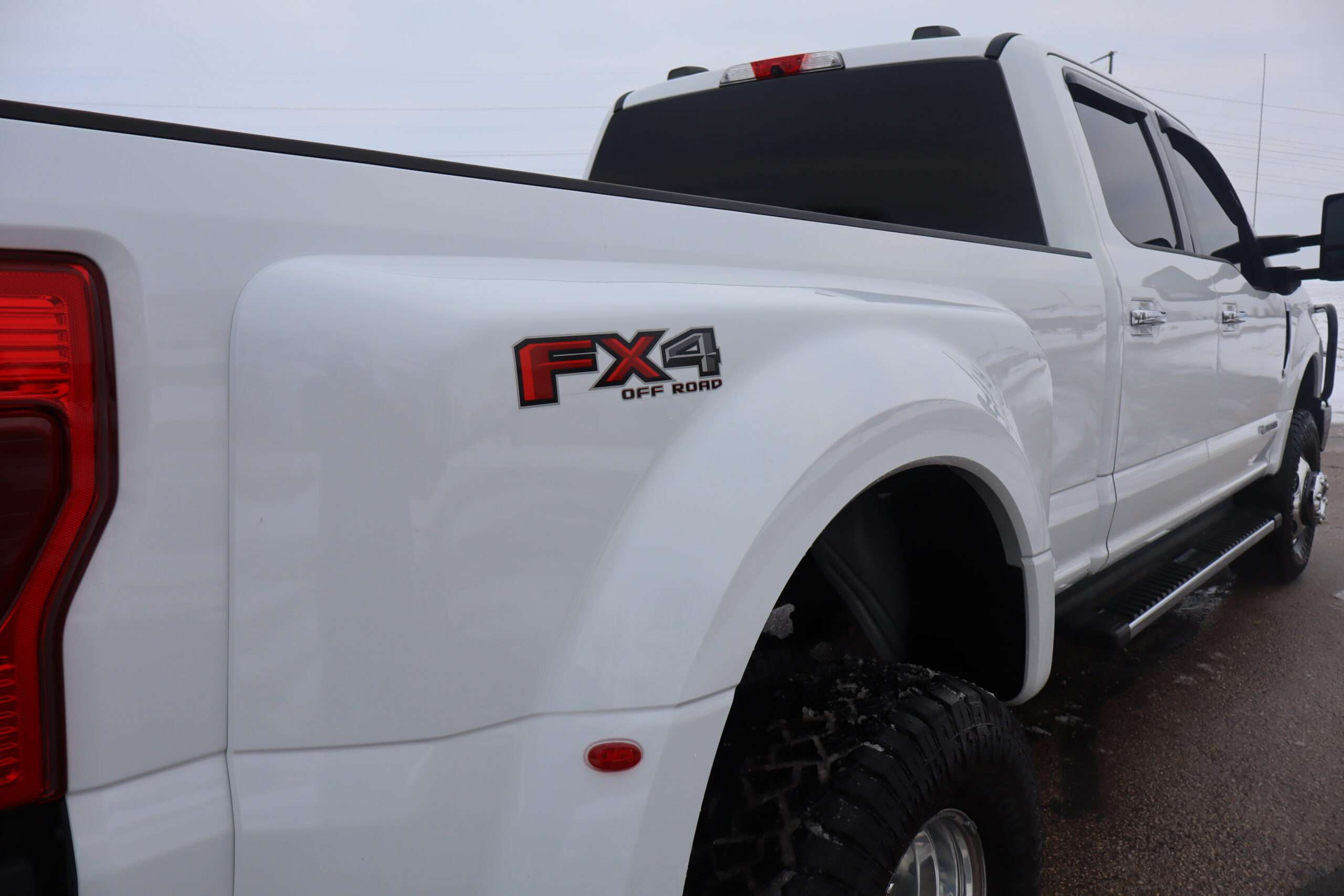 Exterior is Oxford White, Interior is Medium Earth Gray cloth, heated bucket seating in front with center console, 6-way power driver’s seat with power lumbar, 60/40 rear folding bench with under seat storage, traction control, hill start assist, electric rear glass defrost, power windows and power door locks, tilt and telescoping wheel, power adjustable pedals, cruise control, air conditioning, 8″ touch screen with navigation, AM/FM stereo, Sirius satellite radio ready, Android Auto, Apple Car Play, multi-plug 12v power point, 110v outlet, 115v bed outlet, driver’s information center, Bluetooth capabilities, SYNC III, multi-function steering wheel controls, compass/temperature/mileage display in dash, day/night rear view mirror, remote entry, side air bags, door code entry, chrome power/heated extendable folding tow mirrors with LED lighting, cab clearance lights, camper package, pro trailer back up assist, 5th wheel prep, 6″ chrome step boards, towing package with receiver, trailer wiring, factory electronic brake controller, tailgate step and up-fitter switches.
