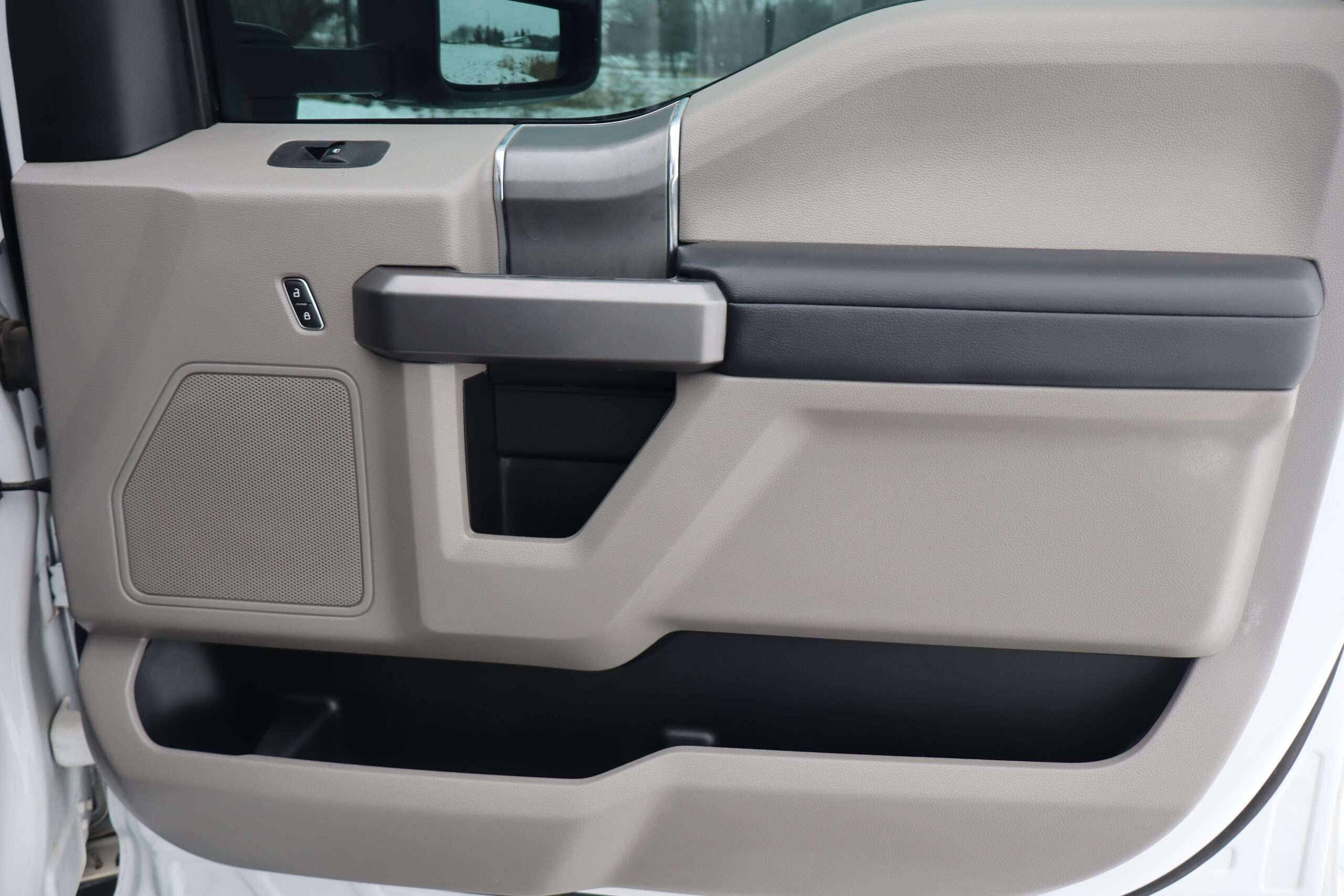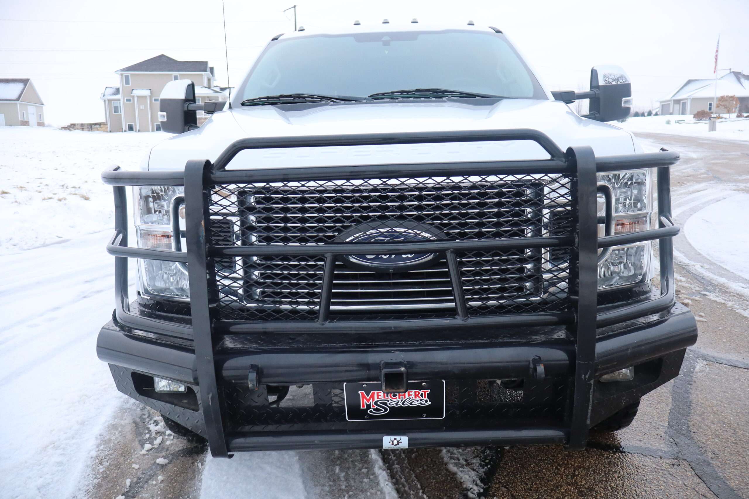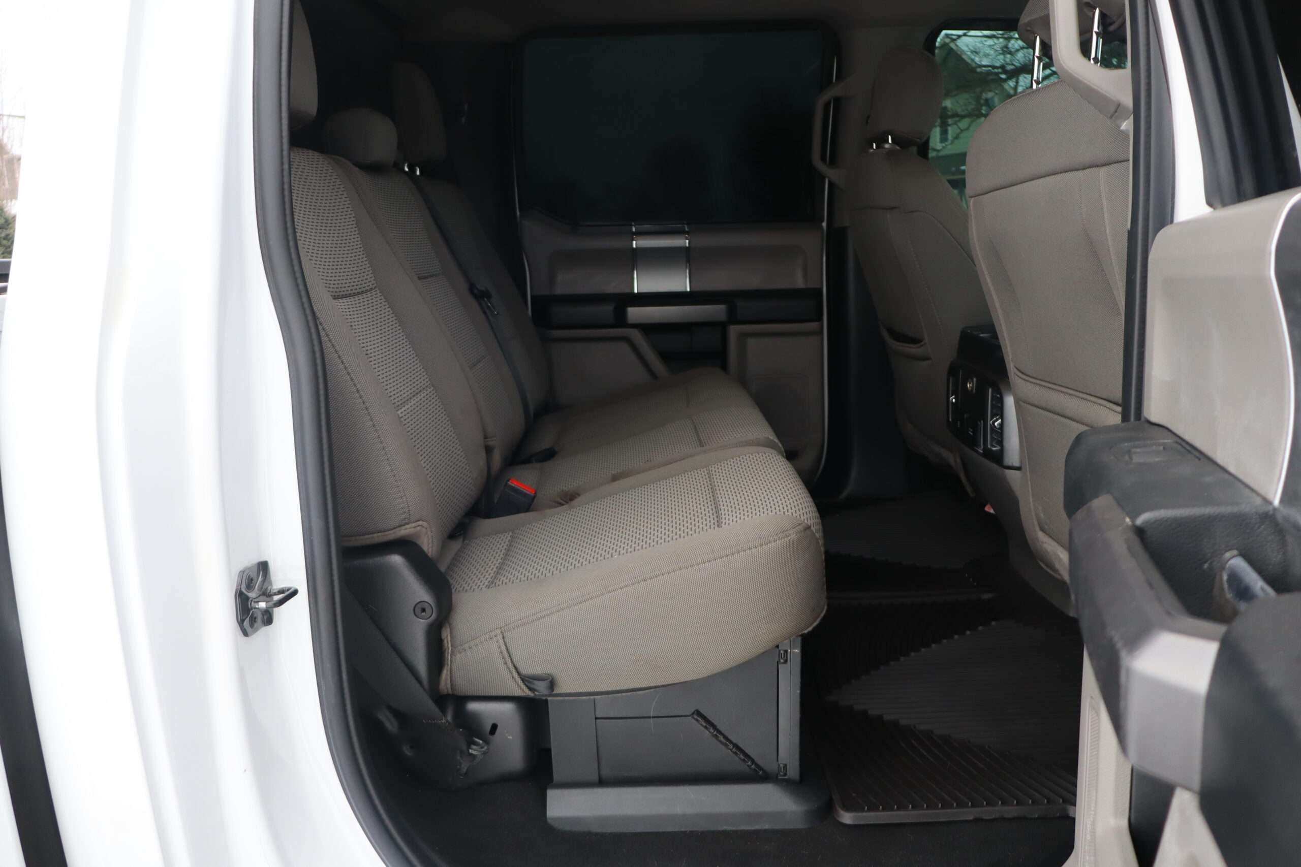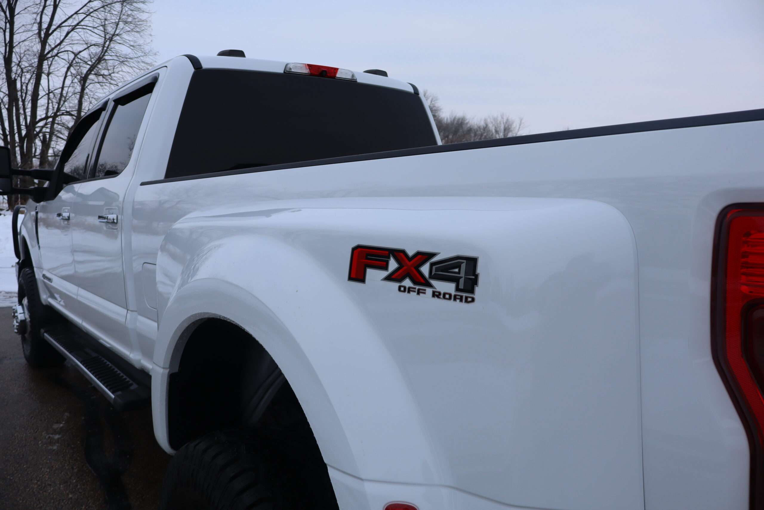 Exterior is Oxford White, Interior is Medium Earth Gray cloth, heated bucket seating in front with center console, 6-way power driver’s seat with power lumbar, 60/40 rear folding bench with under seat storage, traction control, hill start assist, electric rear glass defrost, power windows and power door locks, tilt and telescoping wheel, power adjustable pedals, cruise control, air conditioning, 8″ touch screen with navigation, AM/FM stereo, Sirius satellite radio ready, Android Auto, Apple Car Play, multi-plug 12v power point, 110v outlet, 115v bed outlet, driver’s information center, Bluetooth capabilities, SYNC III, multi-function steering wheel controls, compass/temperature/mileage display in dash, day/night rear view mirror, remote entry, side air bags, door code entry, chrome power/heated extendable folding tow mirrors with LED lighting, cab clearance lights, camper package, pro trailer back up assist, 5th wheel prep, 6″ chrome step boards, towing package with receiver, trailer wiring, factory electronic brake controller, tailgate step and up-fitter switches.