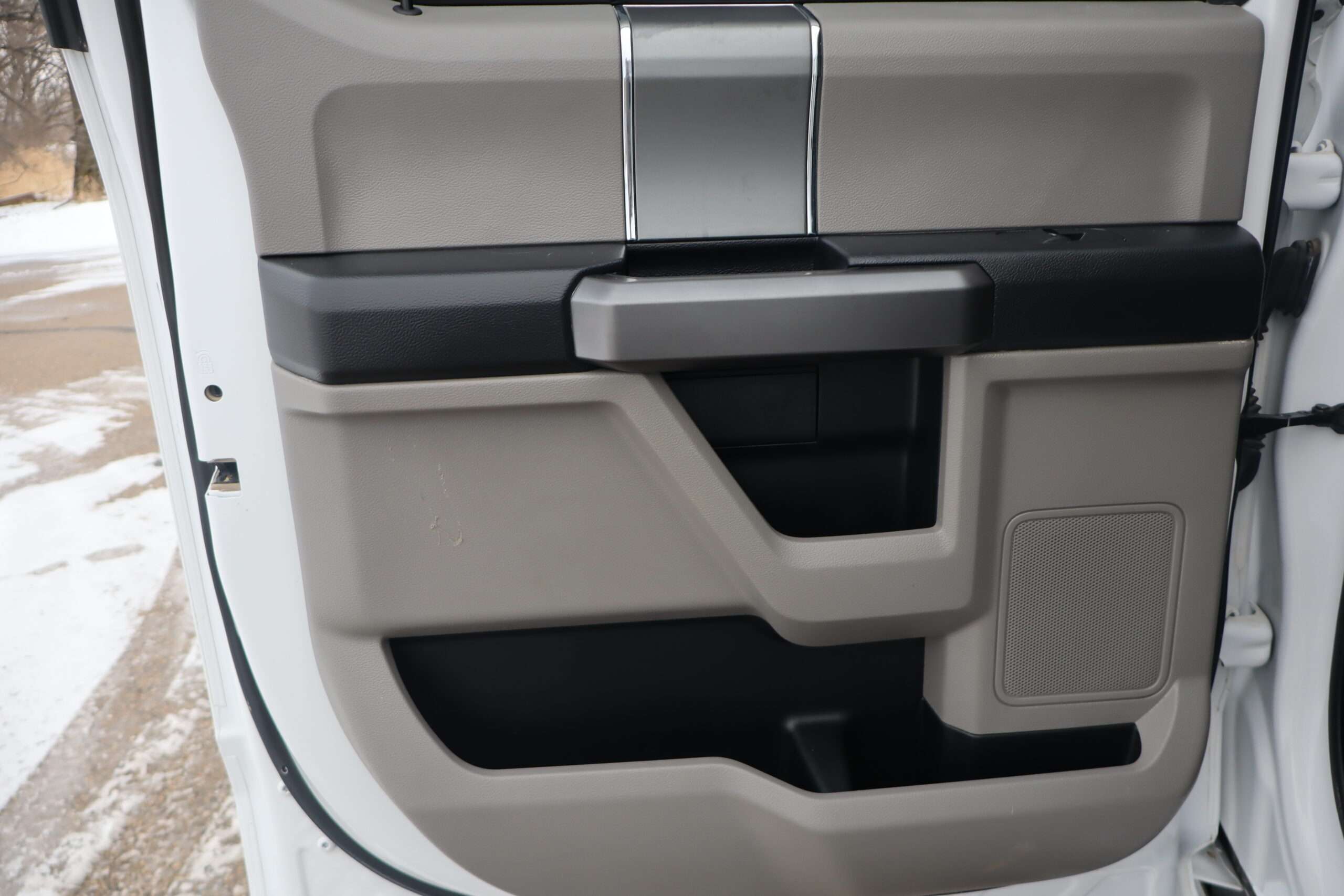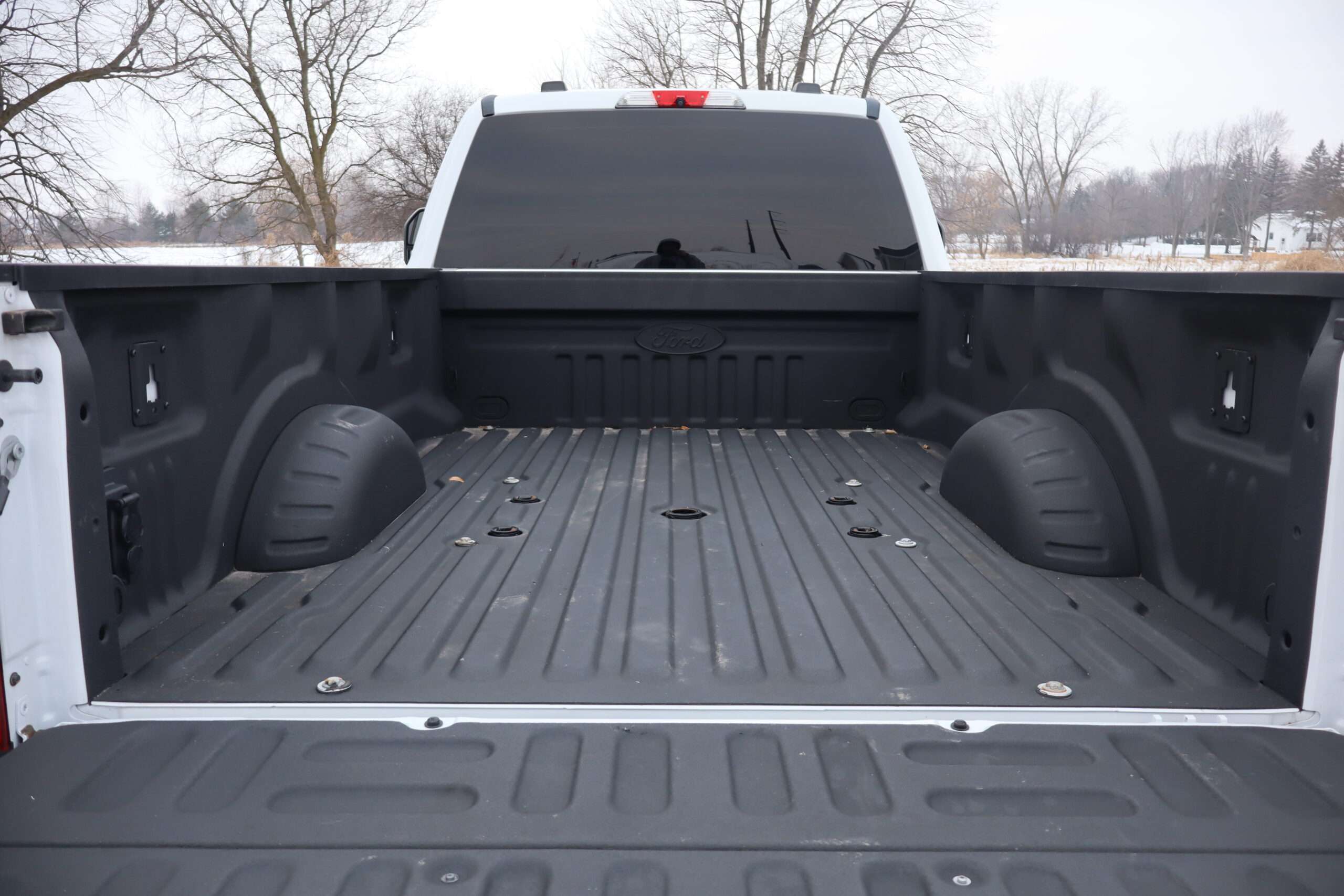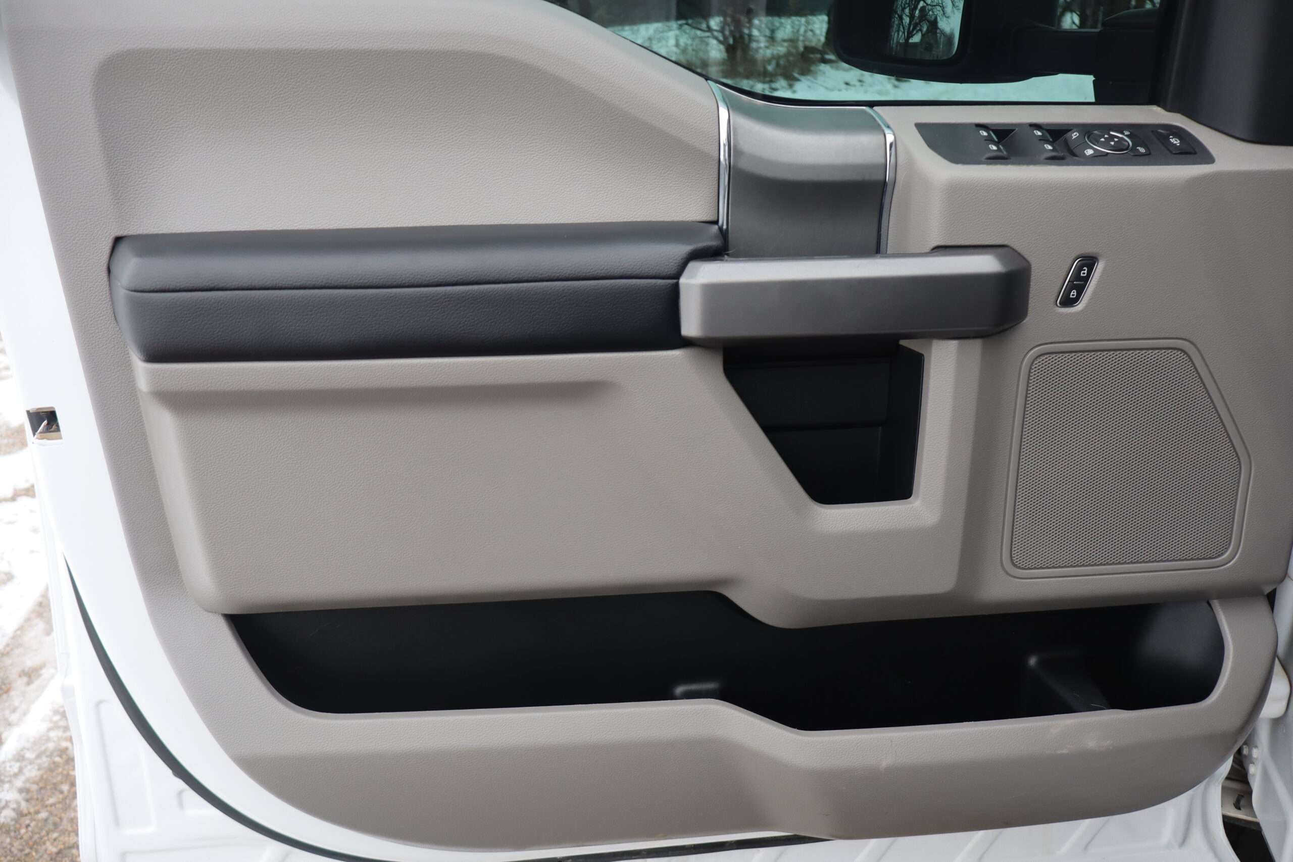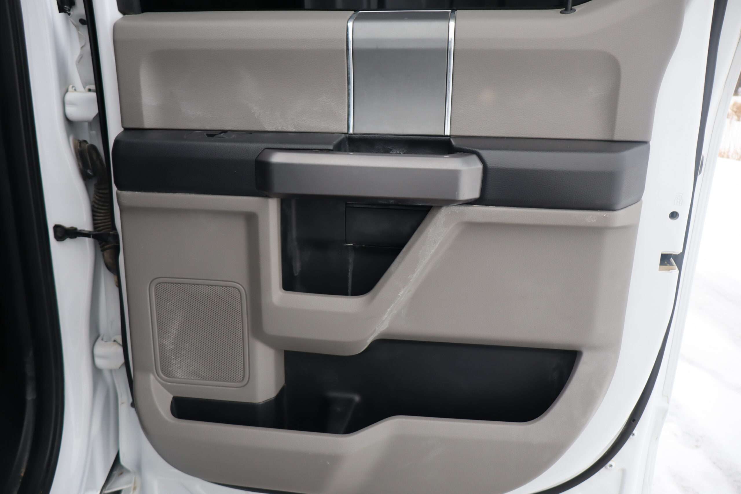 Exterior is Oxford White, Interior is Medium Earth Gray cloth, heated bucket seating in front with center console, 6-way power driver’s seat with power lumbar, 60/40 rear folding bench with under seat storage, traction control, hill start assist, electric rear glass defrost, power windows and power door locks, tilt and telescoping wheel, power adjustable pedals, cruise control, air conditioning, 8″ touch screen with navigation, AM/FM stereo, Sirius satellite radio ready, Android Auto, Apple Car Play, multi-plug 12v power point, 110v outlet, 115v bed outlet, driver’s information center, Bluetooth capabilities, SYNC III, multi-function steering wheel controls, compass/temperature/mileage display in dash, day/night rear view mirror, remote entry, side air bags, door code entry, chrome power/heated extendable folding tow mirrors with LED lighting, cab clearance lights, camper package, pro trailer back up assist, 5th wheel prep, 6″ chrome step boards, towing package with receiver, trailer wiring, factory electronic brake controller, tailgate step and up-fitter switches.