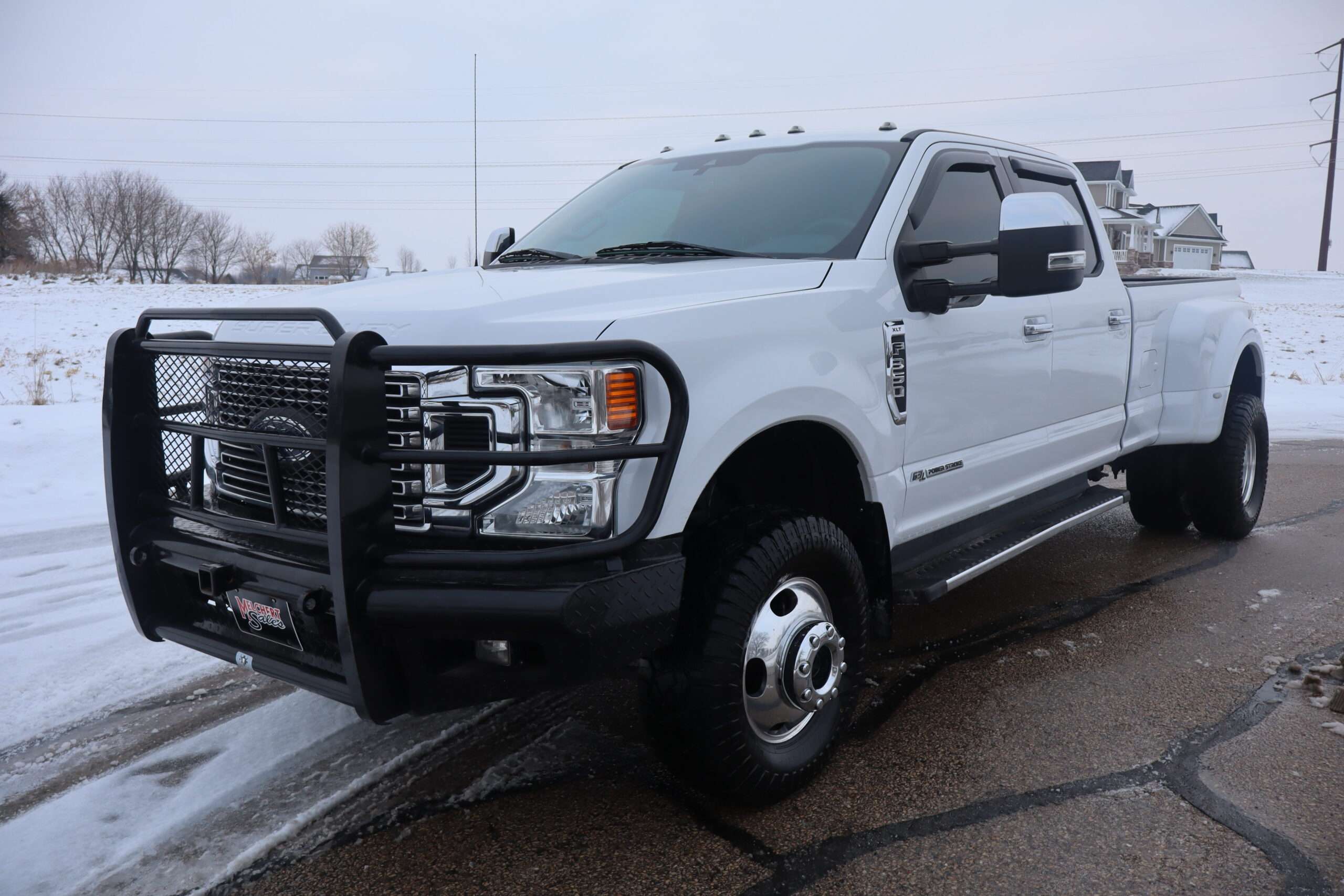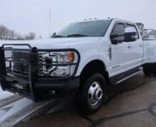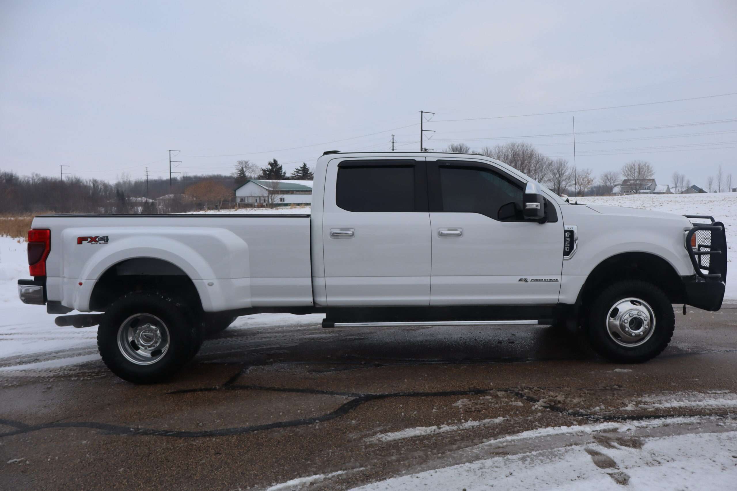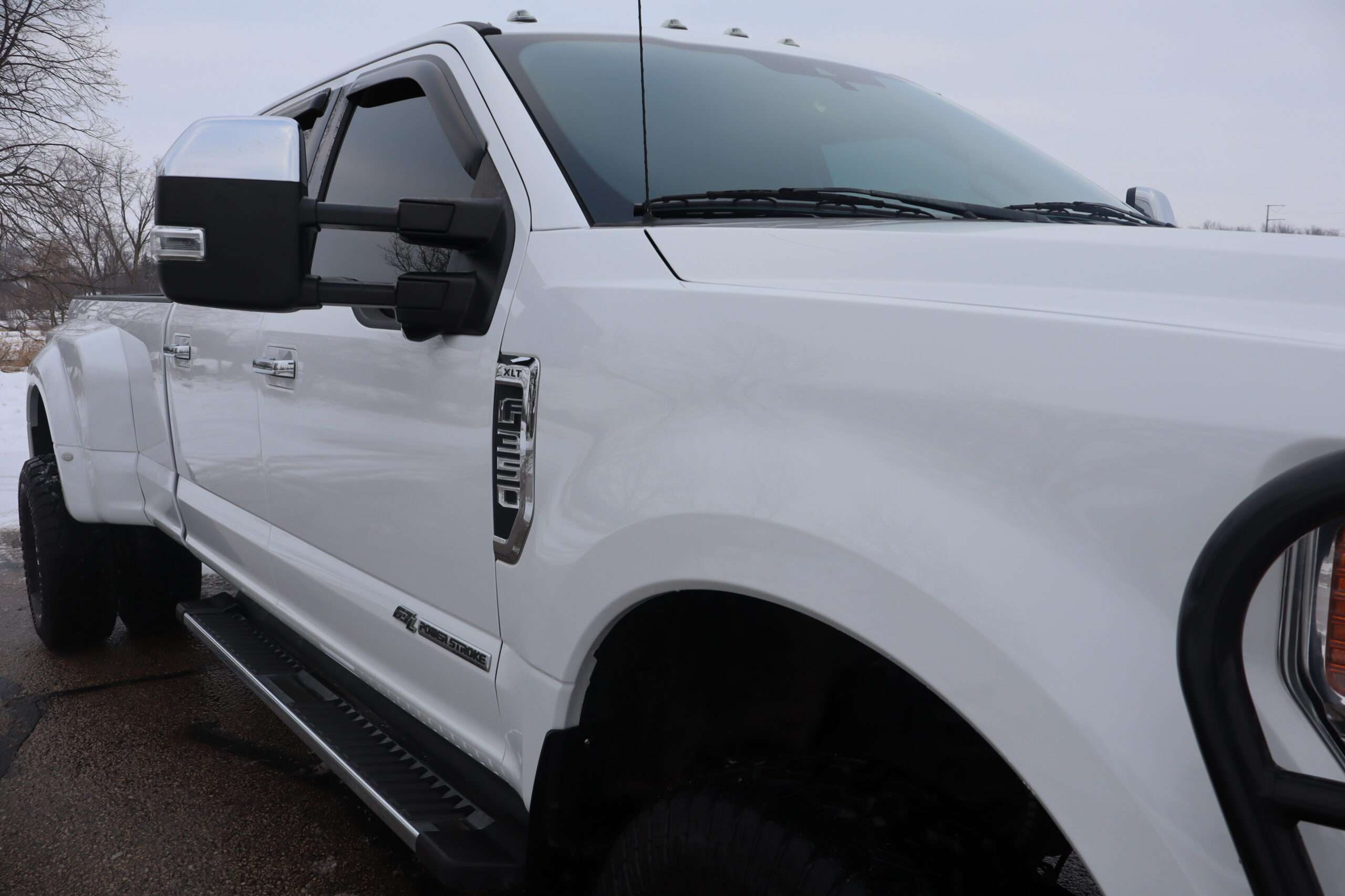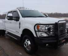 Motor is a 6.7L Power Stroke Turbo Diesel, 10-speed automatic transmission, exhaust brake, turn dial 4WD on the fly, 3.55 axle ratio, 17″ Factory Alloy wheels with Near New LT295/70R17 Load Range E tires.