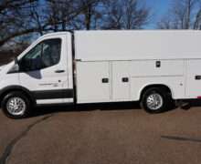 1FDBW7Z88LKA501392020 FORD TRANSIT, CAB CHASSIE, 9,500# GVW, 3.5L V6 GAS, 10-SPEED AUTOMATIC TRANSMISSION, RWD, 138″ WHEEL BASE, BACK UP CAMERA, TOW HAUL WITH KNAPHEIDE KUV 11′ WALK IN SERVICE BODY WITH LOCKING DOORS, CLEAN METICULOUSLY MAINTAINED 1 OWNER TRUCK WITH 143,928 MILES AND A CLEAN CAR FAX.