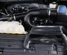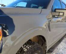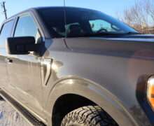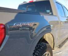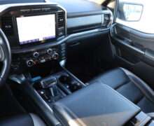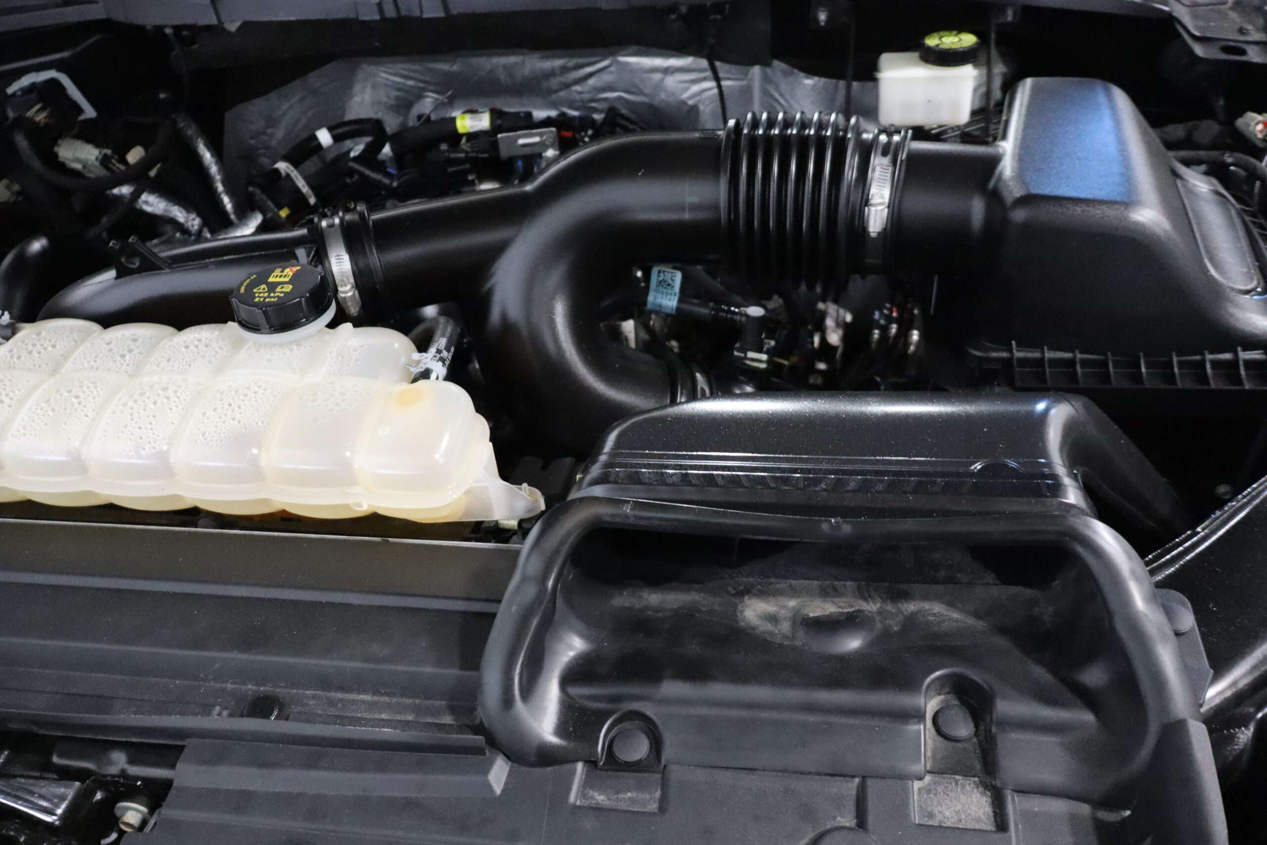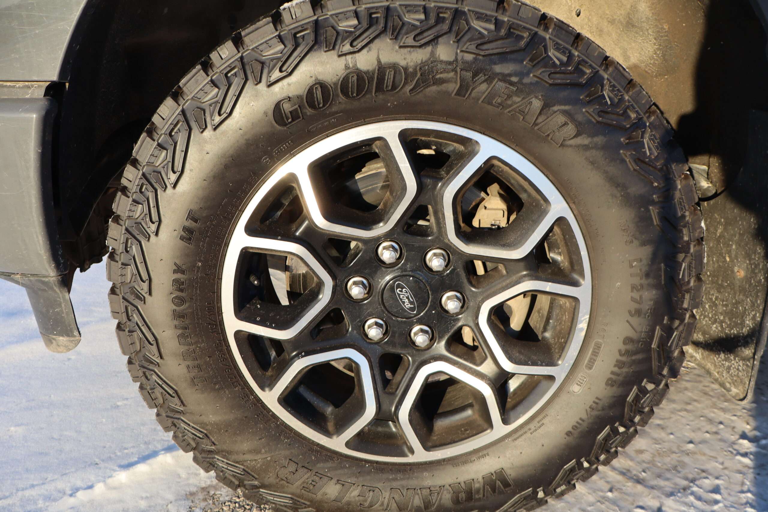 Motor is a 2.7L Eco Boost V6, 10-speed automatic transmission with optional tap shift, turn dial 4WD, locking diff., 3.55 axle ratio, 6,600# GVW, 18″ Black Machined aluminum Alloy wheels with Near New 275/65R18 Good Year Wrangler Territory MT tires.