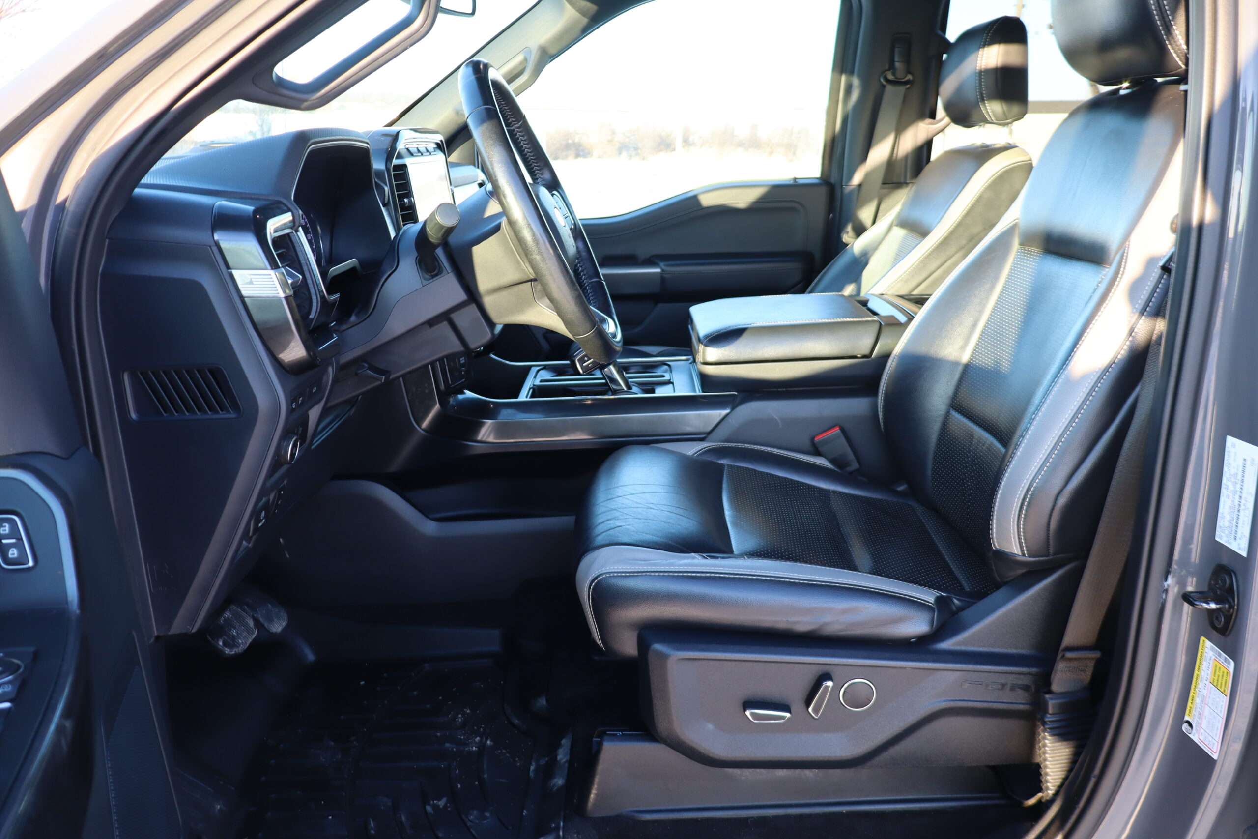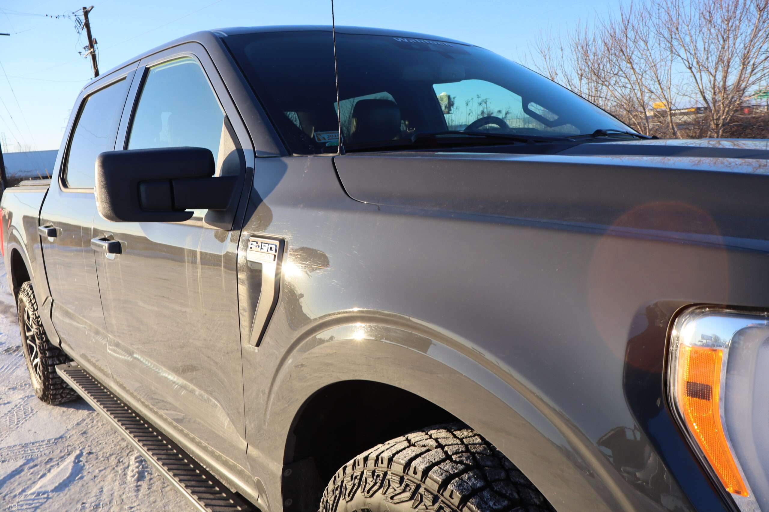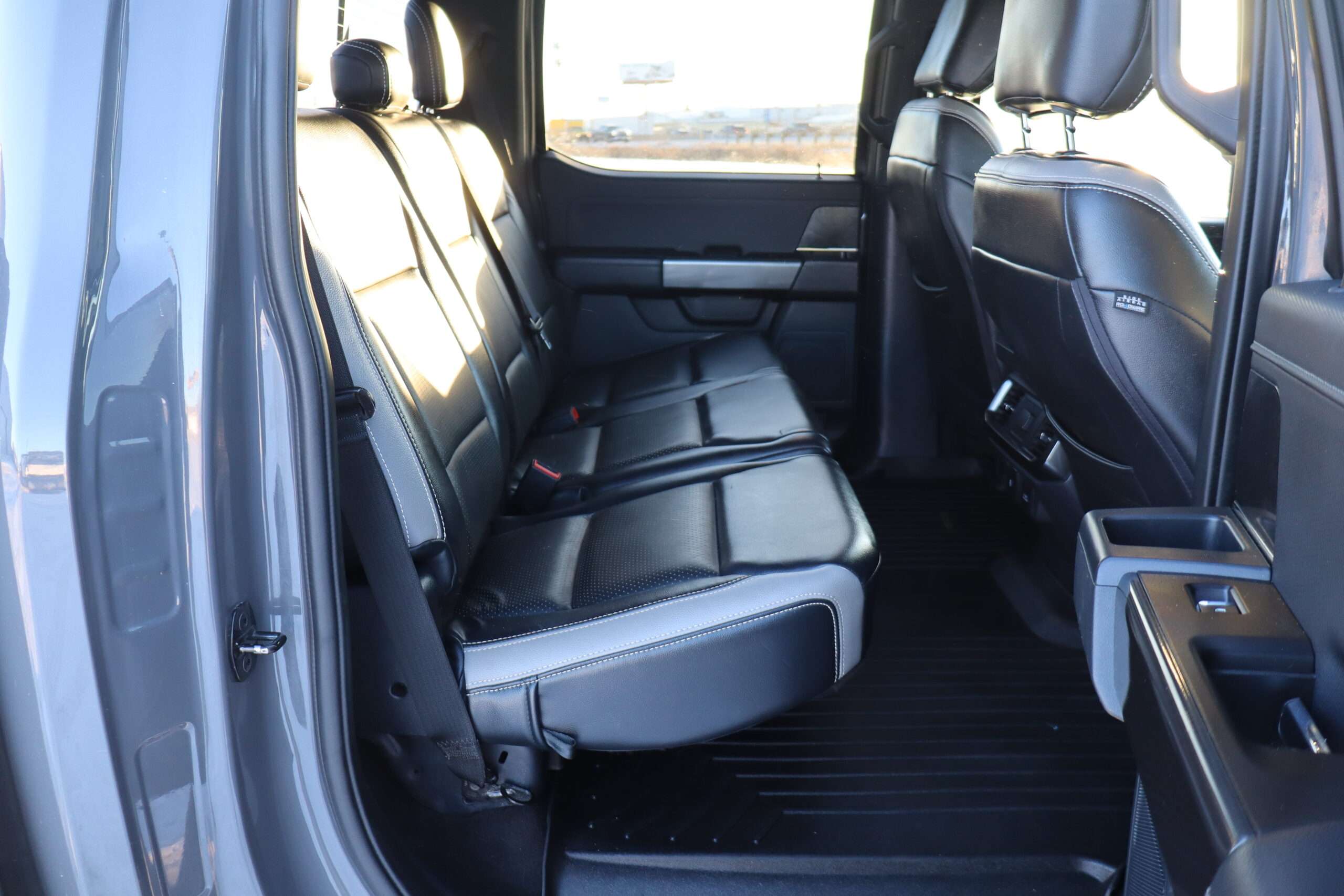 Exterior is Lead Foot Gray, Interior is Black/Gray Leather, dual heated 10-way power bucket seats in front with center console, 60/40 rear folding bench, power adjustable pedals, power windows and power door locks, power/heated tilt/telescoping wheel, cruise control, air conditioning, electric rear window defrost, digital dual climate control, technology package, SYNC 4 with 12″ touch screen, navigation, AM/FM stereo, Sirius satellite radio ready, driver’s information center, Apple Car Play, Android Auto, Bluetooth capabilities, multi-function steering wheel controls, auto dimming rear view mirror, lane departure, pre-collision assist with AEB, compass/temperature/mileage display in dash, curb-view back up camera, parking assist, remote entry, door code entry, remote start, traction control, hill start assist, 110v outlet, fog lights, side air bags, power/heated folding mirrors with turn signals, power sliding rear window, locking tailgate, dark tinted glass, tow package with receiver and trailer wiring, factory electronic brake controller, pro trailer back up assist, step boards, spray in bed liner, sport package with color matched bumpers, grille and trim and LED bed lighting,