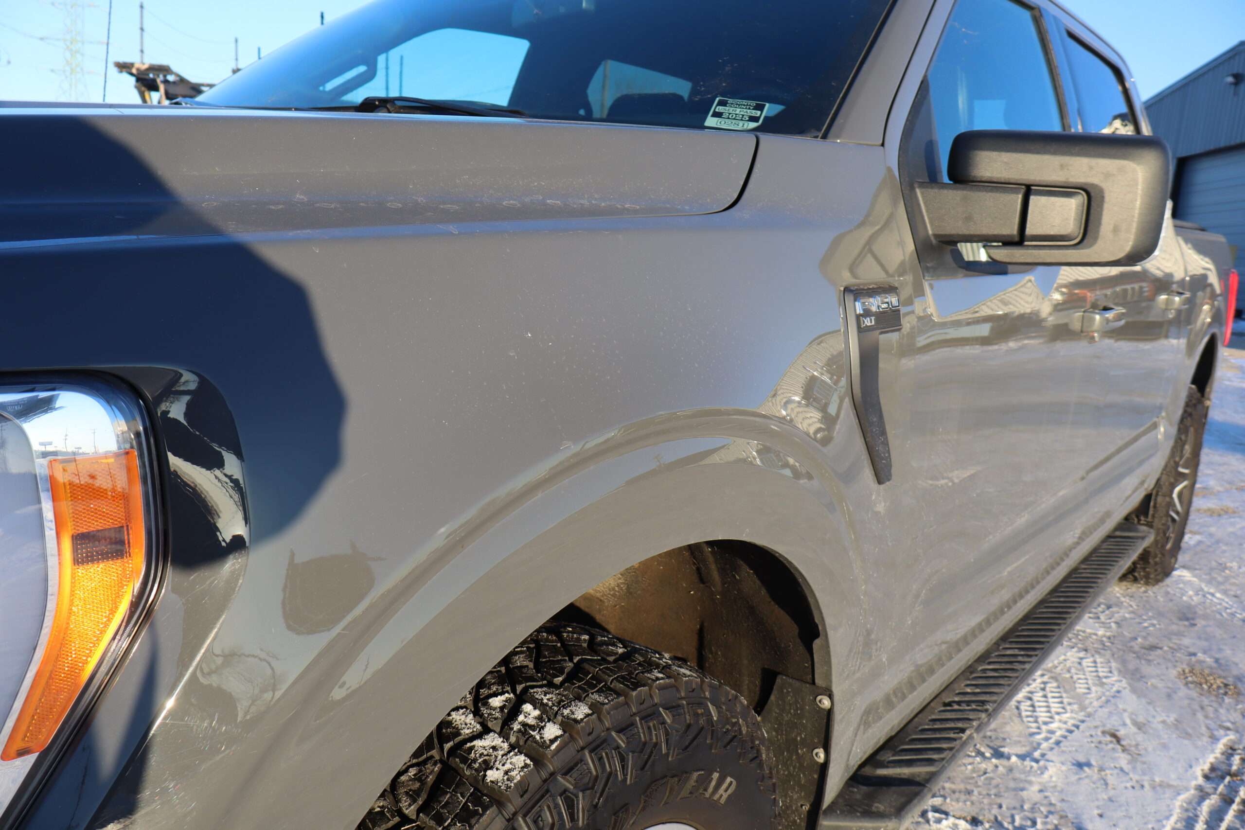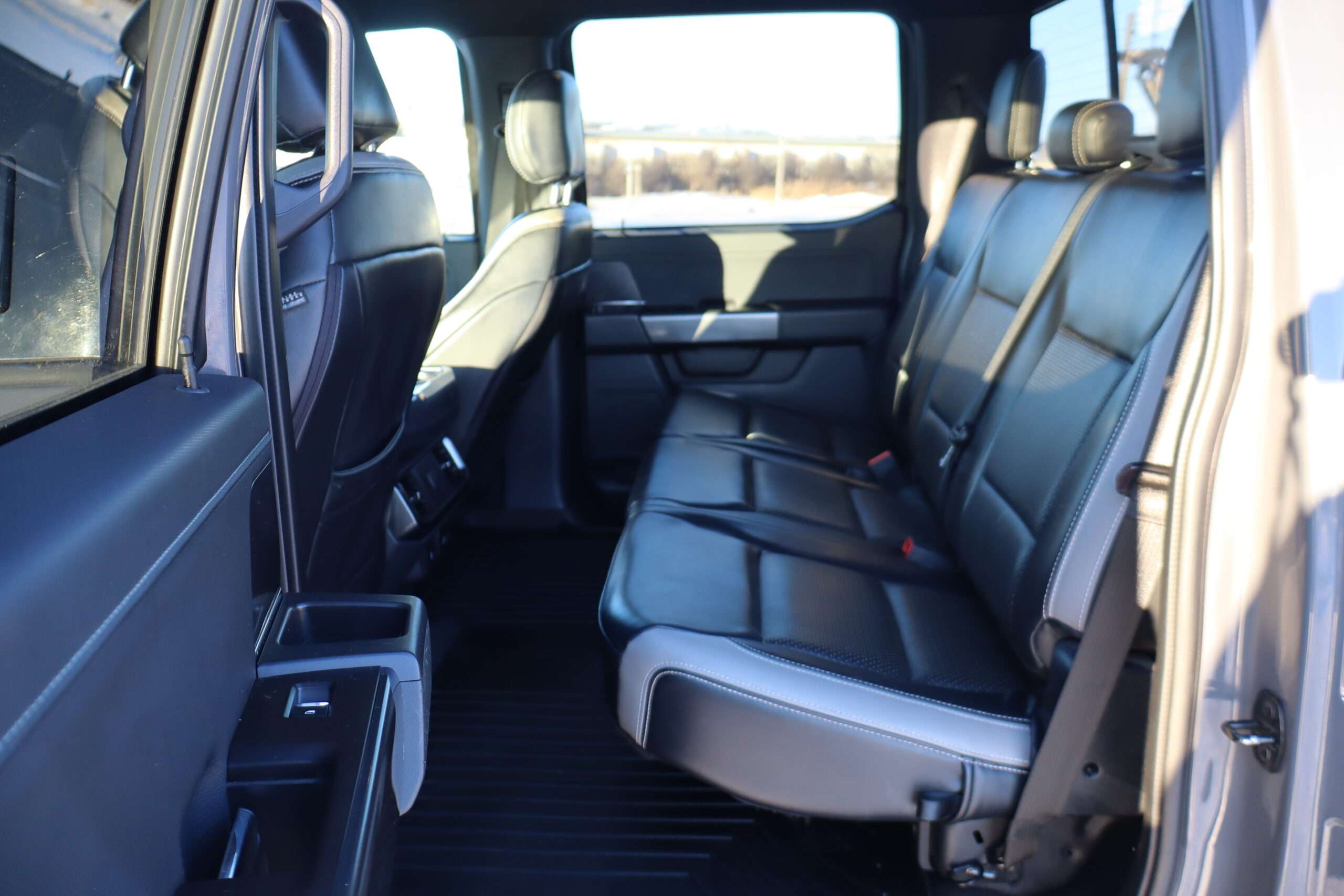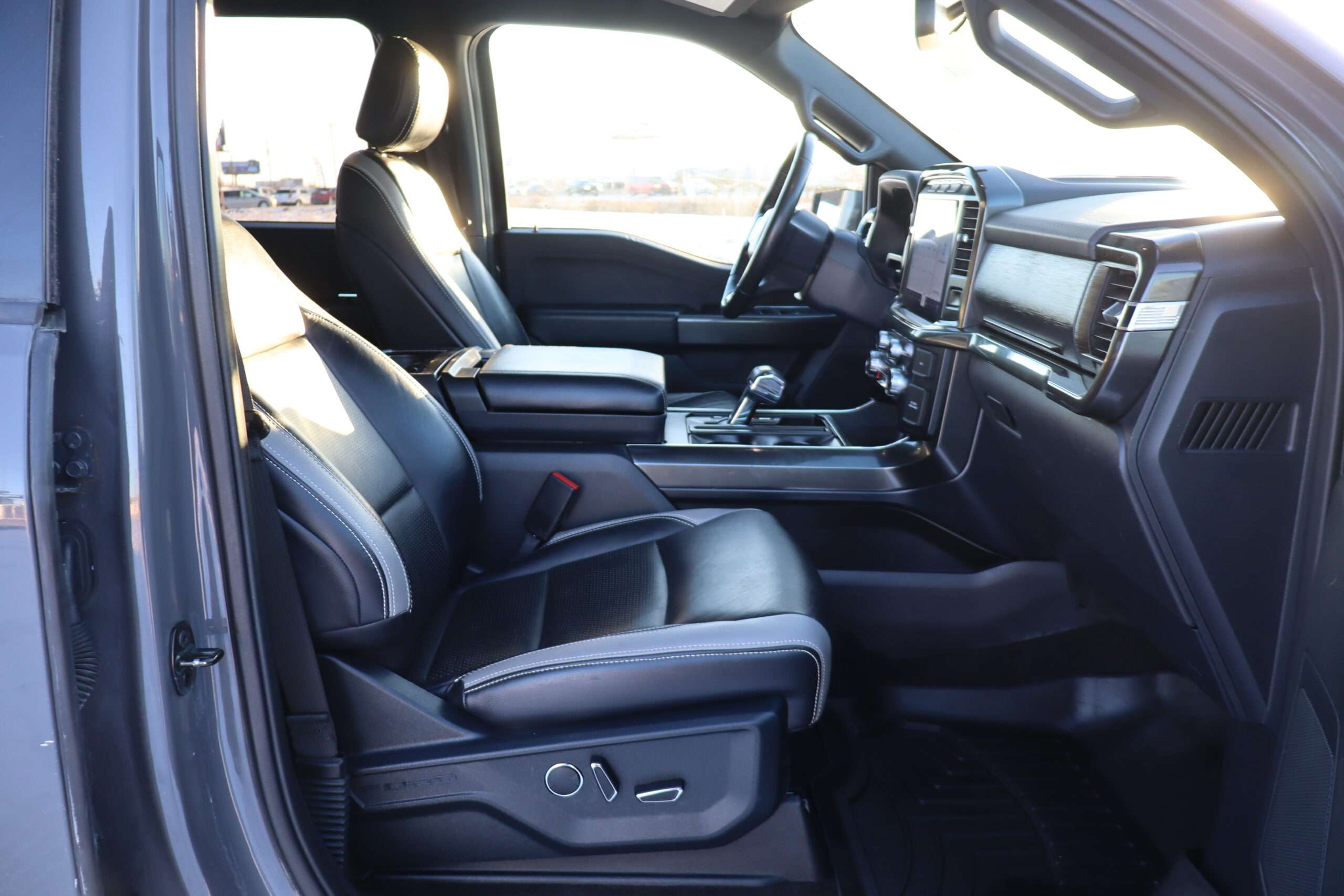 Exterior is Lead Foot Gray, Interior is Black/Gray Leather, dual heated 10-way power bucket seats in front with center console, 60/40 rear folding bench, power adjustable pedals, power windows and power door locks, power/heated tilt/telescoping wheel, cruise control, air conditioning, electric rear window defrost, digital dual climate control, technology package, SYNC 4 with 12″ touch screen, navigation, AM/FM stereo, Sirius satellite radio ready, driver’s information center, Apple Car Play, Android Auto, Bluetooth capabilities, multi-function steering wheel controls, auto dimming rear view mirror, lane departure, pre-collision assist with AEB, compass/temperature/mileage display in dash, curb-view back up camera, parking assist, remote entry, door code entry, remote start, traction control, hill start assist, 110v outlet, fog lights, side air bags, power/heated folding mirrors with turn signals, power sliding rear window, locking tailgate, dark tinted glass, tow package with receiver and trailer wiring, factory electronic brake controller, pro trailer back up assist, step boards, spray in bed liner, sport package with color matched bumpers, grille and trim and LED bed lighting,