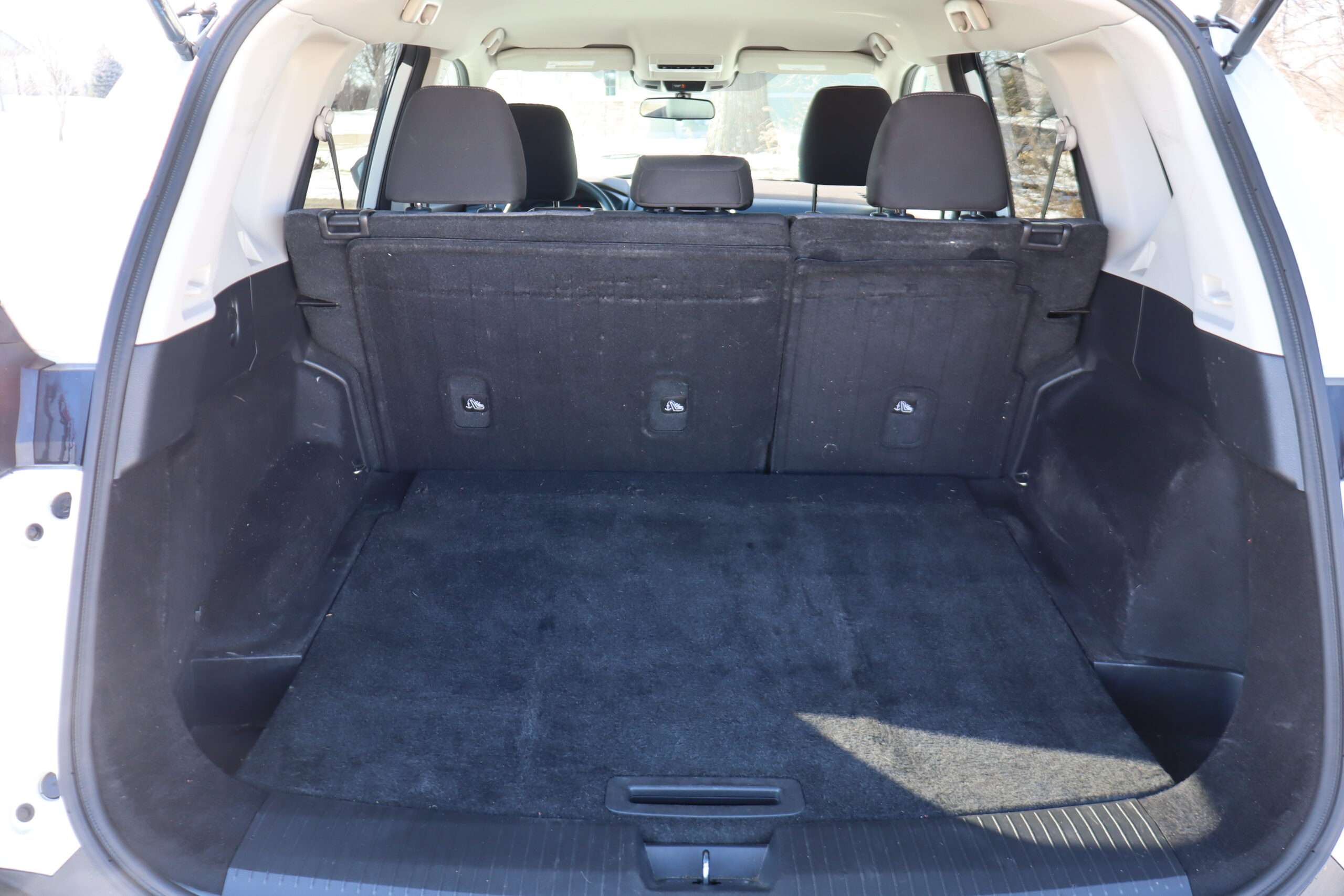 Exterior is Glacier White, Interior is Charcoal cloth, bucket seats in front, 40/20 folding seats in 2nd row, traction control, adaptive cruise control, power windows and power door locks, tilt and telescoping wheel, air conditioning, electric rear window defrost, steering assist, 8″ color touch screen, AM/FM stereo, XM satellite radio ready, Bluetooth, Apple Car Play, Android Auto, curb view back up camera, rear parking assist, driver’s alert package, blind spot warning, automatic emergency braking assist, head curtain air bags, lane departure warning, head curtain air bags, multi-function steering wheel controls, dual power point, compass/temperature/mileage display, LED low and high beam head lights, LED tail lamps, day/night dimming rear view mirror, dark tinted glass, driver’s information center, remote hatch, rear wipers, power/heated folding mirrors with signals and mirror guidance lamps.