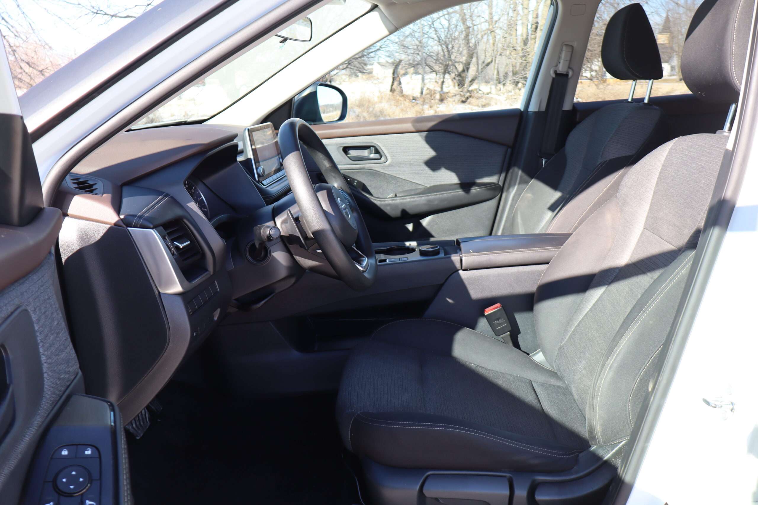 Motor is a 2.5L I4 with Xtronic CVT transmission with optional tap shift, AWD, 17″ Factory Gray aluminum wheels with almost New 235/65R17 Michelin Defender 2 tires.