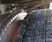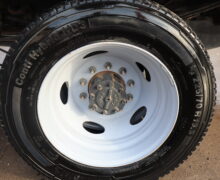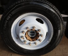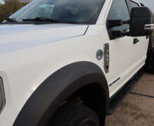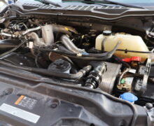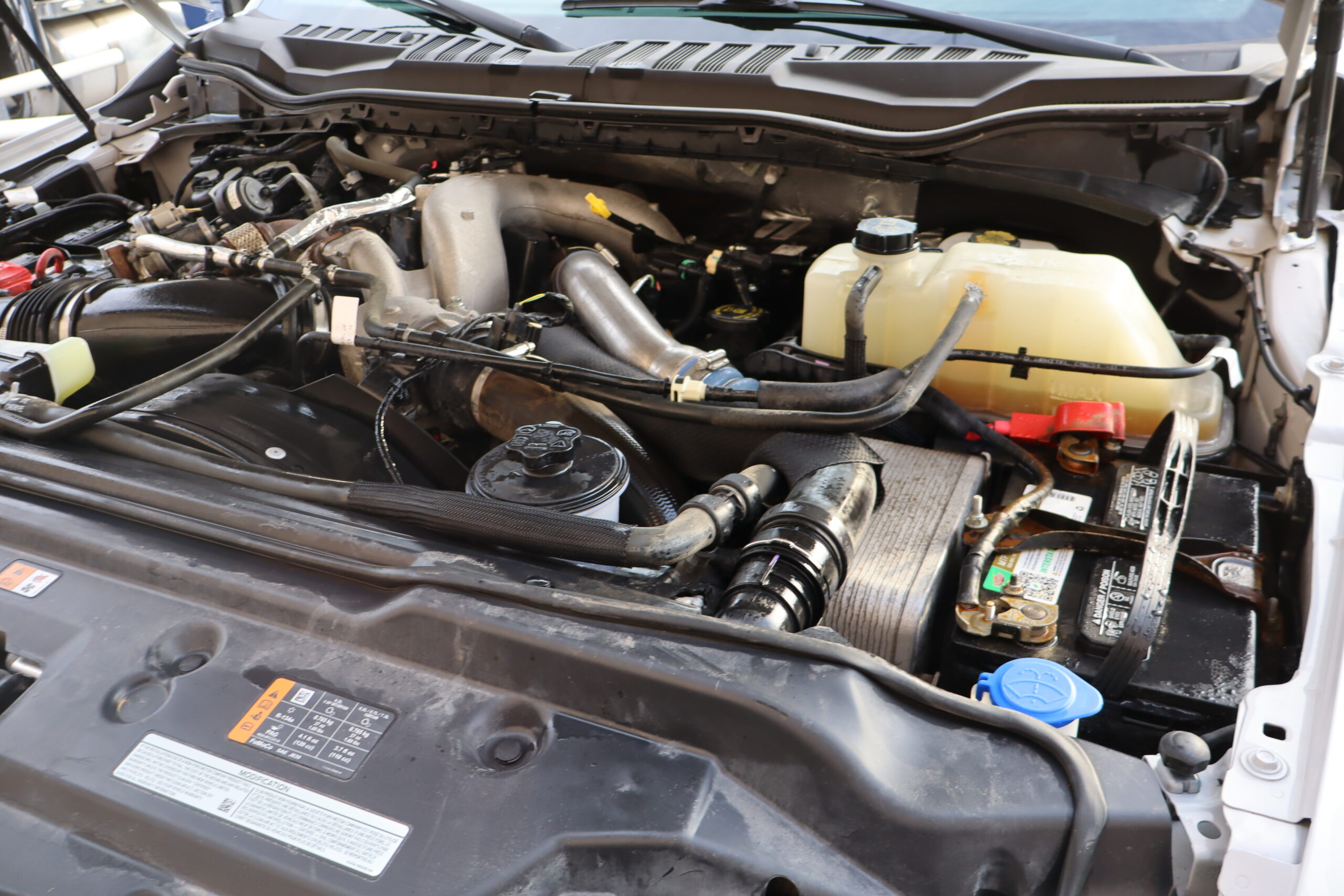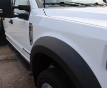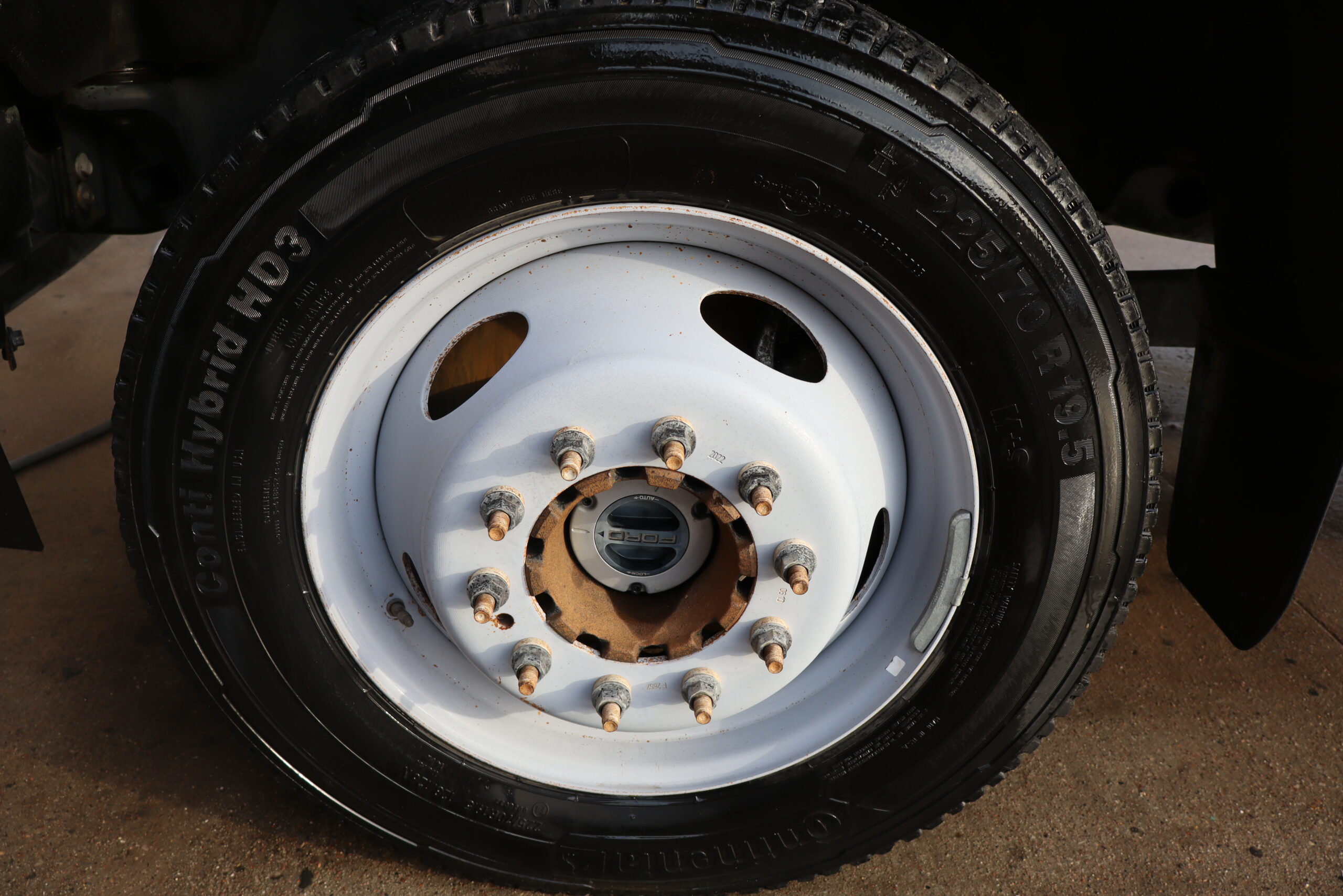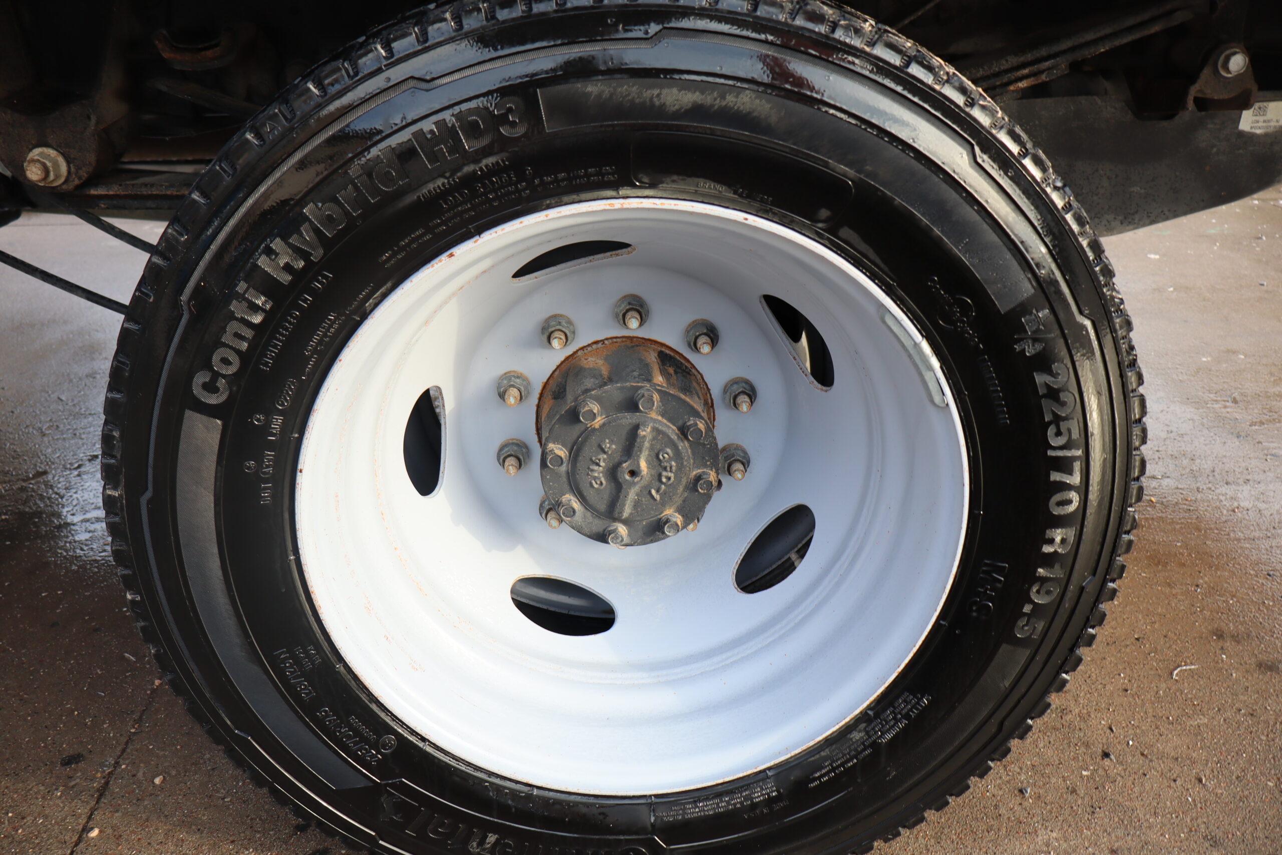 Motor is a 6.7L Power Stroke Turbo Diesel, 10-speed automatic transmission with optional tap shift, exhaust brake, turn dial 4WS, 4.88 axle ratio, 19,500#, 19.5″ Factory Gray Steel wheels with 225/70R19.5 Continental Load Range G tires.