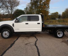 1FD0W5HT9NEF081302022 FORD F550 SUPER DUTY CREW CAB, DRW, XLT, CHASSIE BAG, 19,500 GVW, 6.7L TURBO DIESEL, 10-SPEED AUTOMATIC TRANSMISSION, BACK UP CAMERA, 4WD, 179″ WHEEL BASE, 9′-4″ C&M FLAT BED, CONTINENTAL TIRES, TRANS POWER TAKE OFF PROVISIONS, PAYLOAD PLUS PACKAGE, WELL MAINTAINED 1 OWNER TRUCK WITH 19,952 MILES AND A CLEAN CAR FAX WITH REMAINING FACTORY 3YR/36,000 MILE BASIC WARRANTY AND 5YR/60,000 MILE POWER TRAIN WARRANTY.