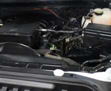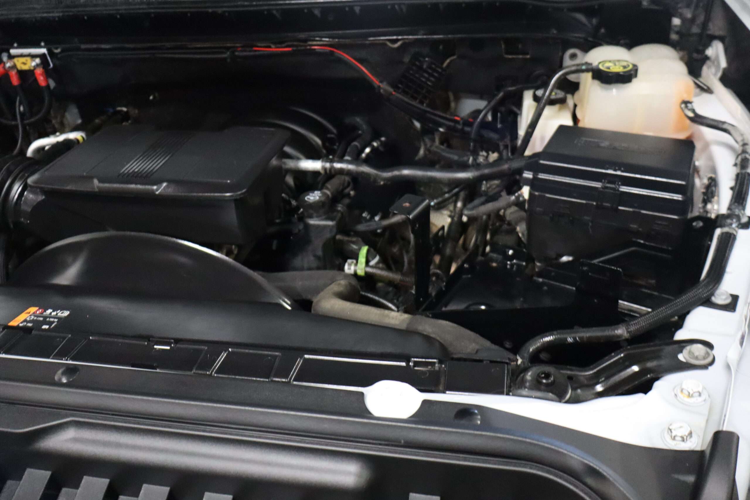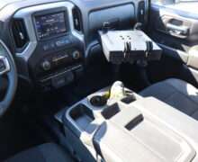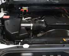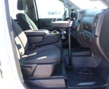Motor is a 6.6L gas, 6-speed automatic transmission, push button 4WD, 3.73 axle ratio, 10,000lb GVW package, 18″ Factory Gray Alloy wheels with Near New LT275/70R18 Toyo Open Country M/T Range E tires.